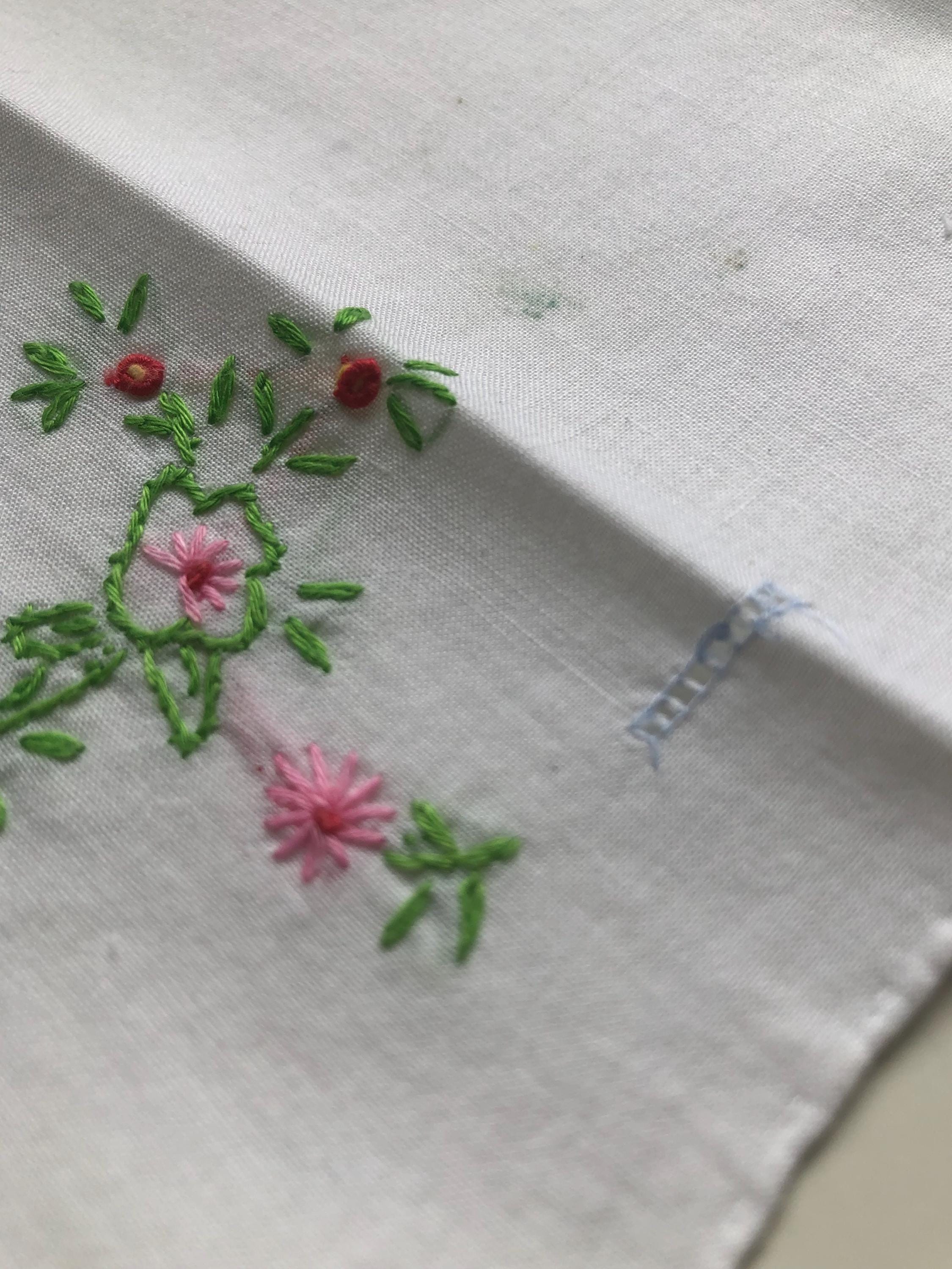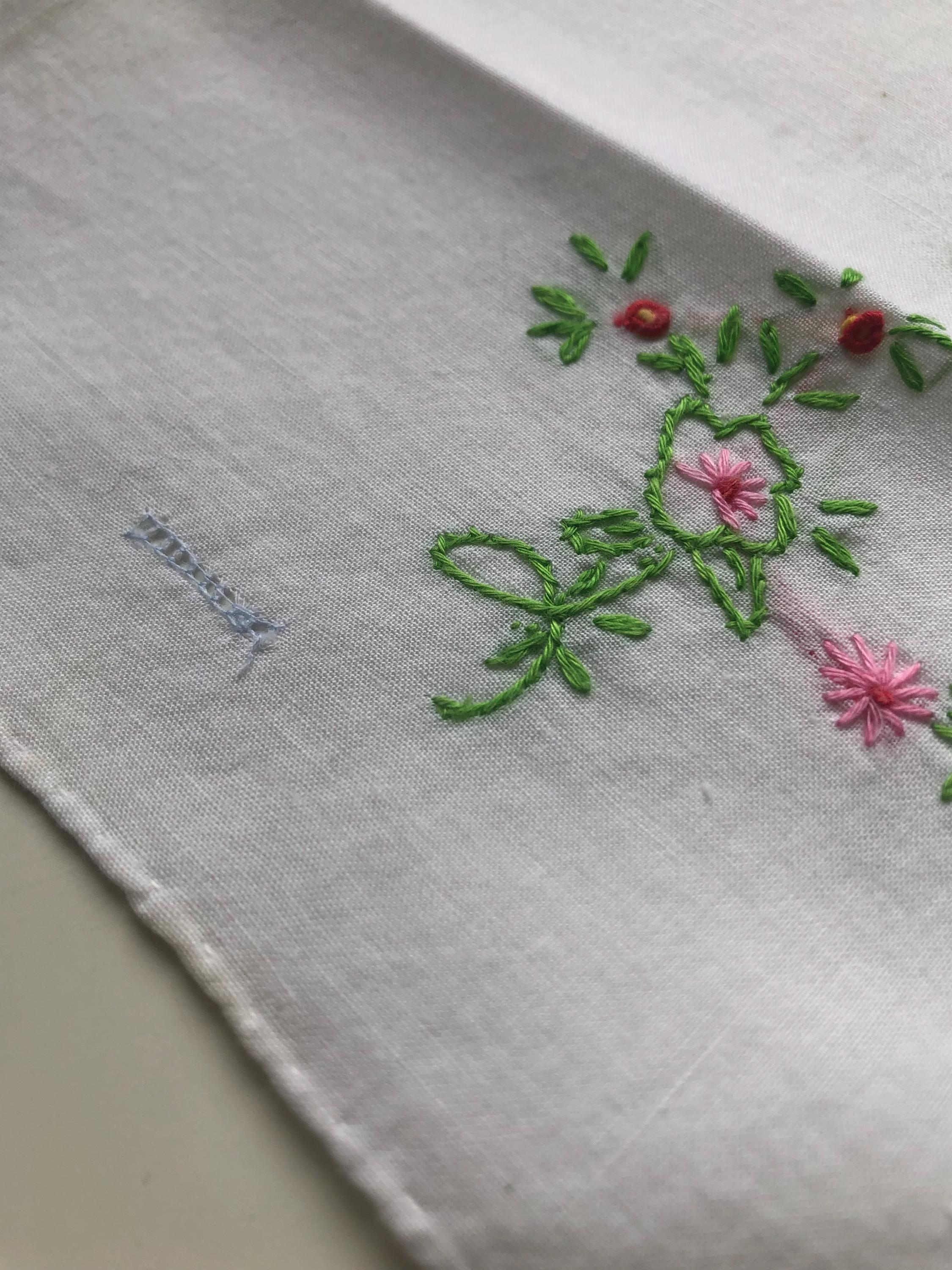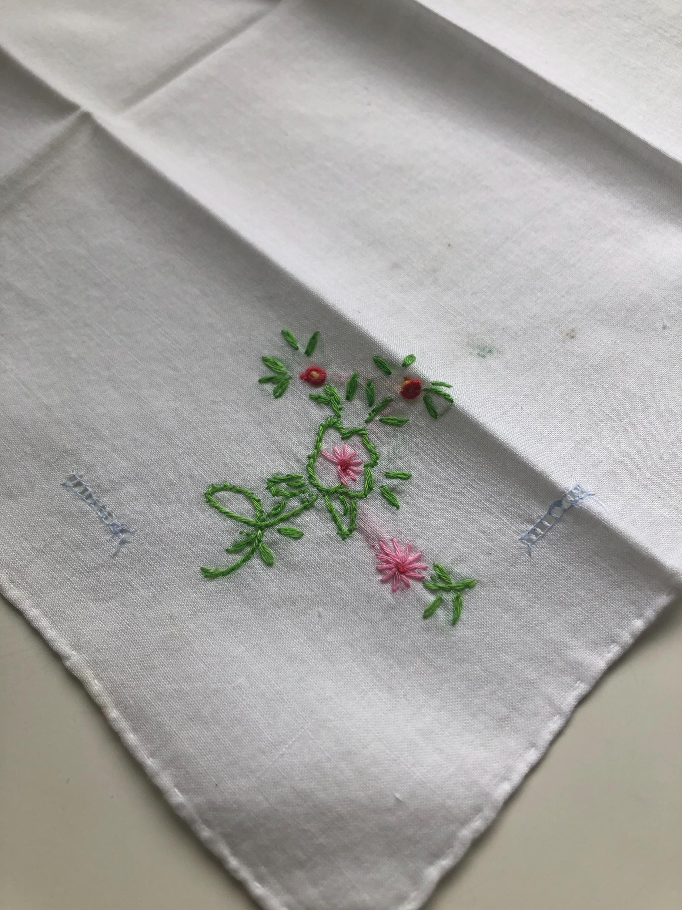 Perfect for collectors or those seeking a unique, nostalgic touch, this vintage linen hankie can also be used as a doily, tray cover, or part of a vintage linen display. Easy to care for—gentle hand washing is recommended to preserve its delicate embroidery and fabric integrity.