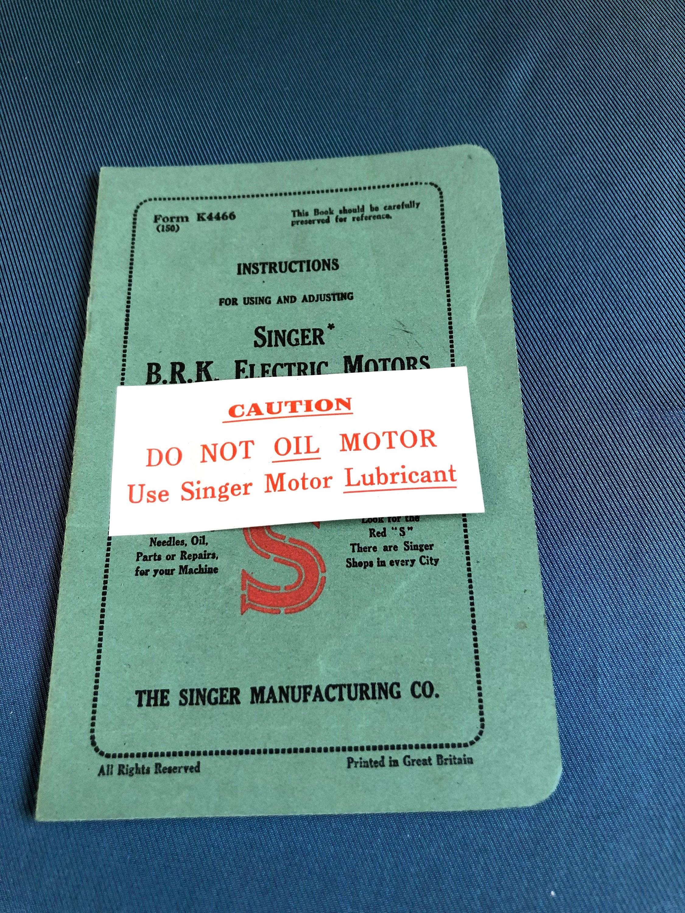 This is a Singer Sewing Machine Manual for a BRK Electric Motor