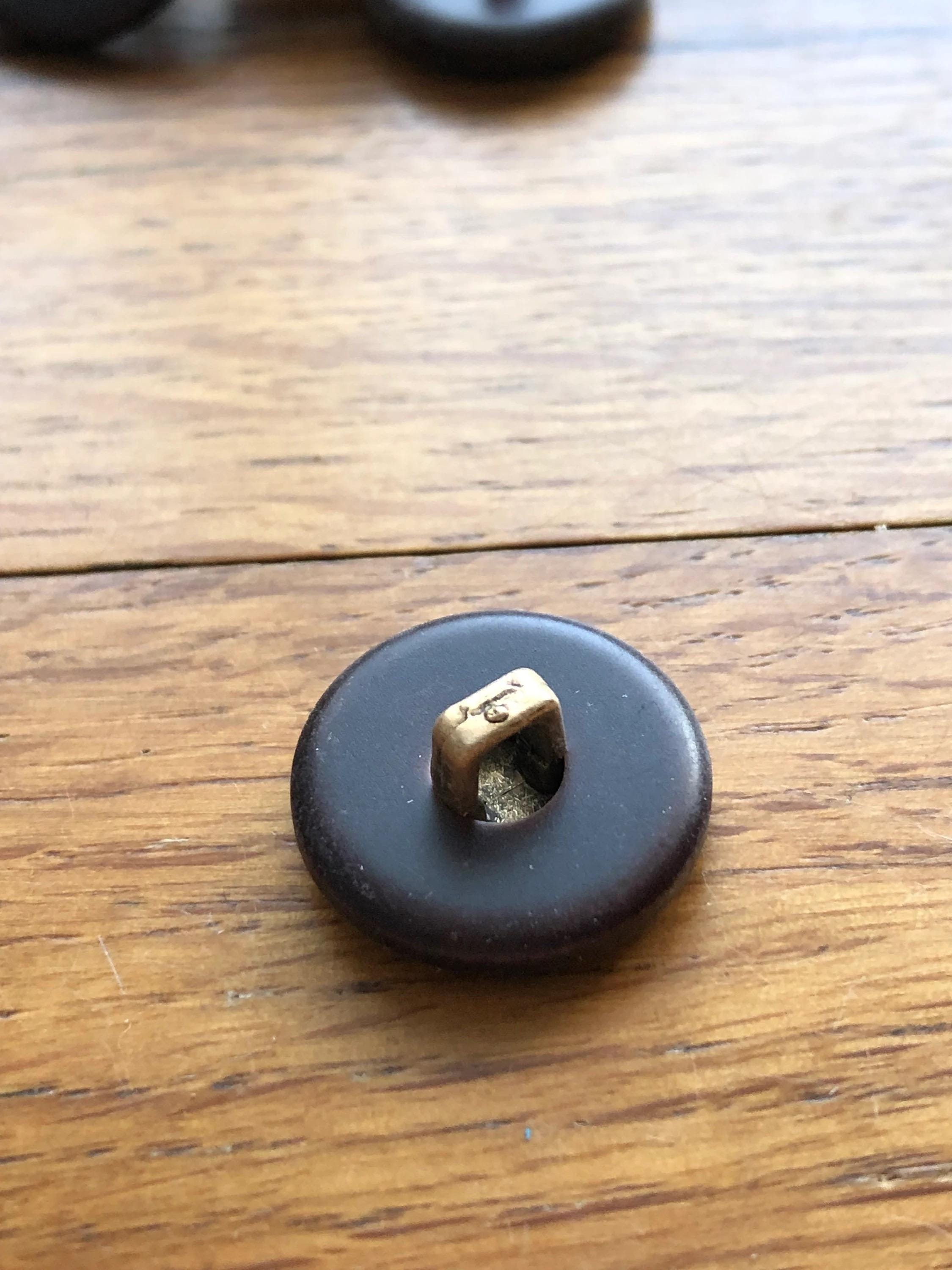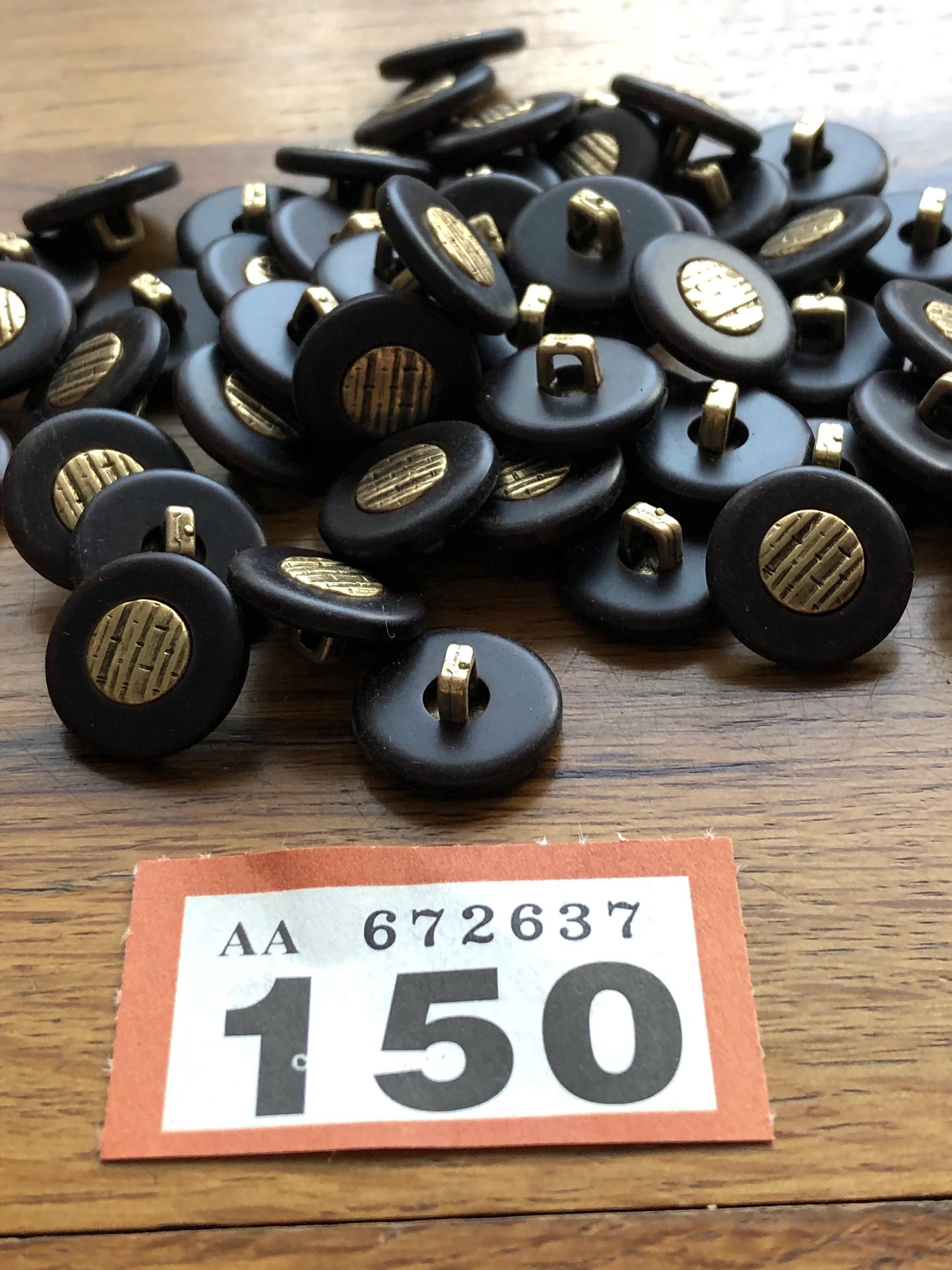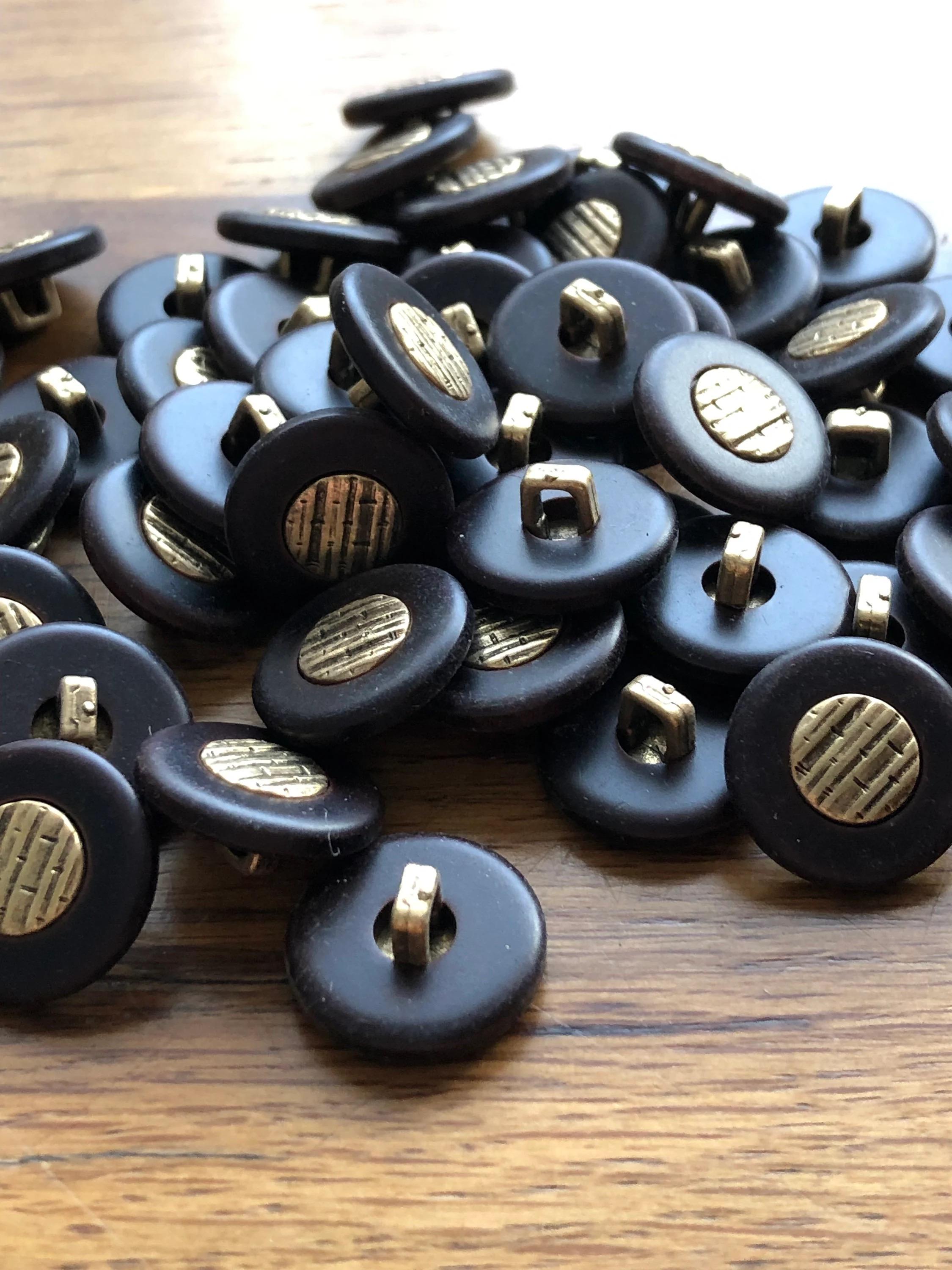 Crafted from high-quality plastic, each button boasts a rich, dark brown hue with a subtle bark-like pattern in the gold centre, reminiscent of natural textures. These vintage buttons come with a sturdy shank, making them easy to sew onto a variety of fabrics. They are brand new and have never been used, ensuring you receive only the finest quality for your creative endeavors.