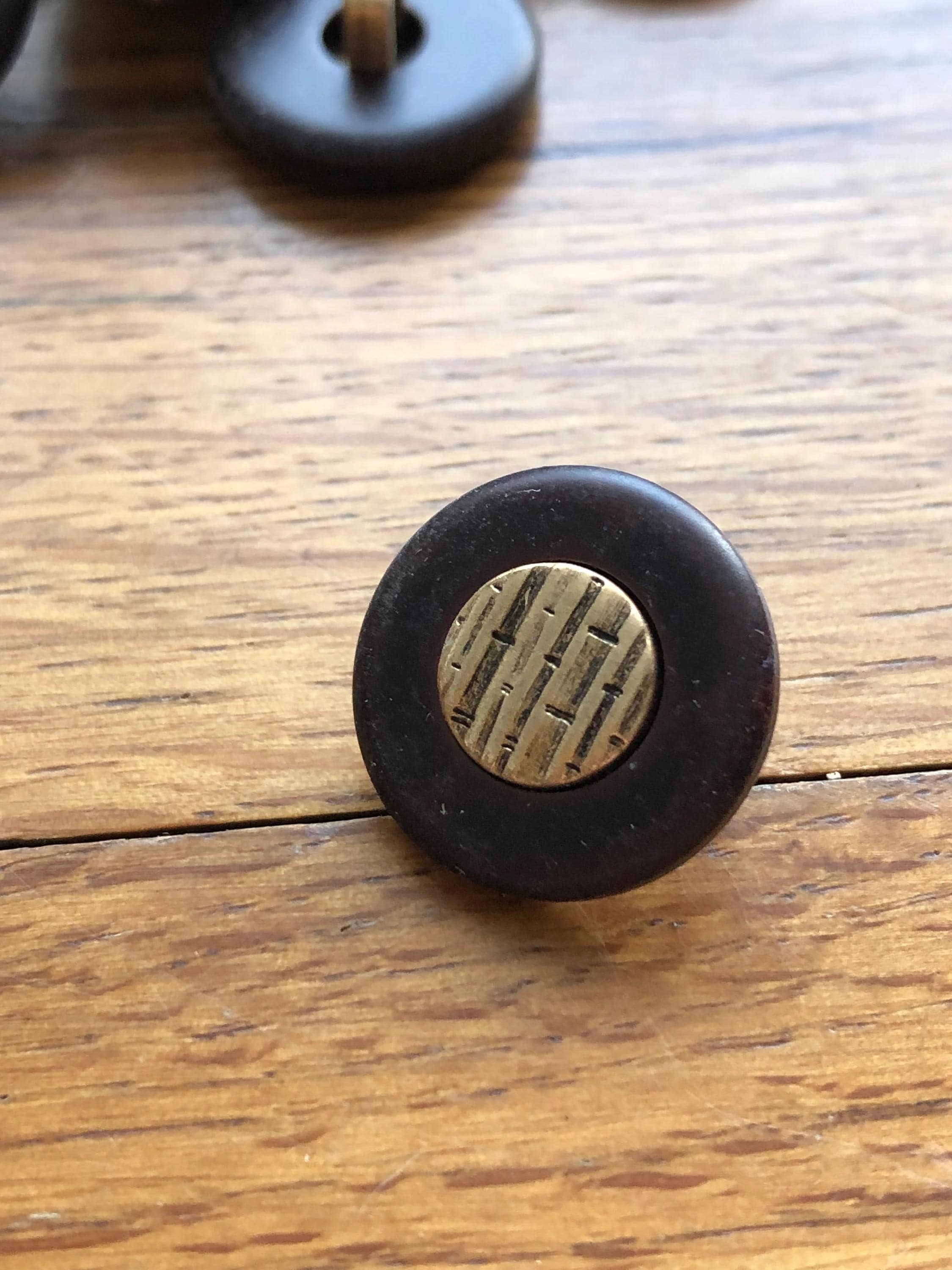 - Vintage dark brown fashion buttons with gold centre