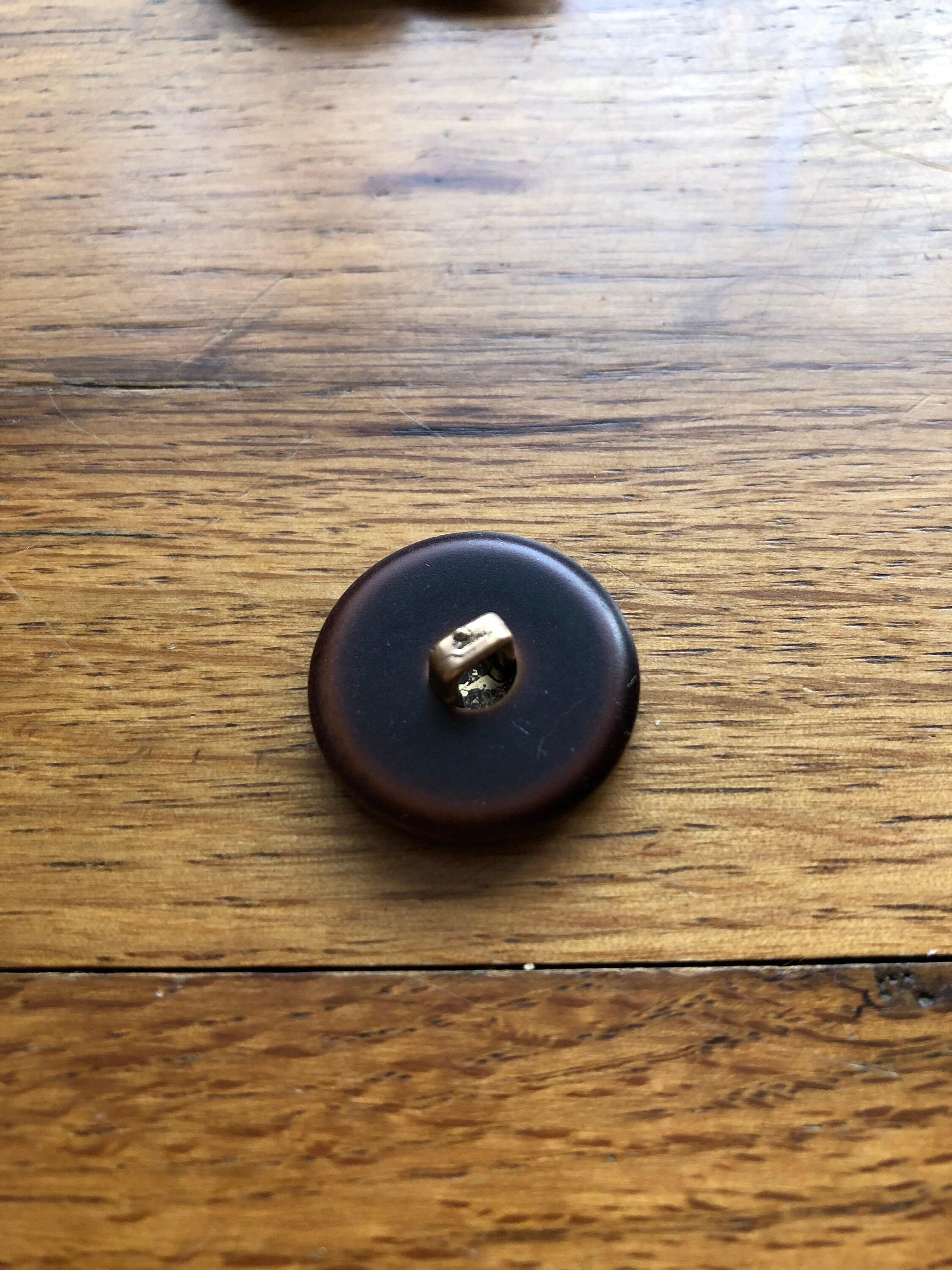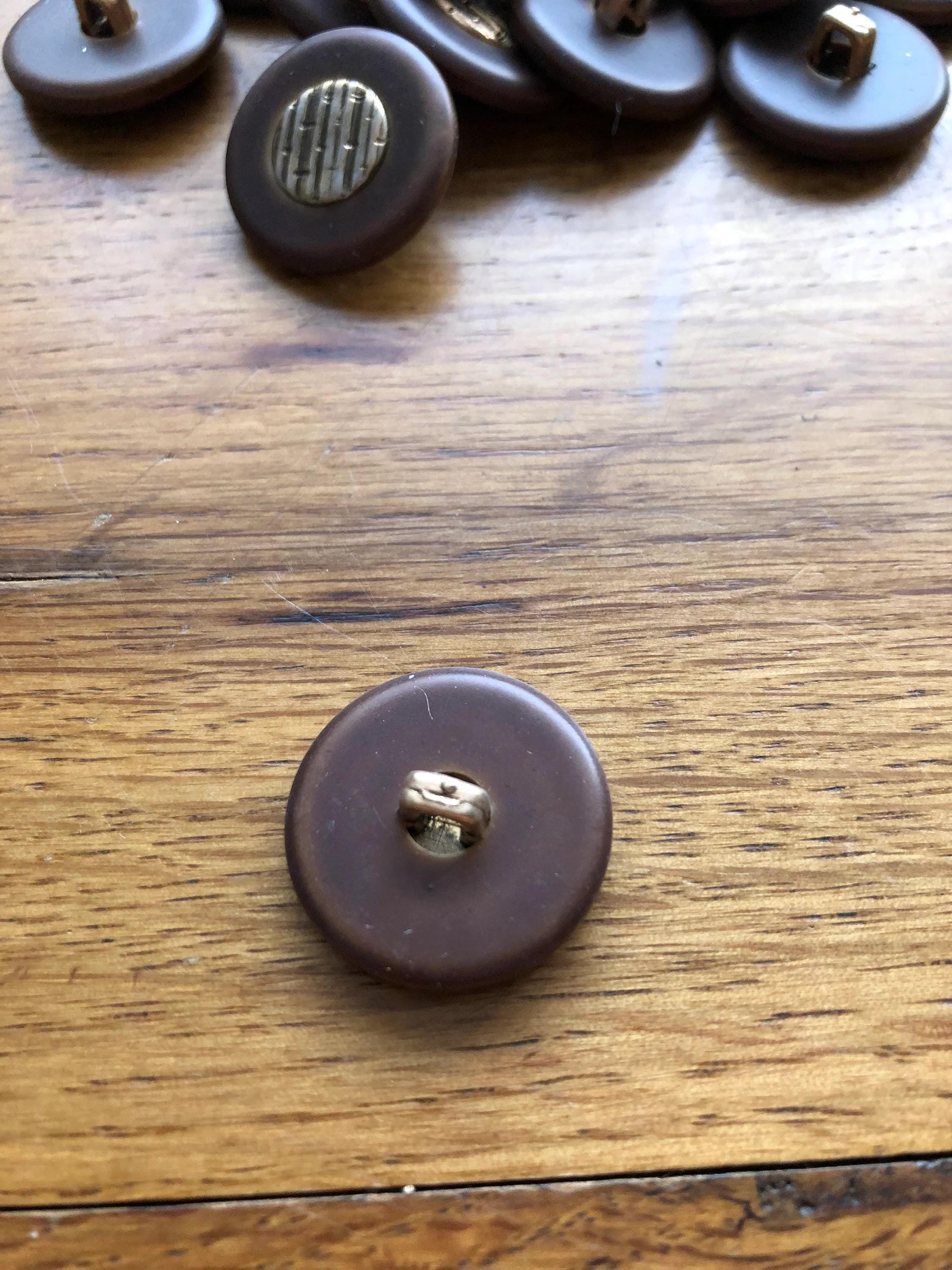 Discover these exquisite vintage dark brown fashion buttons with a striking gold coloured centre, reminiscent of bark markings. Perfect for adding a touch of elegance and unique character to your sewing or craft projects.