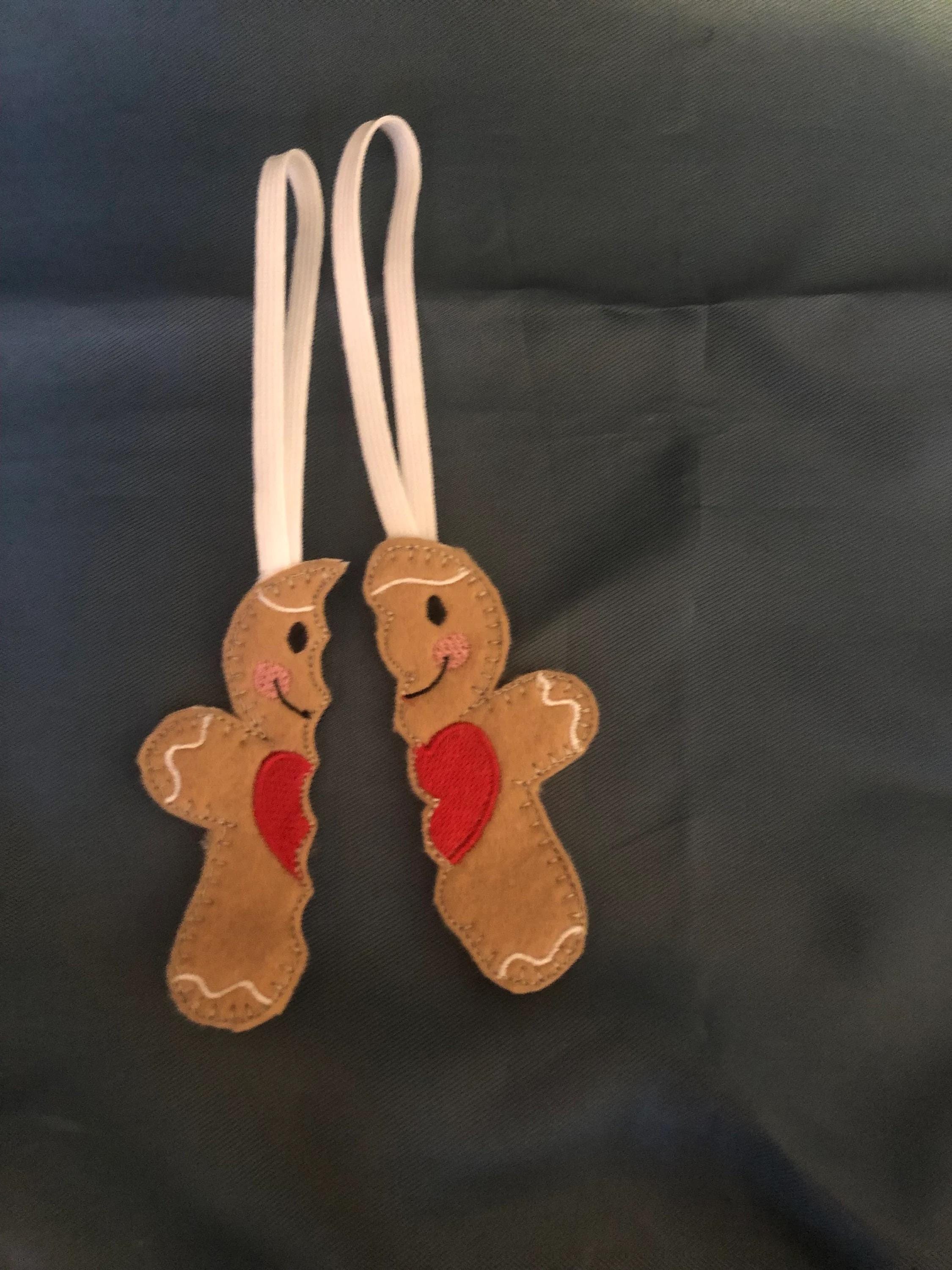 I make these on an embroidery machine, using good quality felt. The finished sizes are approximately 4 inches by 2 inches excluding the ribbon length. Ribbons may vary to that shown in the photo.