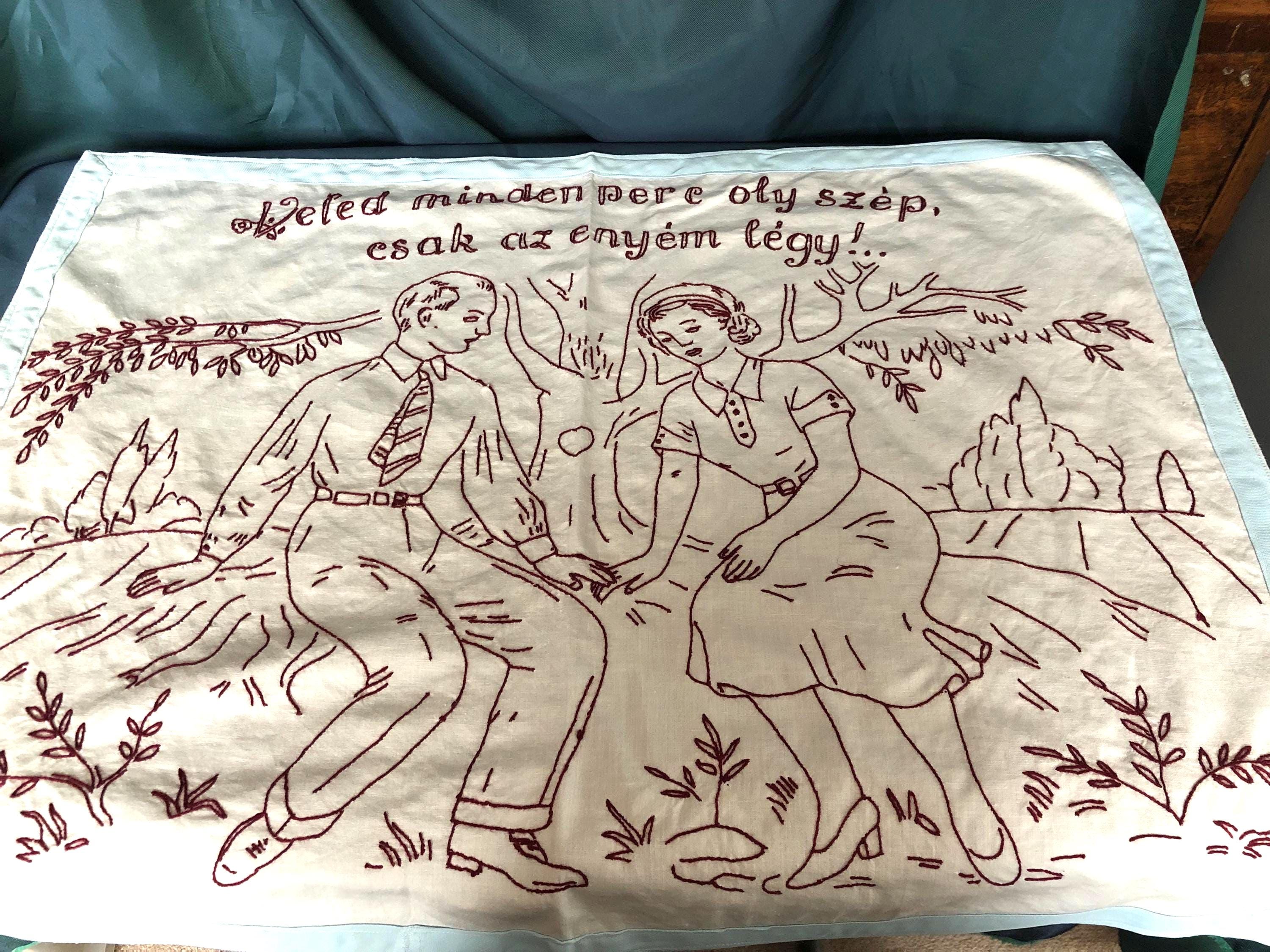 Pretty vintage Eastern European (Maybe Hungarian) hand embroidered cloth cover.