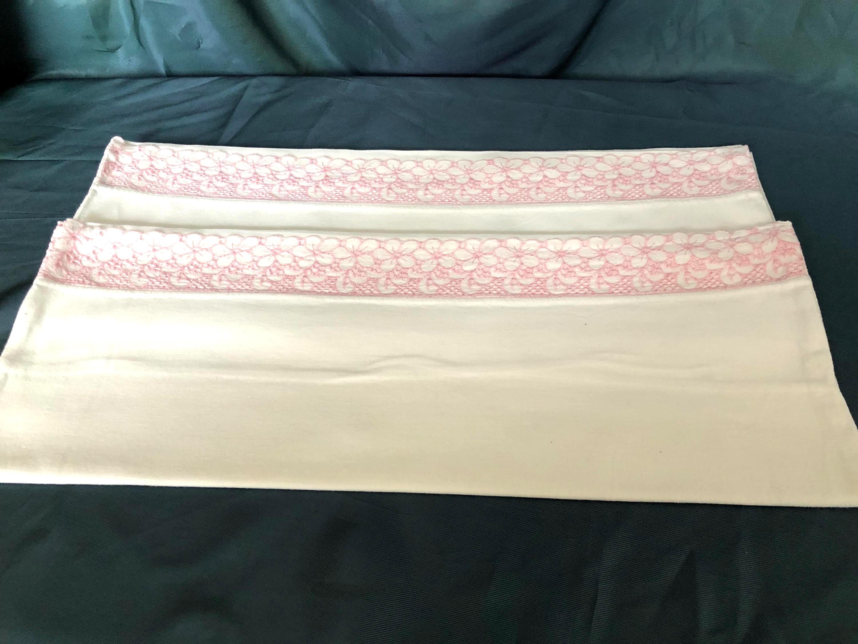 I have a pair of pretty vintage cotton pillowcases, with pink flowered lace.