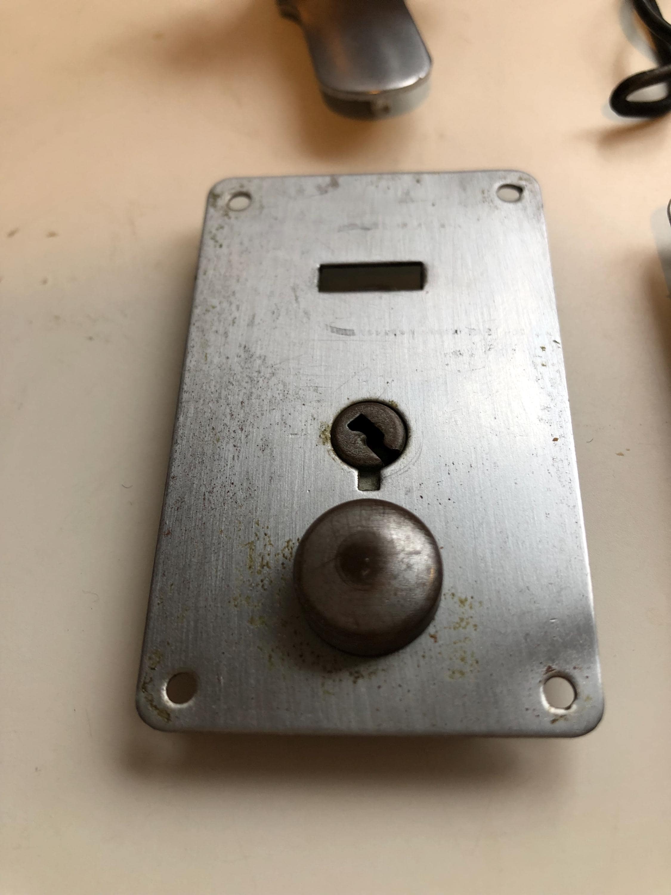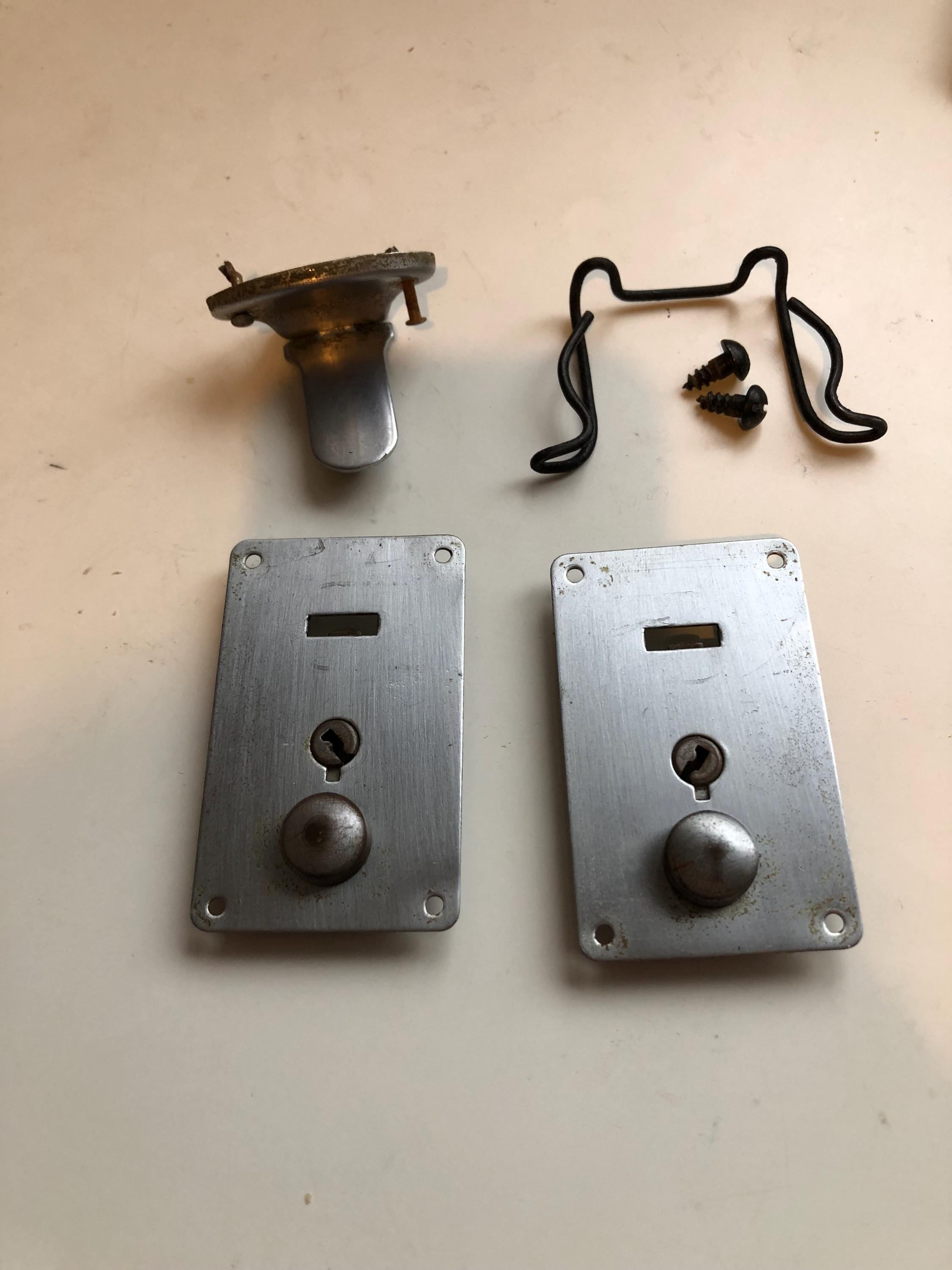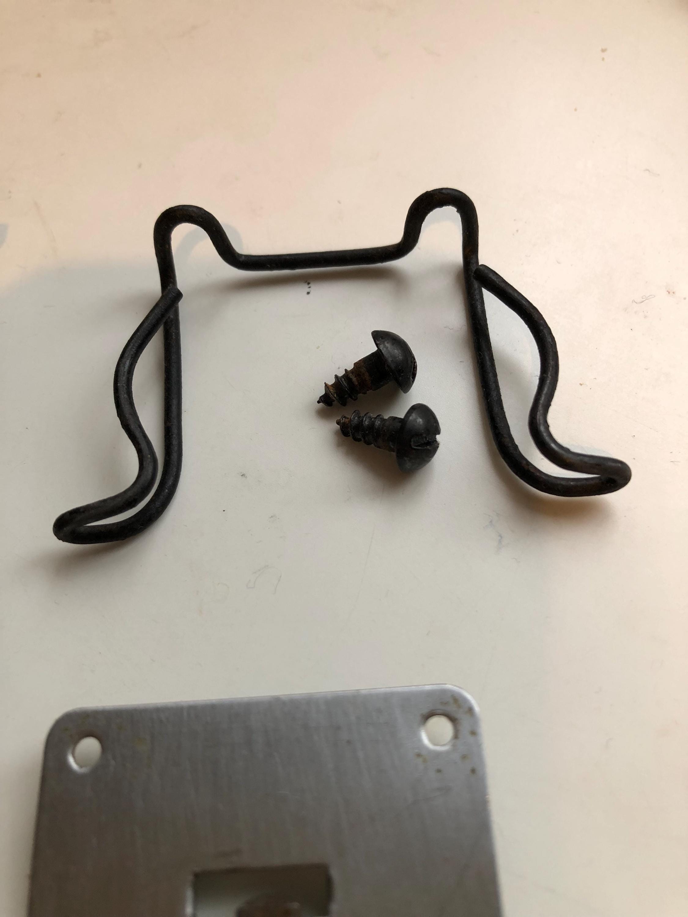 Included is the oil can holder, two locks and one case clasps (round). What is not included are the rivets or replacement screws.
