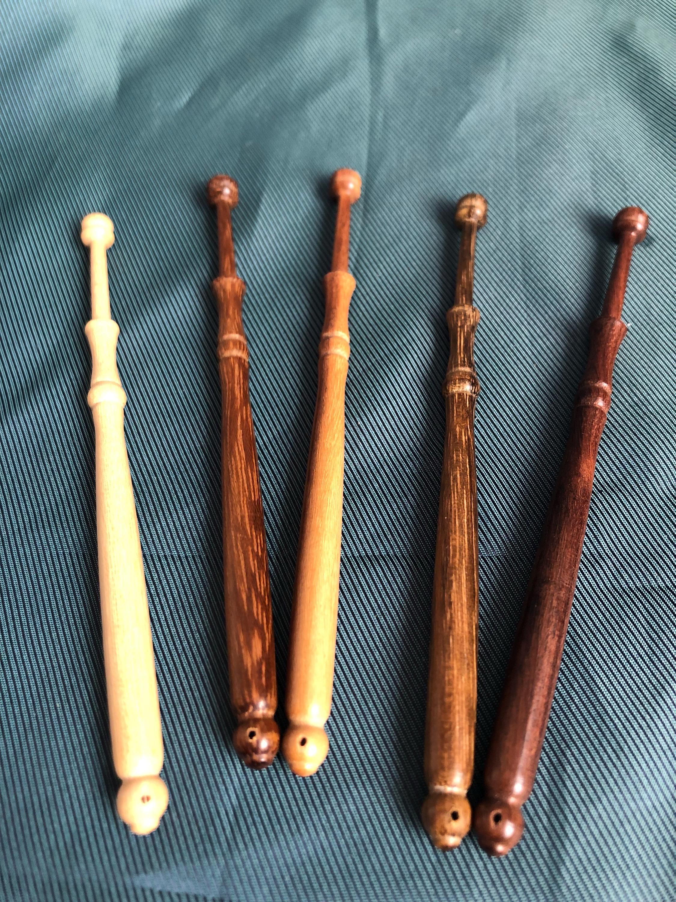 - Set of 5 wooden lace making bobbins in various woods