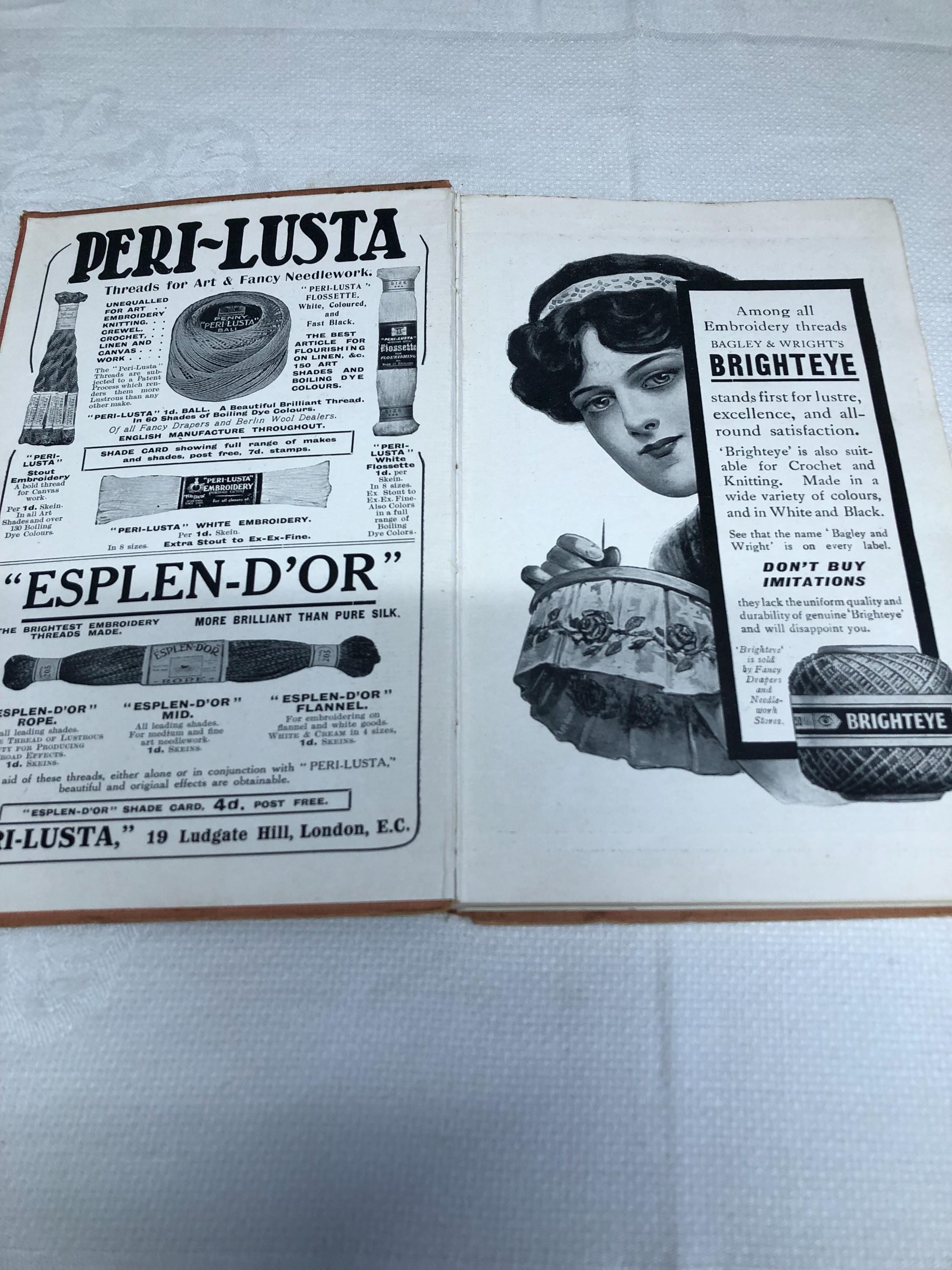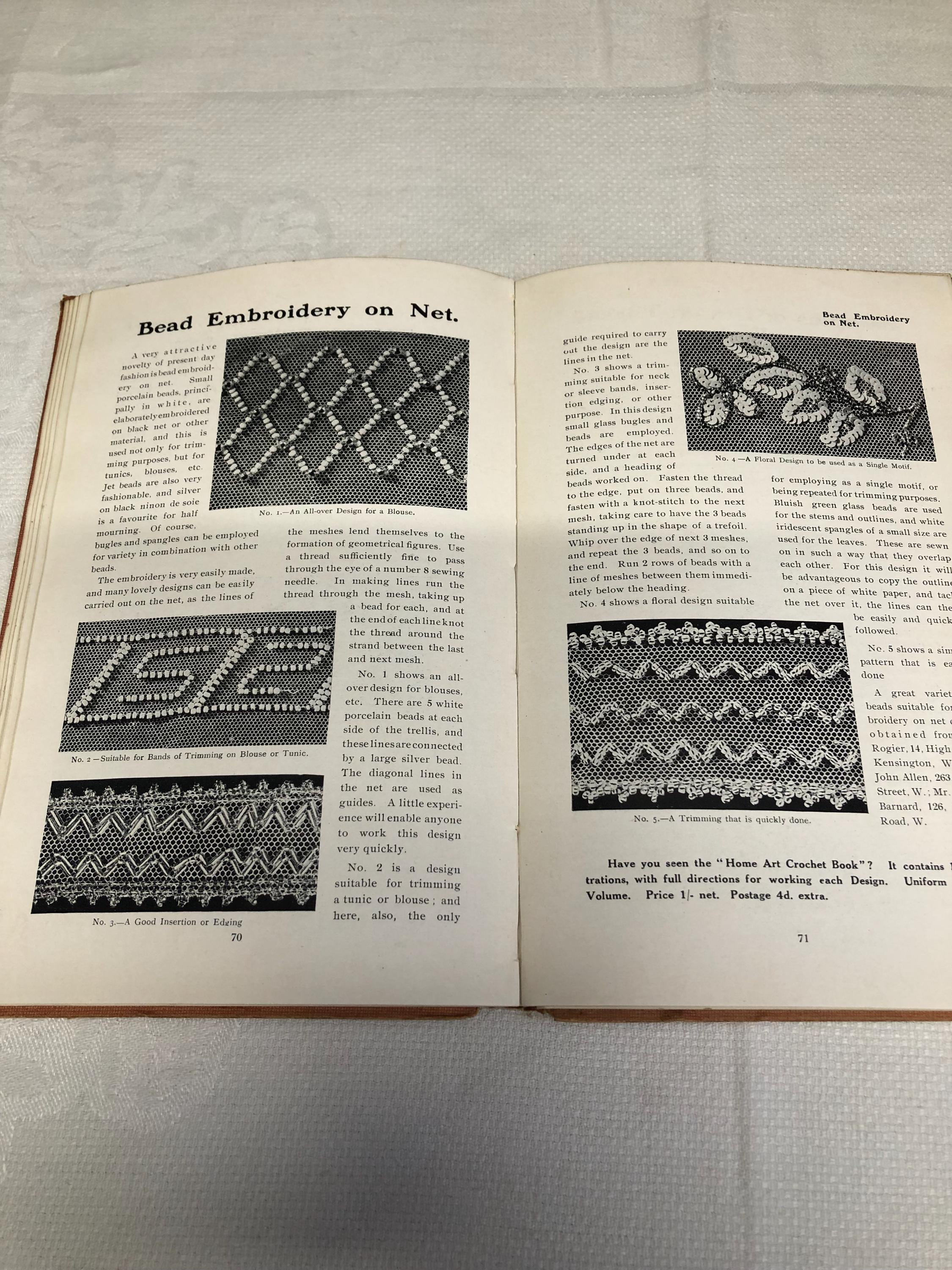 Here we have another book edited by Flora Klickmann. The Home Art Book of Fancy Stitchery with "new" ideas for applying crochet to lingerie and napery bead-work and fancy stitches for dress trimmings, featherstitching, smocking, hardanger work.....