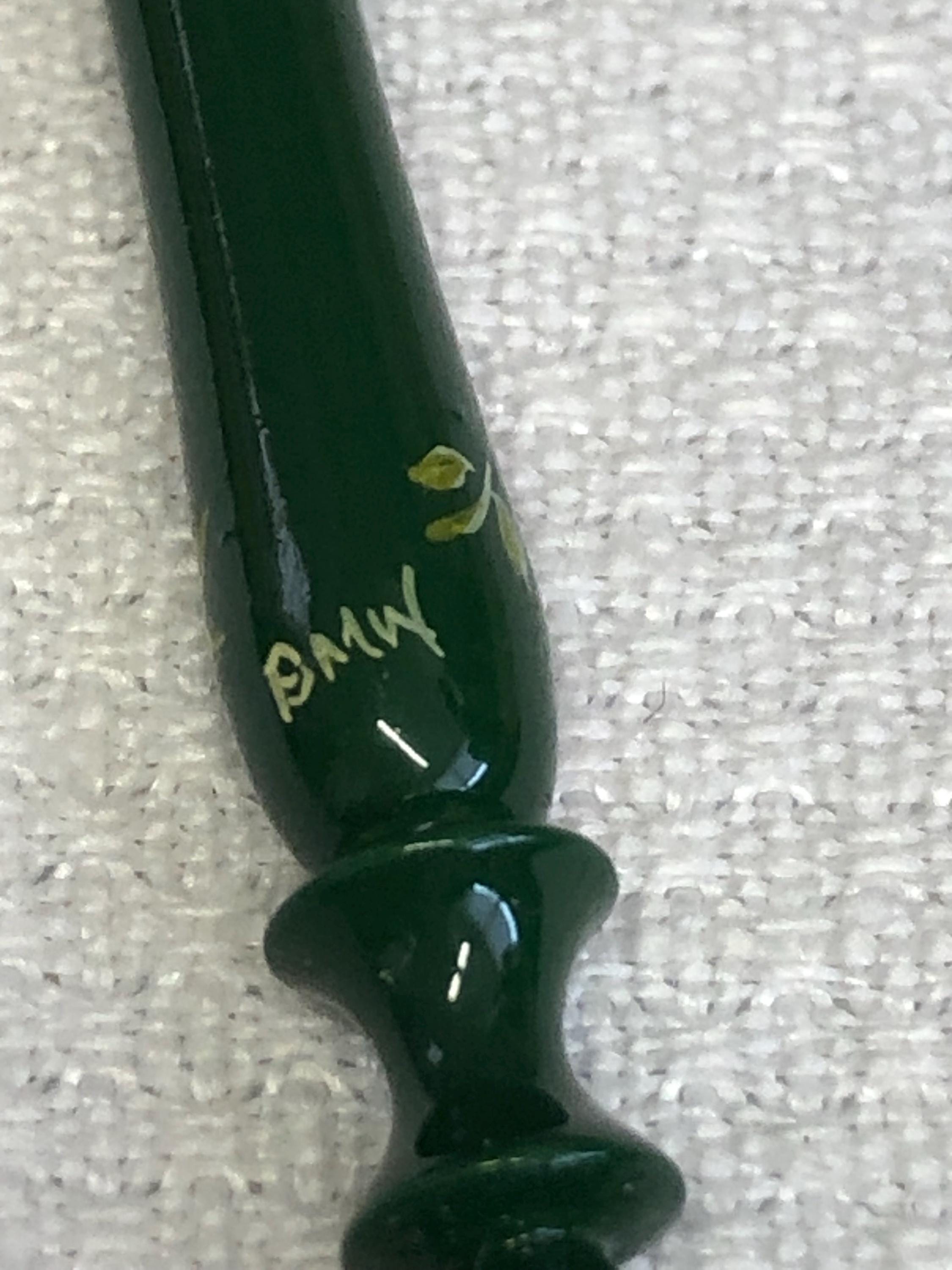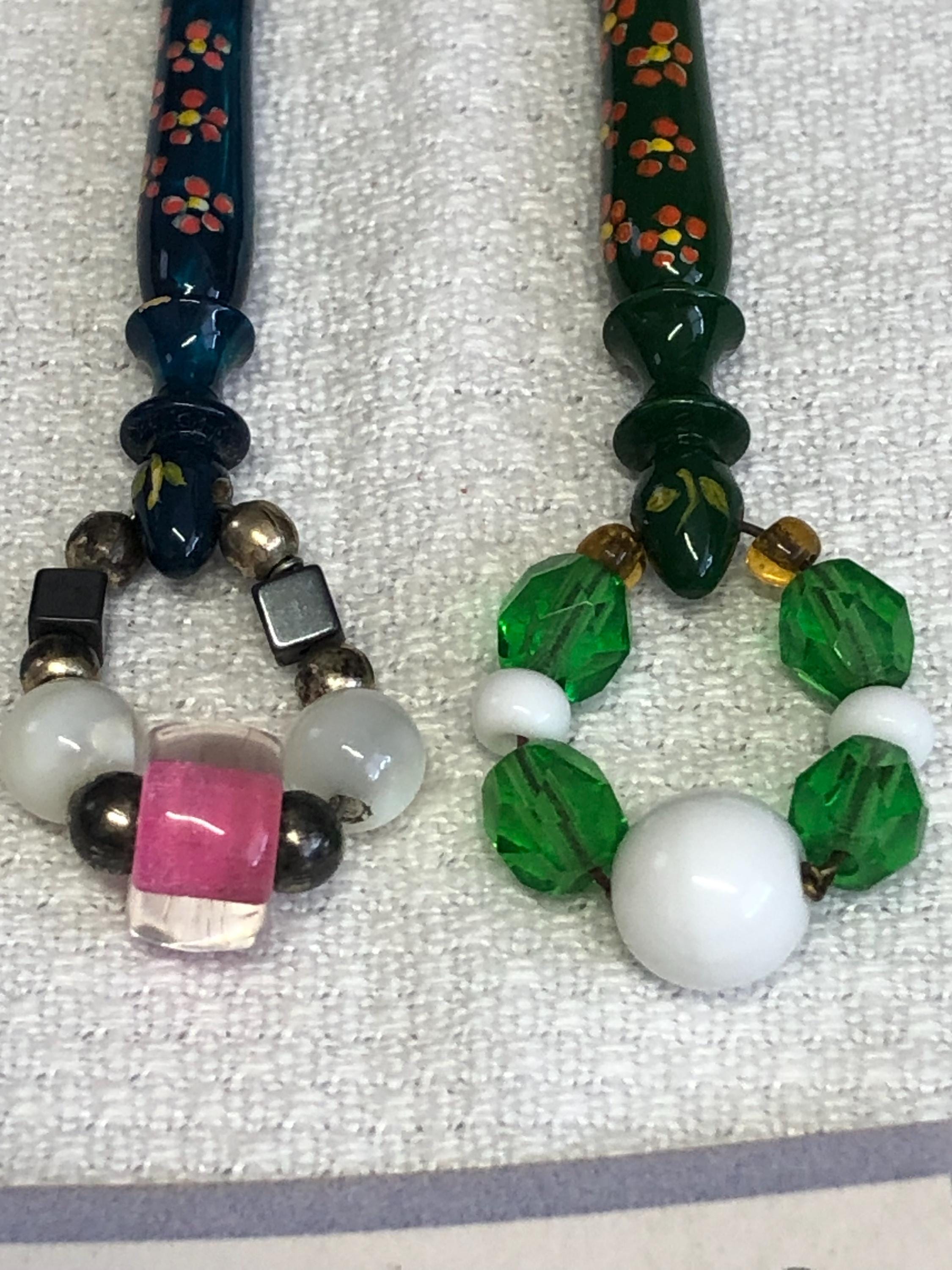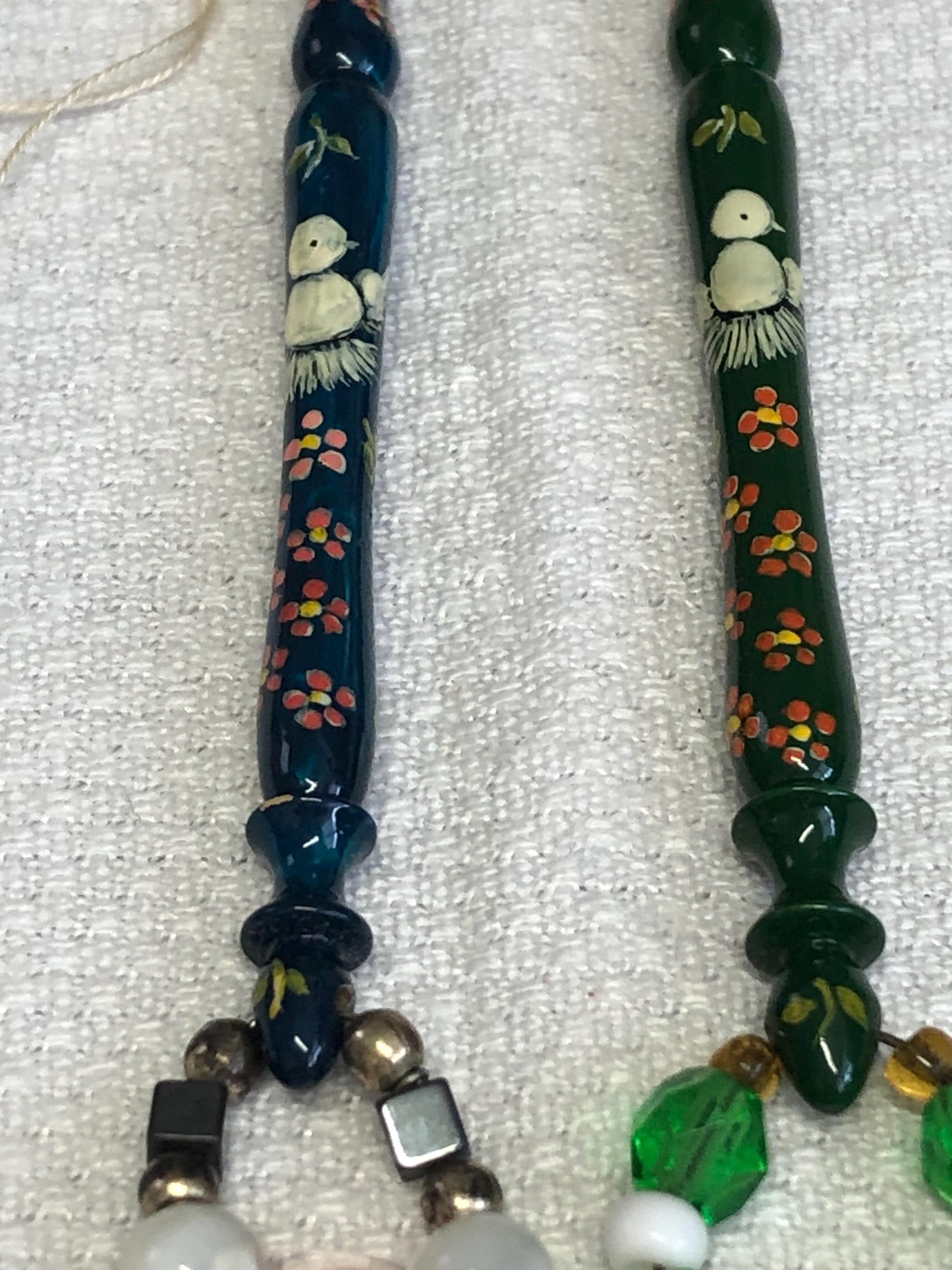 One pair of hand painted wood lacemaking bobbins with spangles.