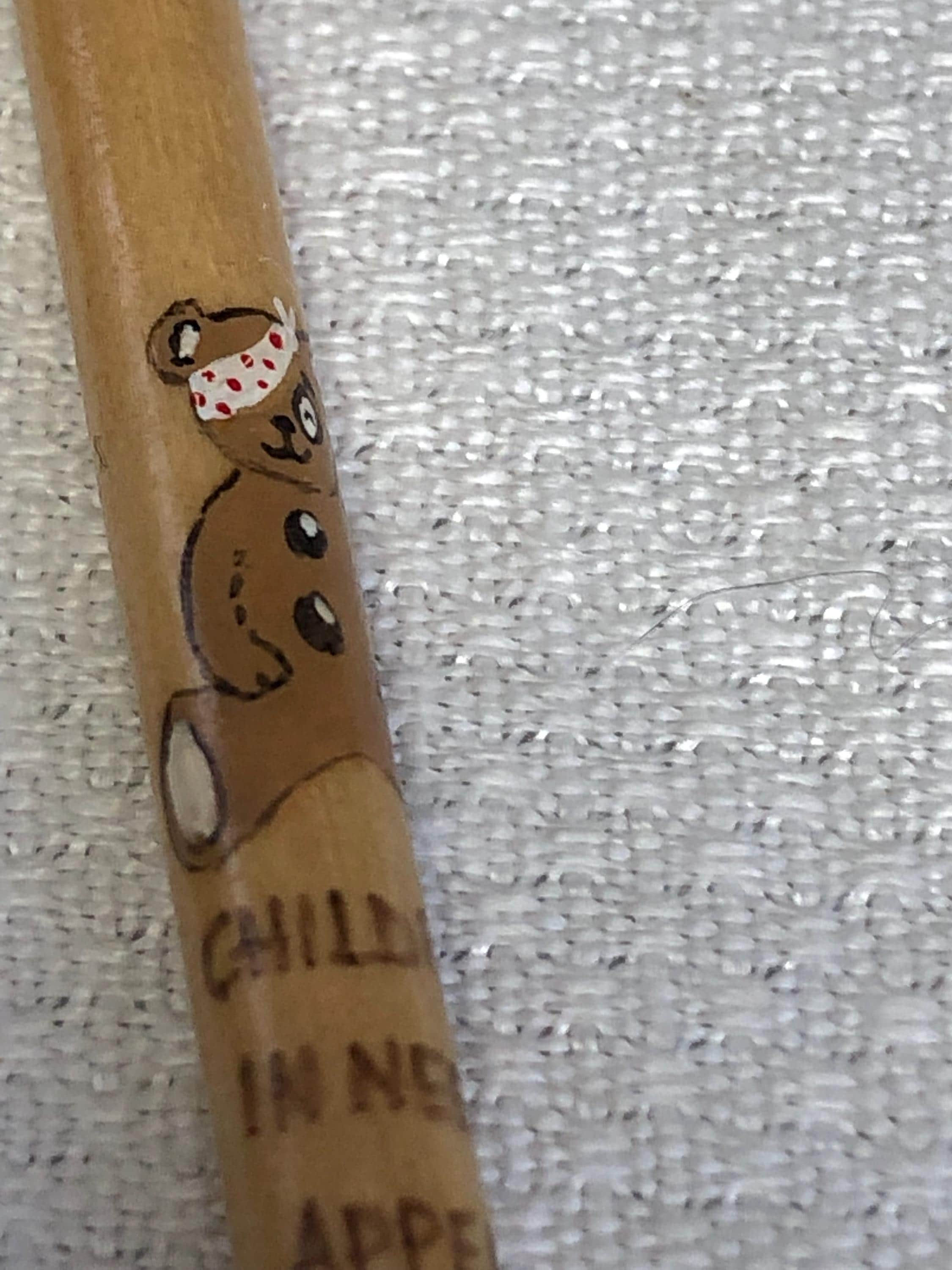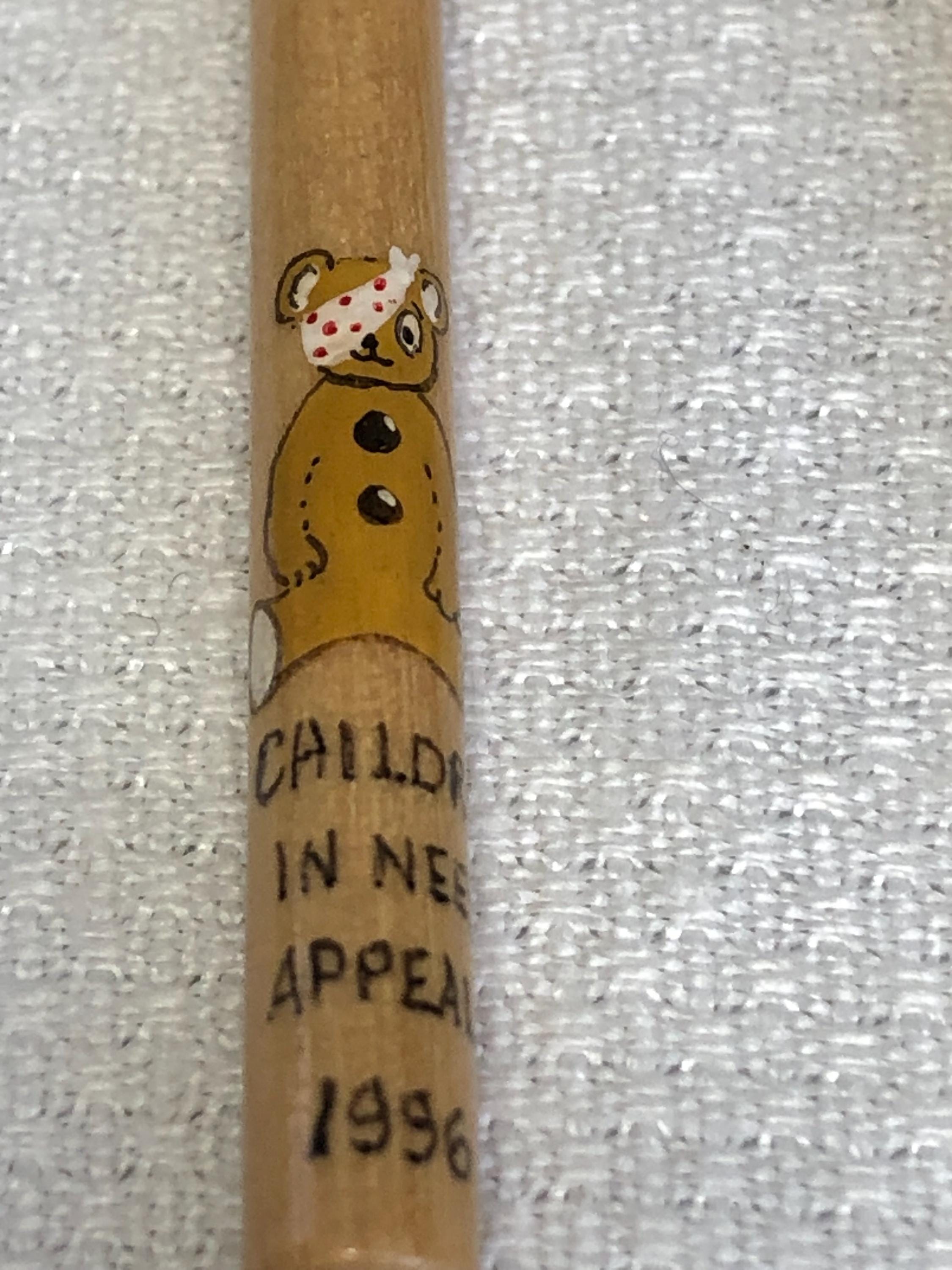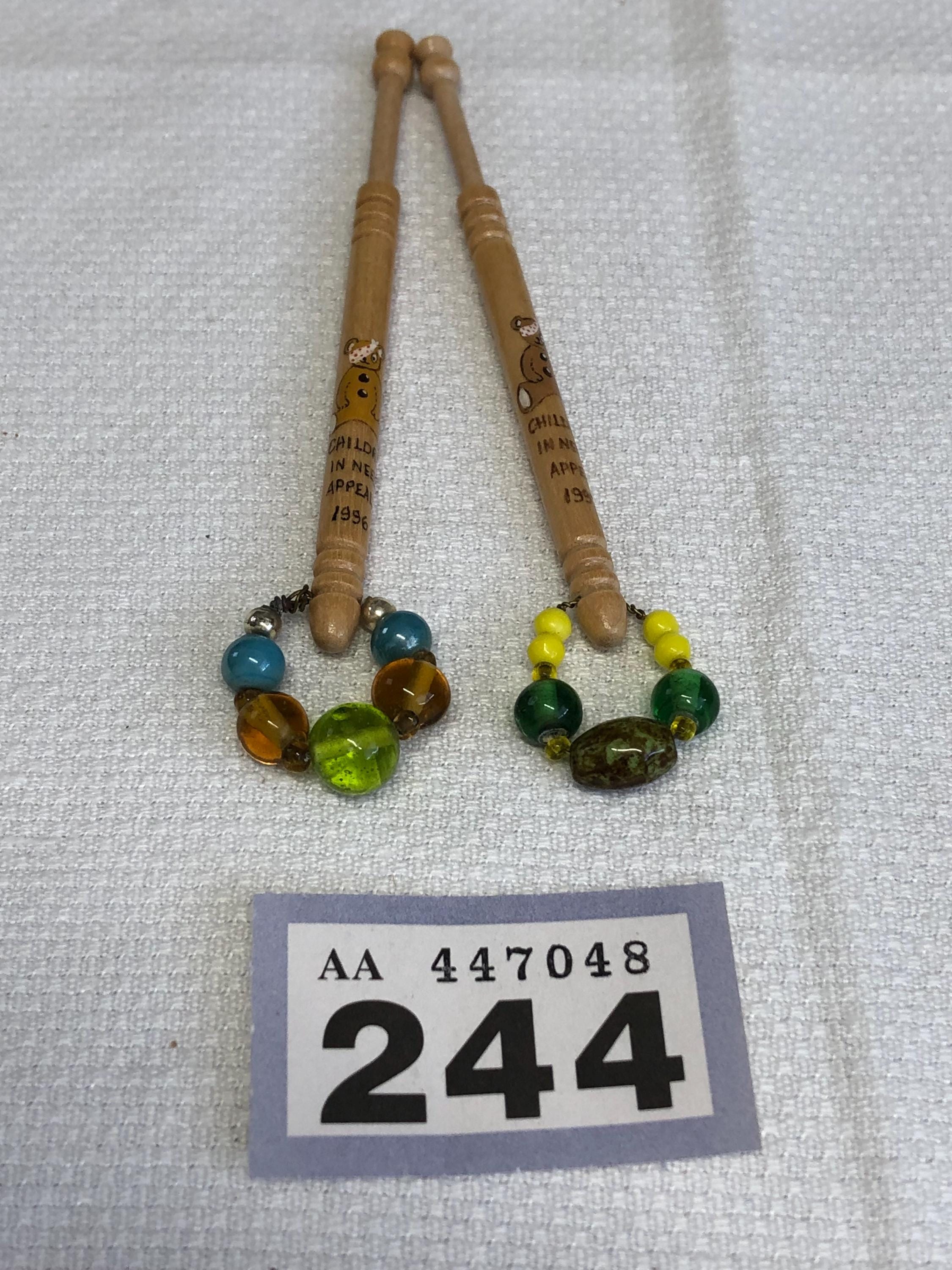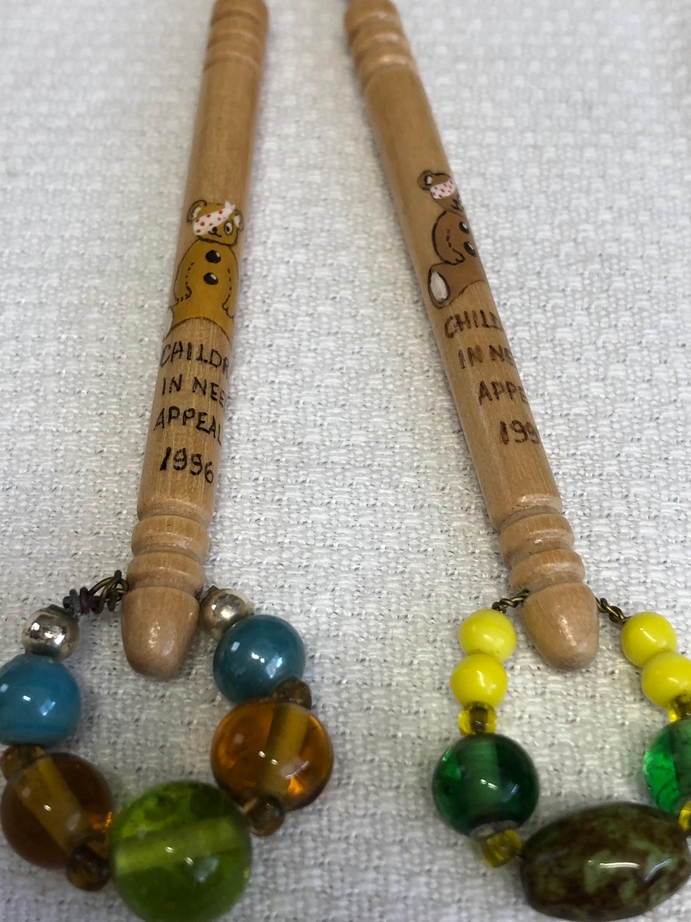 Pair of wooden lacemaking bobbins - Pudsey Bear