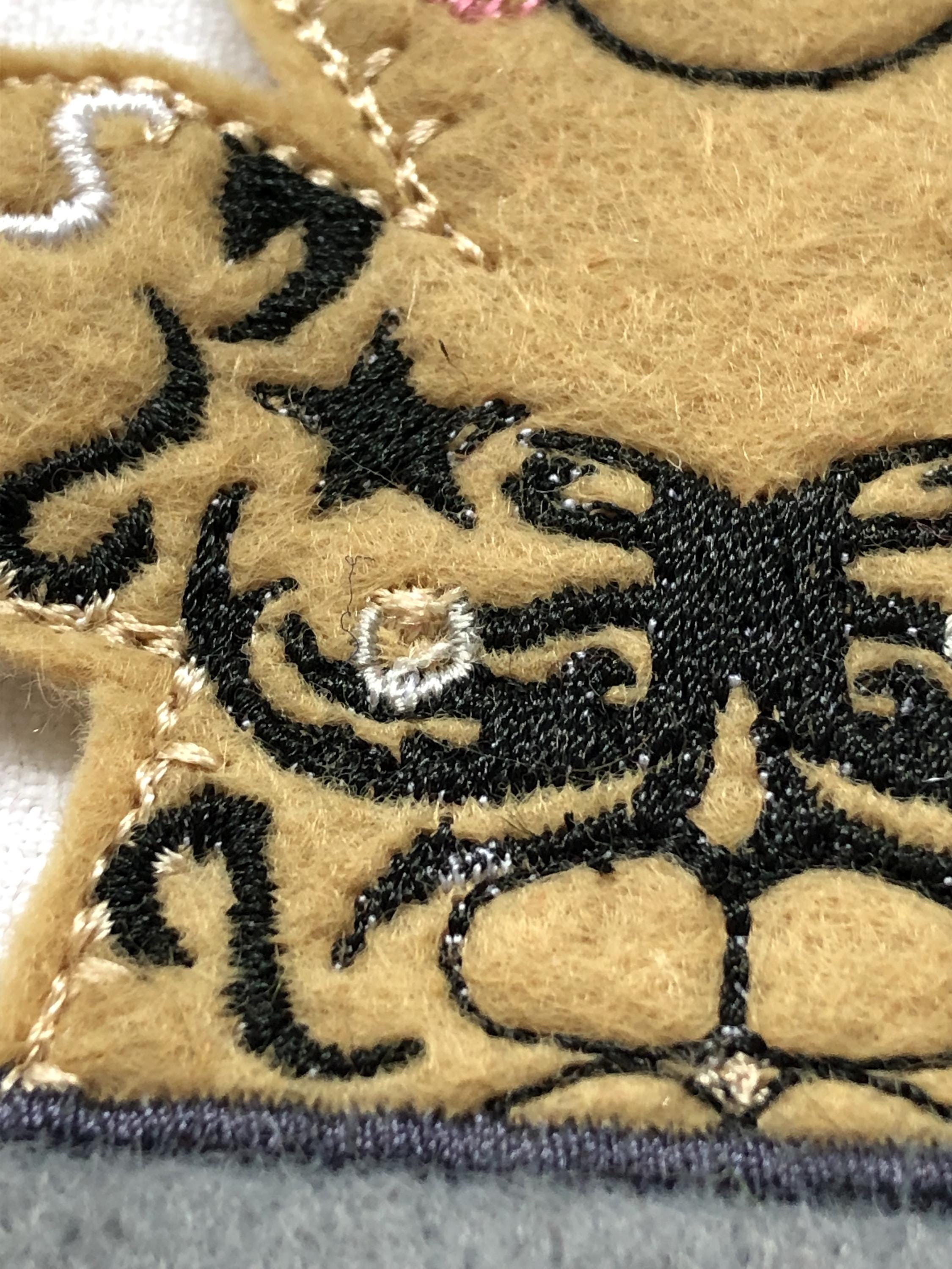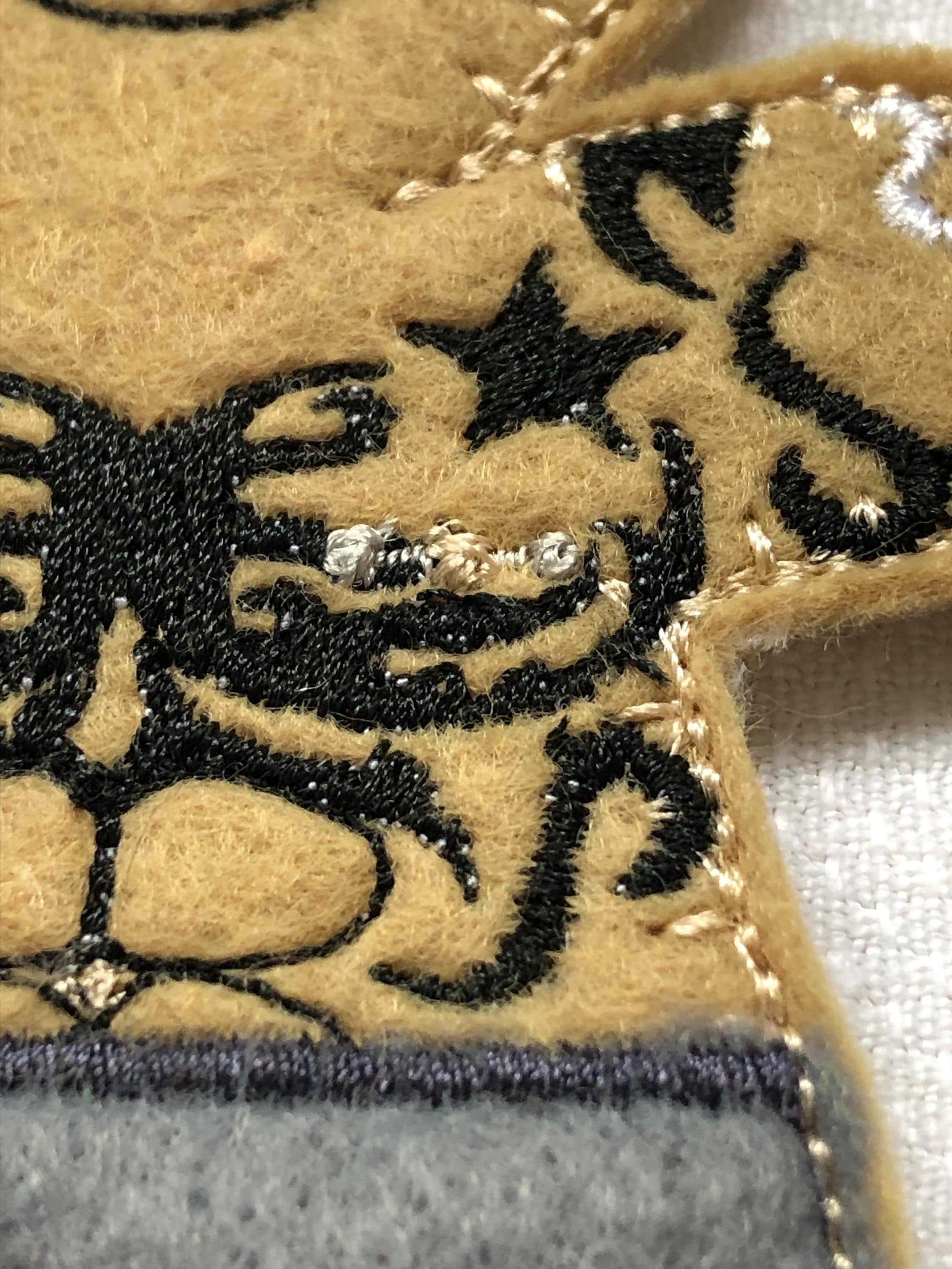 I make these on an embroidery machine, using good quality felt. The finished sizes are approximately 4 inches by 2 inches excluding the ribbon length. Ribbons may vary to that shown in the photo.