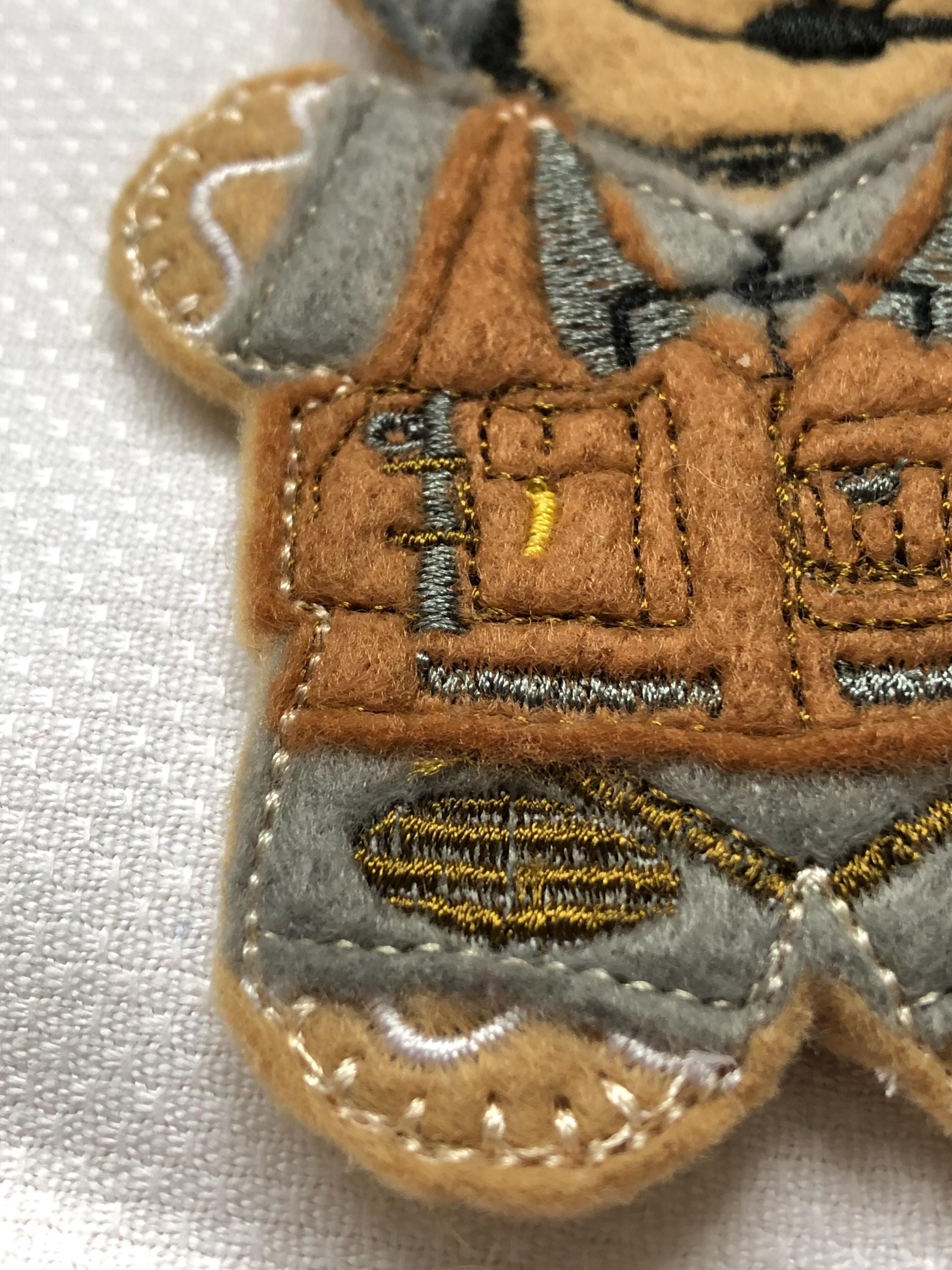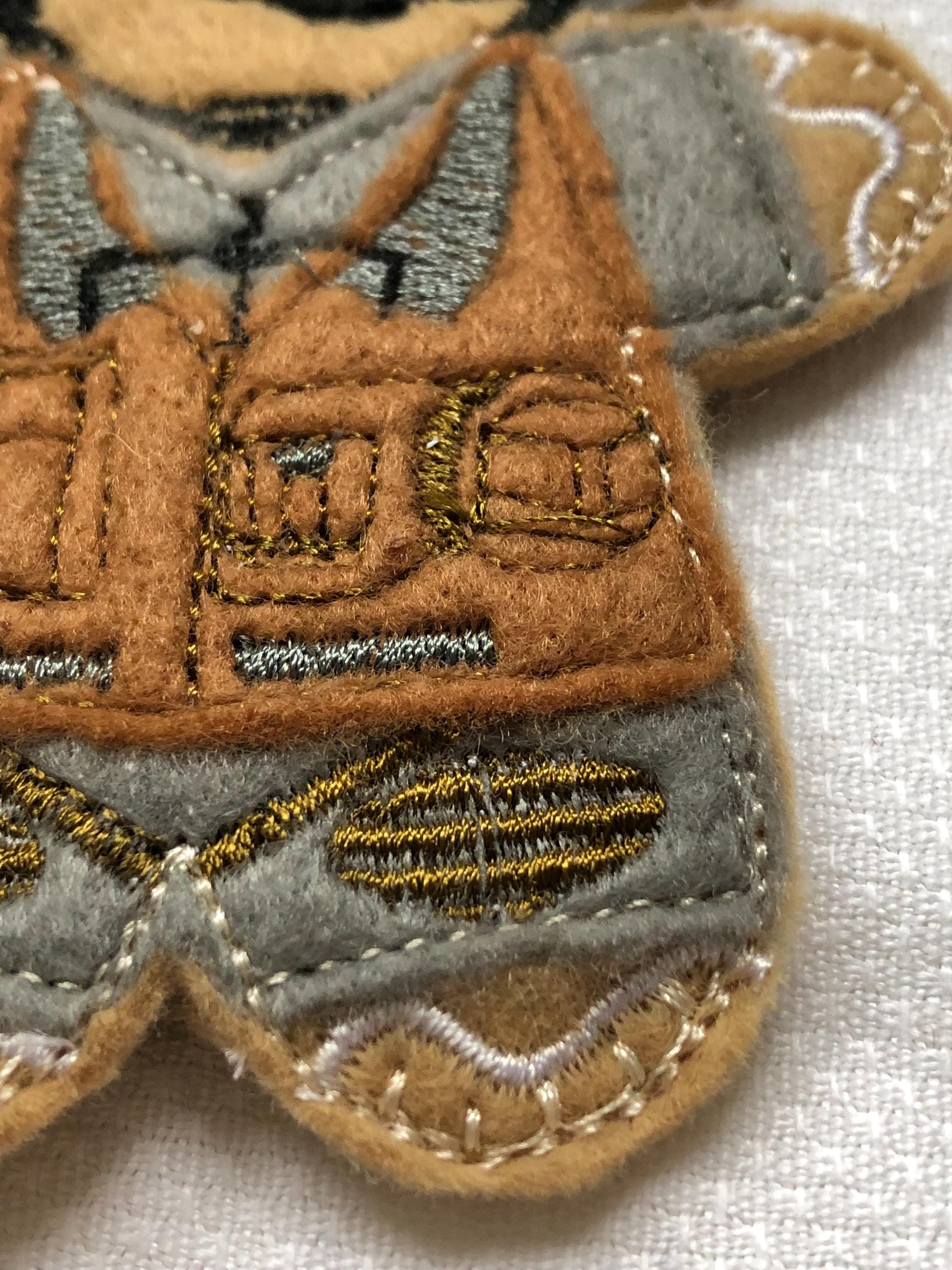 I make these on an embroidery machine, using good quality felt. The finished sizes are approximately 4 inches by 2 inches excluding the ribbon length. Ribbons may vary to that shown in the photo.