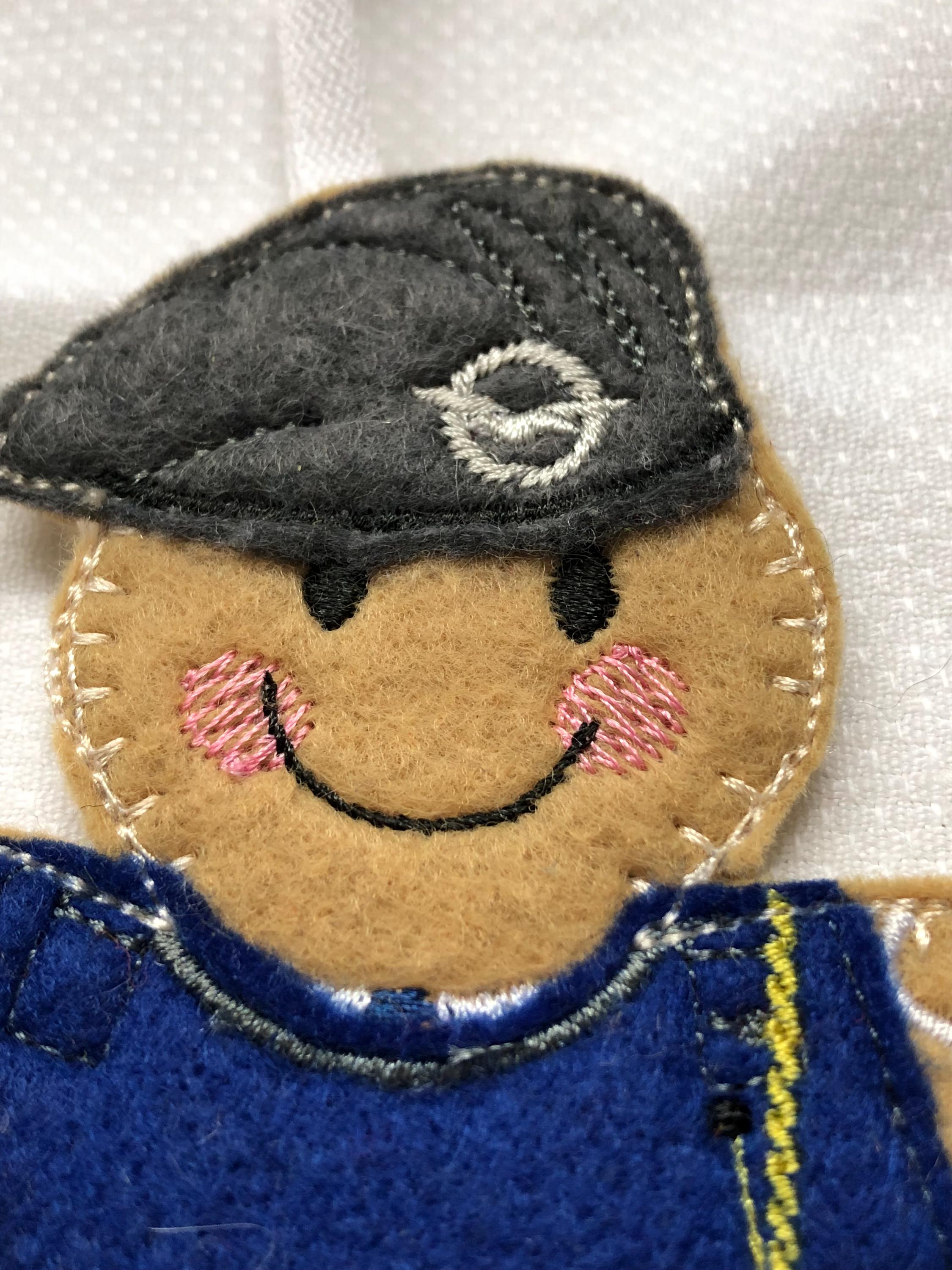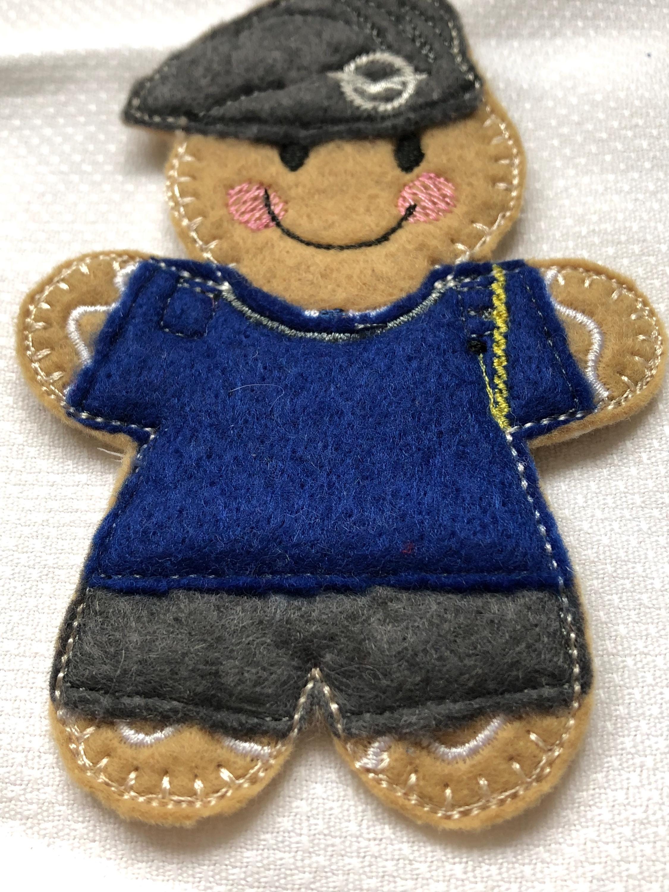 I make these on an embroidery machine, using good quality felt. The finished sizes are approximately 4 inches by 2 inches excluding the ribbon length. Ribbons may vary to that shown in the photo.