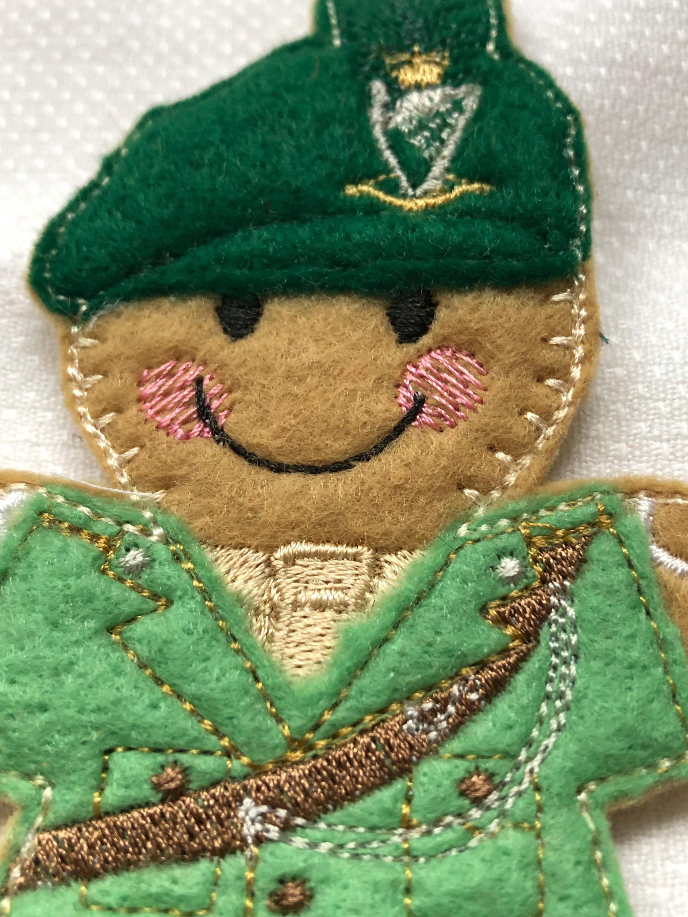 This cheeky gingerbread man is "The Irish Soldier"