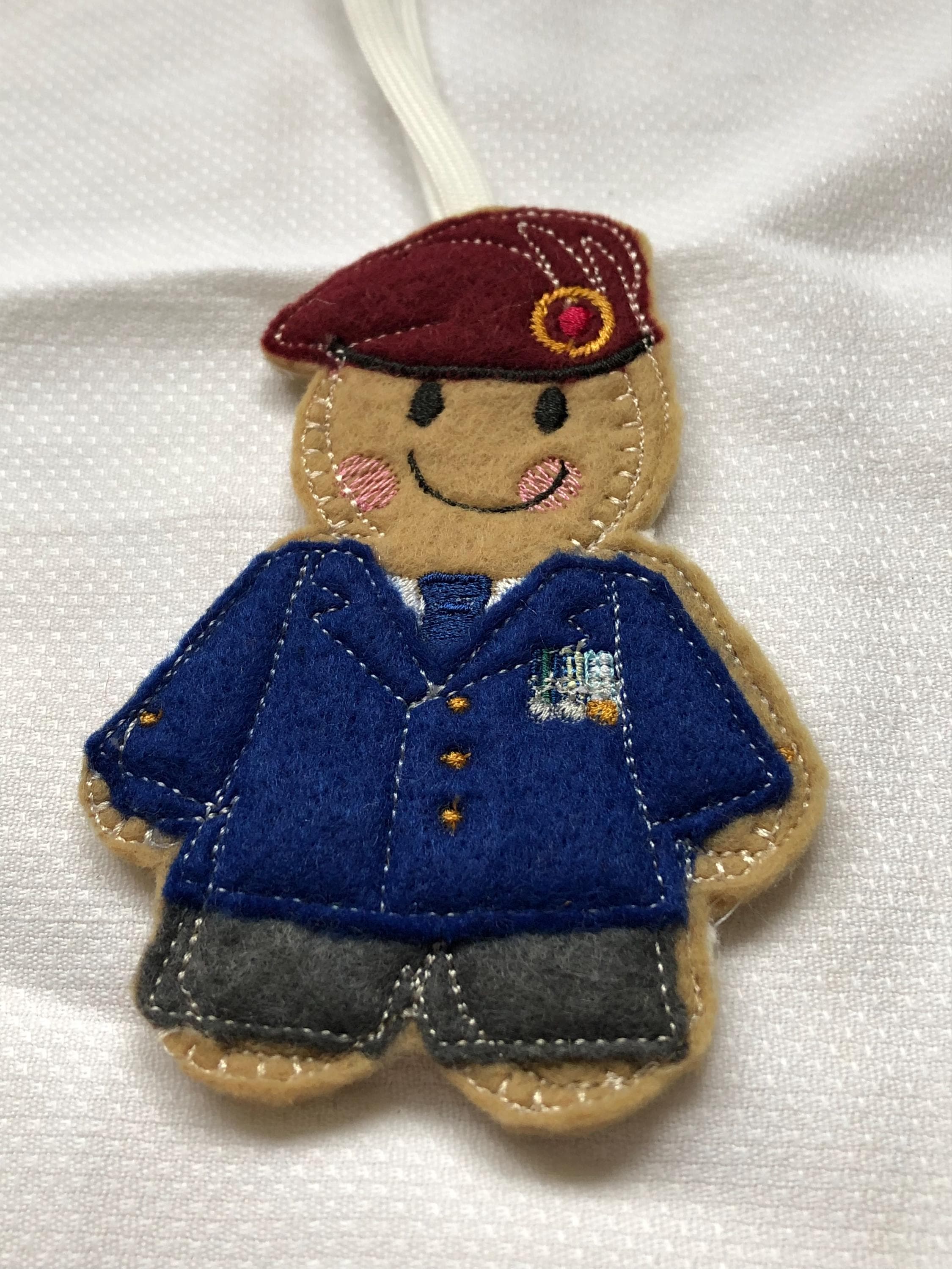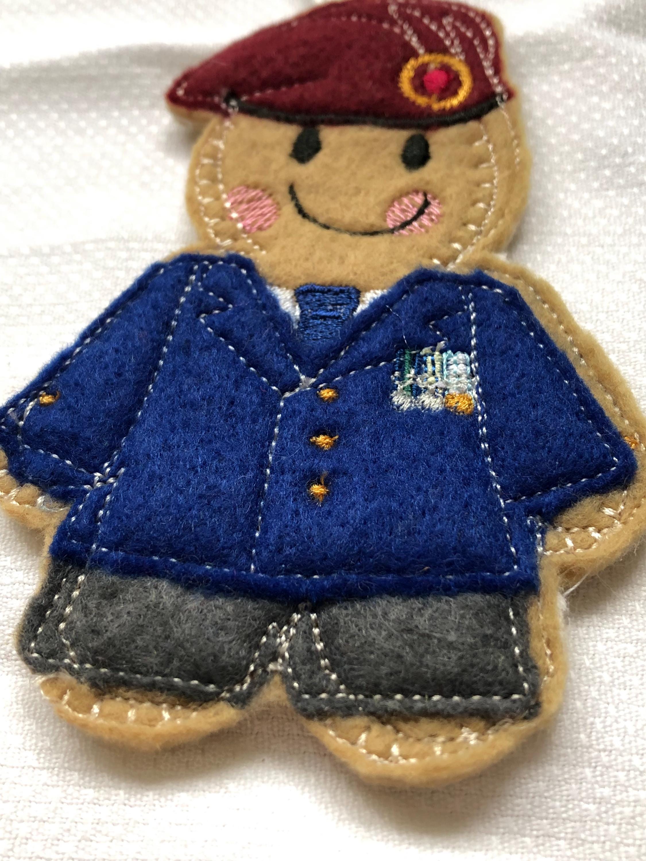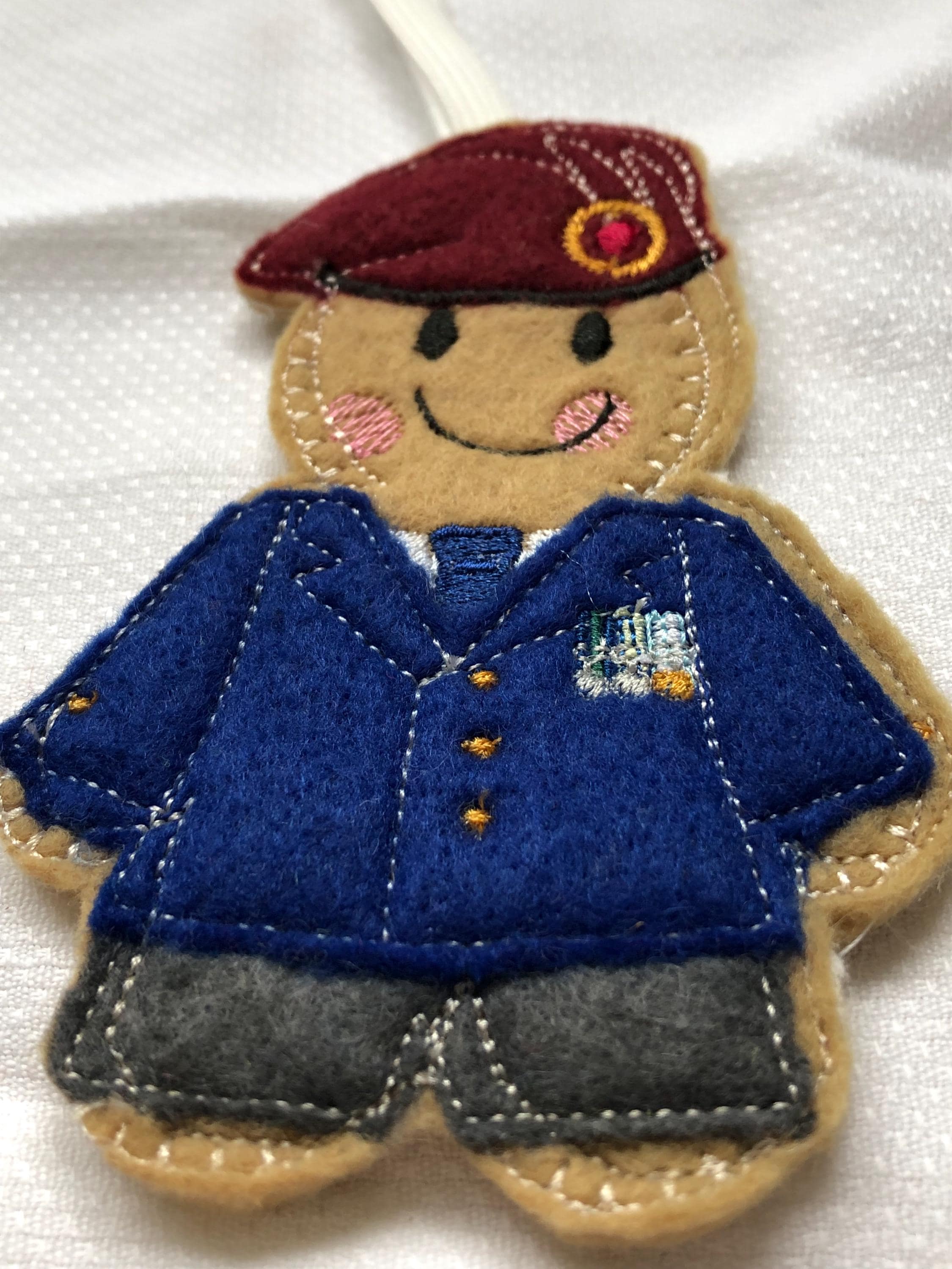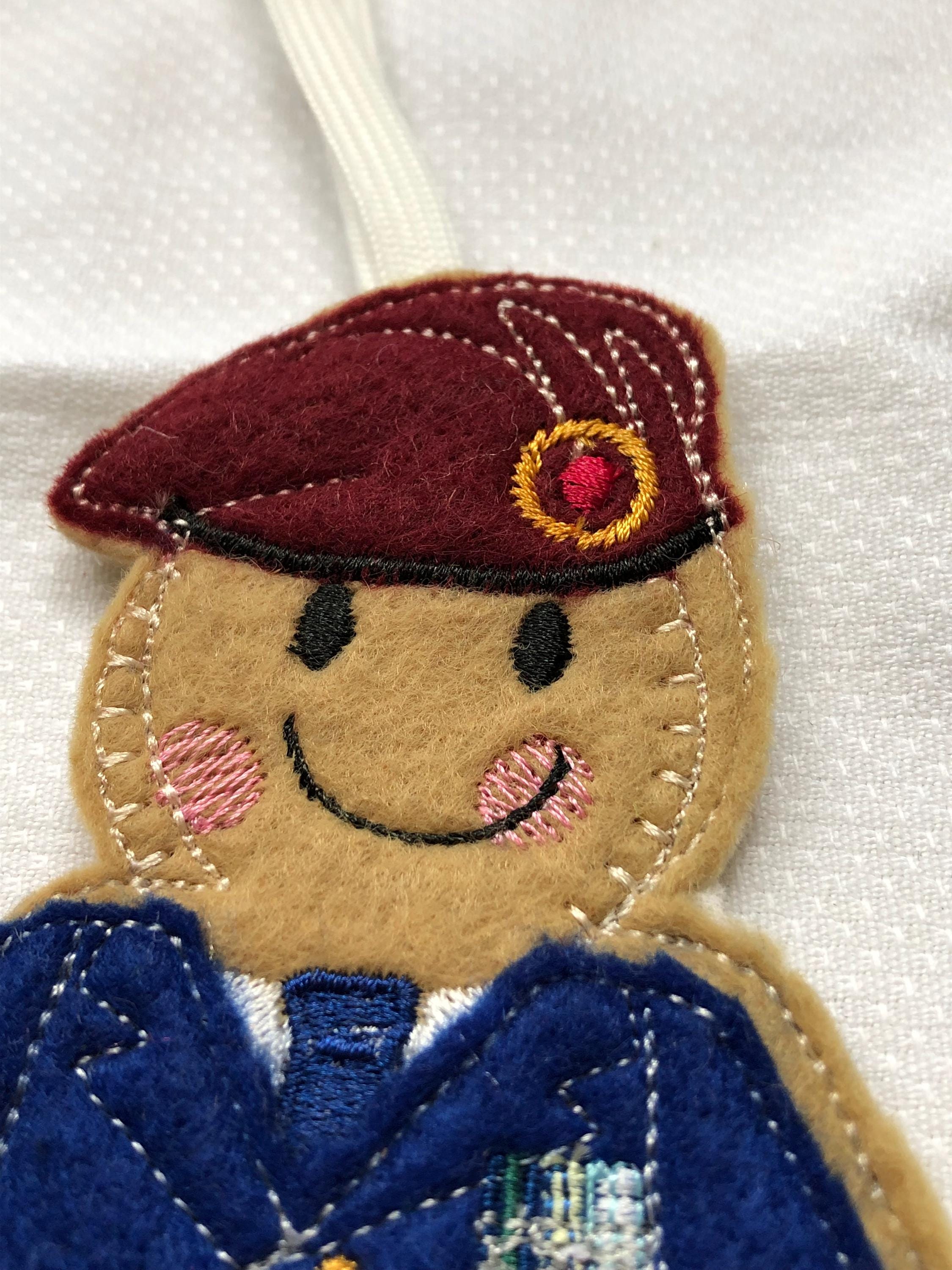 I make these on an embroidery machine, using good quality felt. The finished sizes are approximately 4 inches by 2 inches excluding the ribbon length. Ribbons may vary to that shown in the photo.