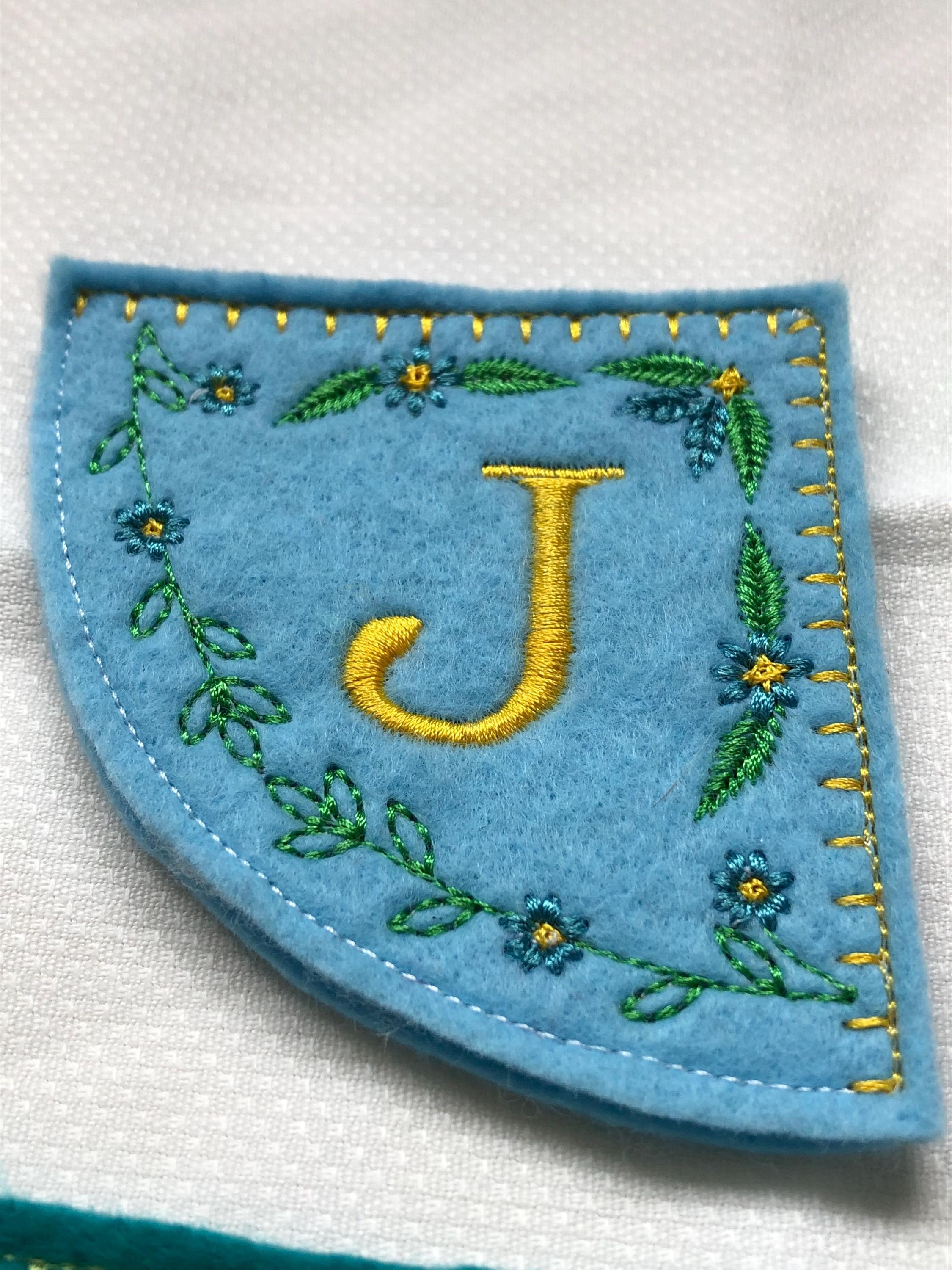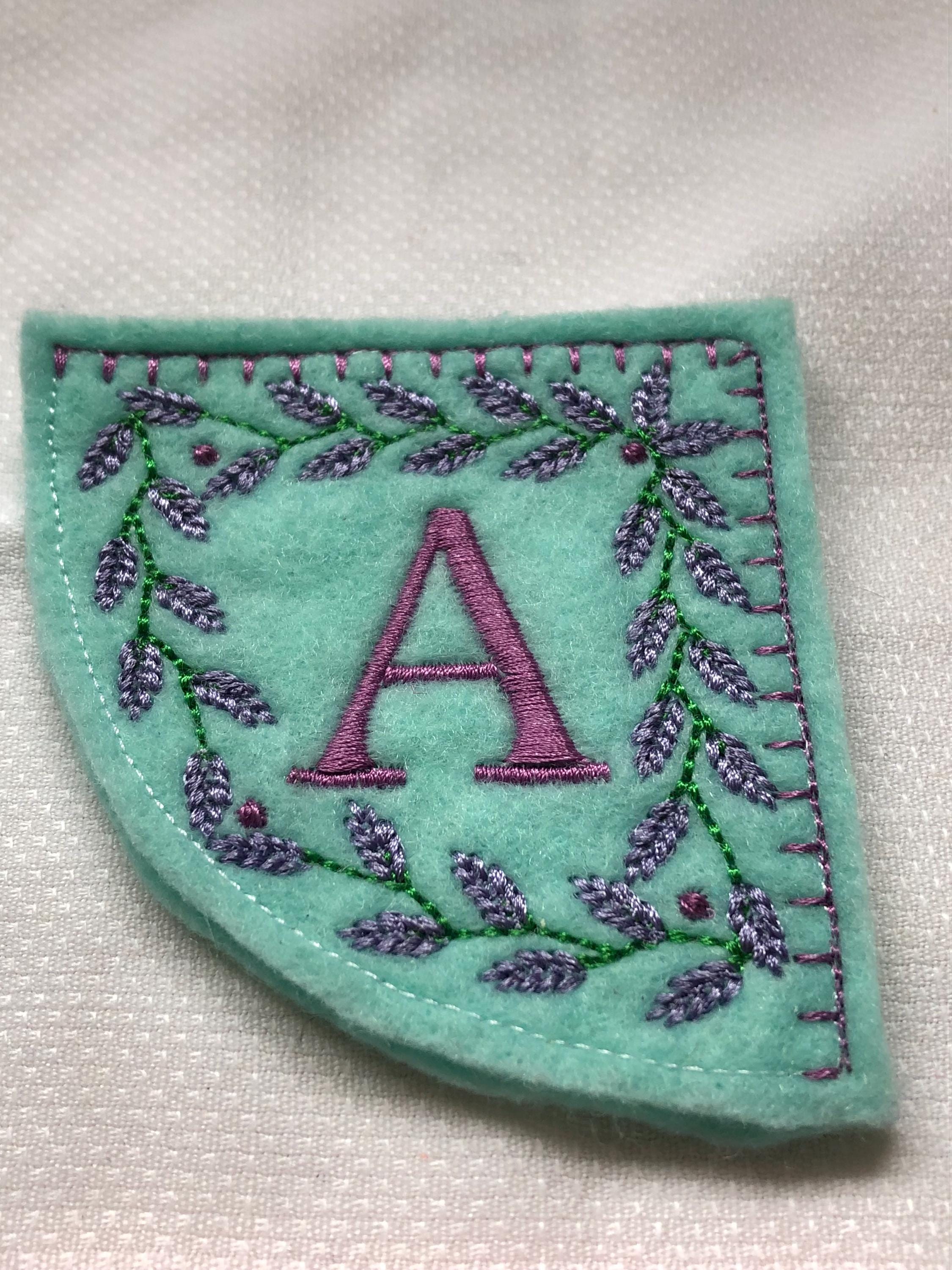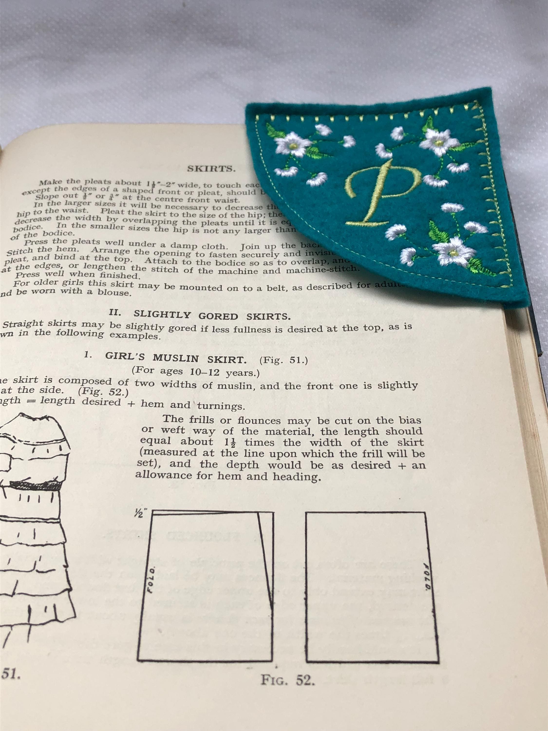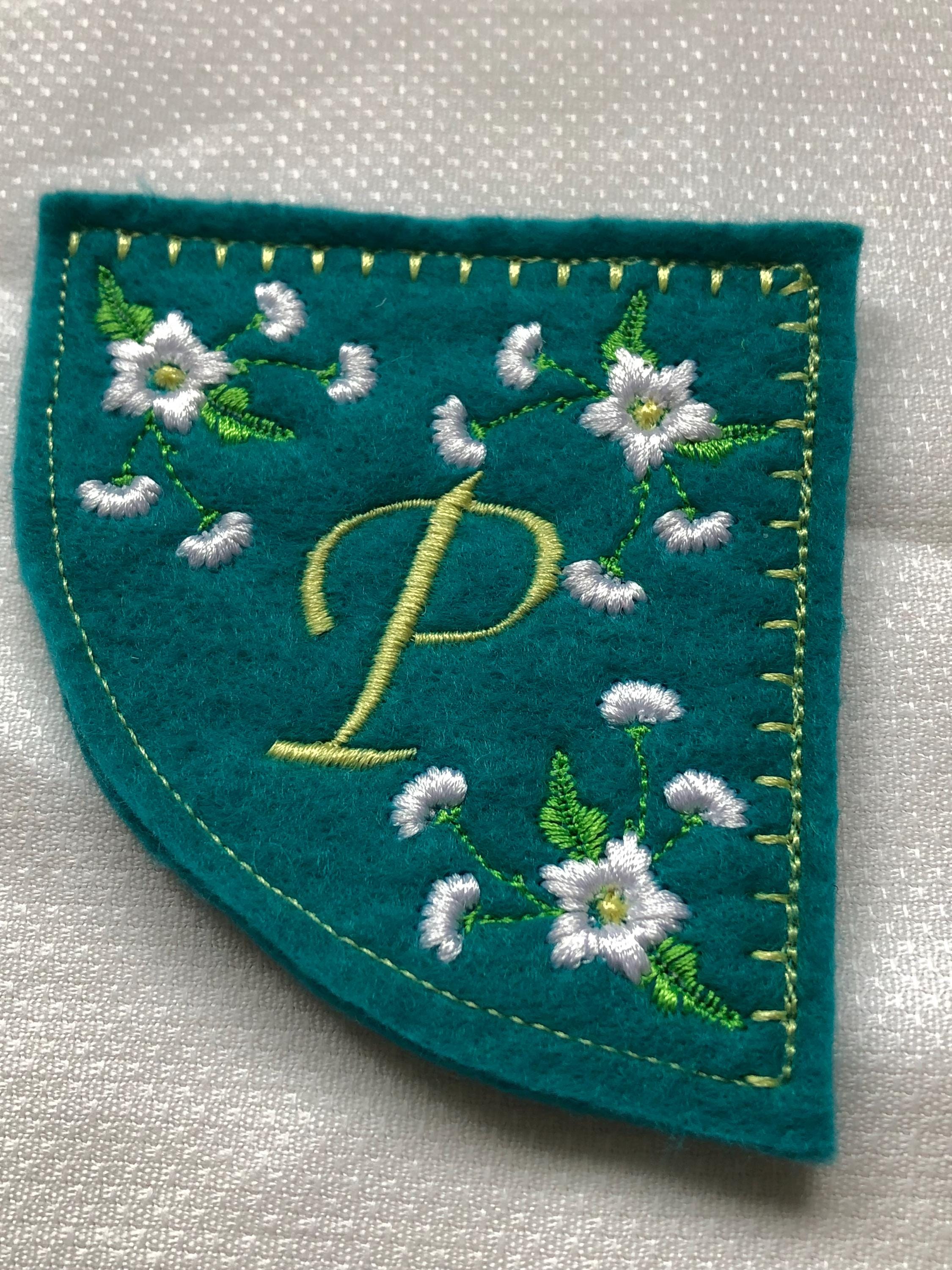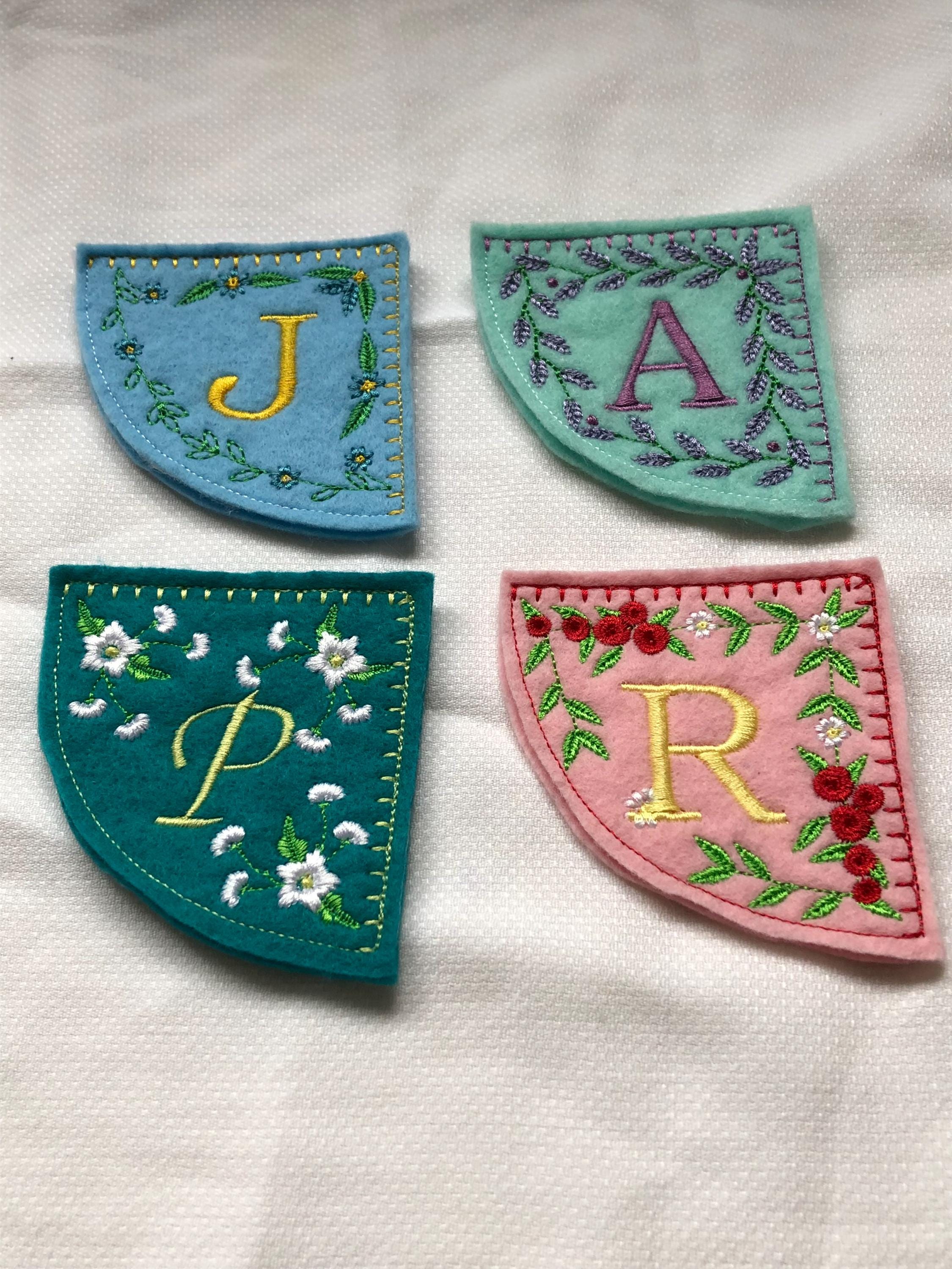 Here we have the four remaining corner bookmarks I machine embroidered.Each are made from felt, and have been embroidered with an initial.I am unable to produce any more.