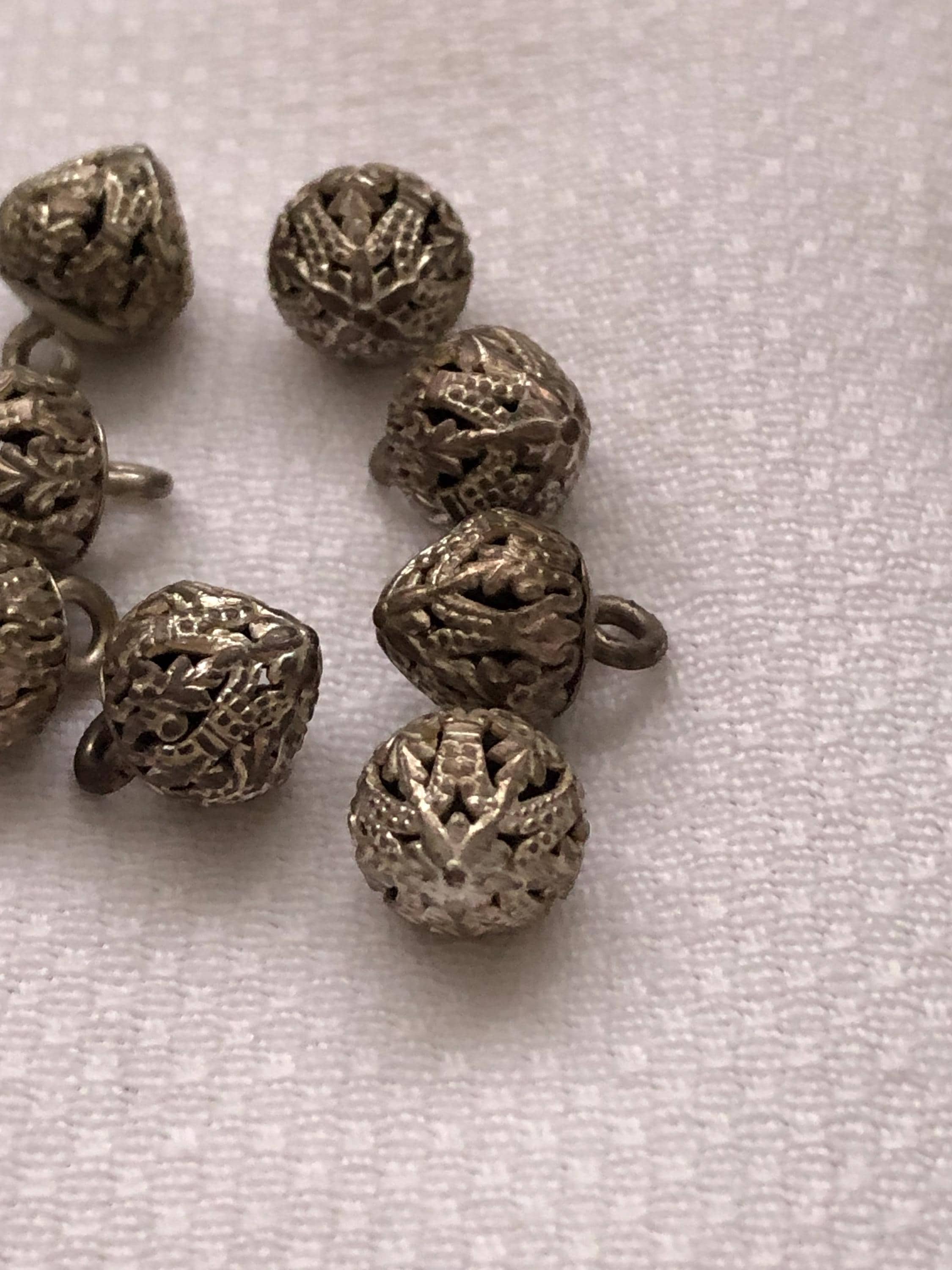 Here we have 11 silver colour filigree buttons