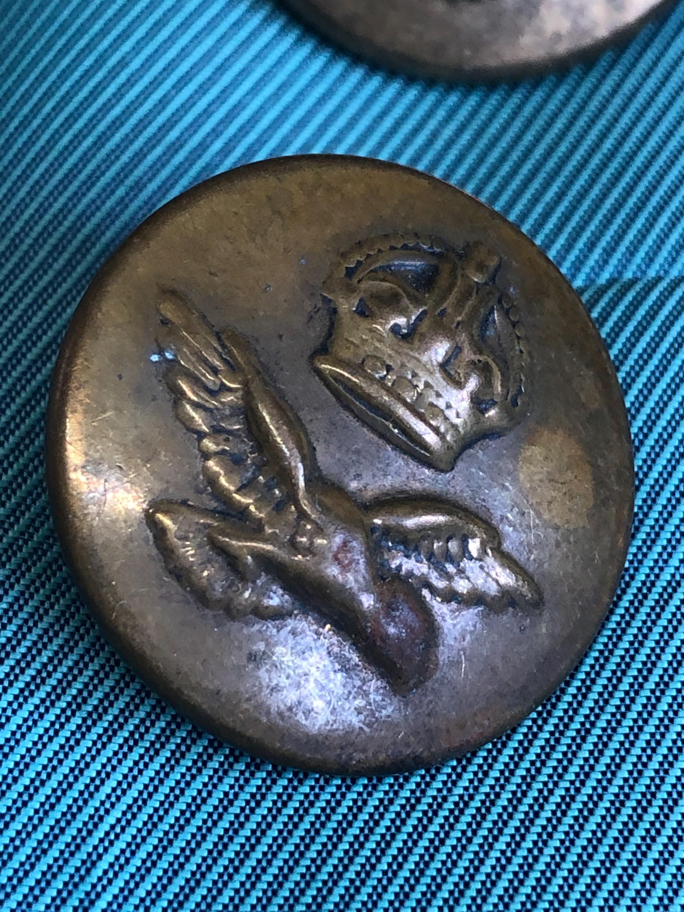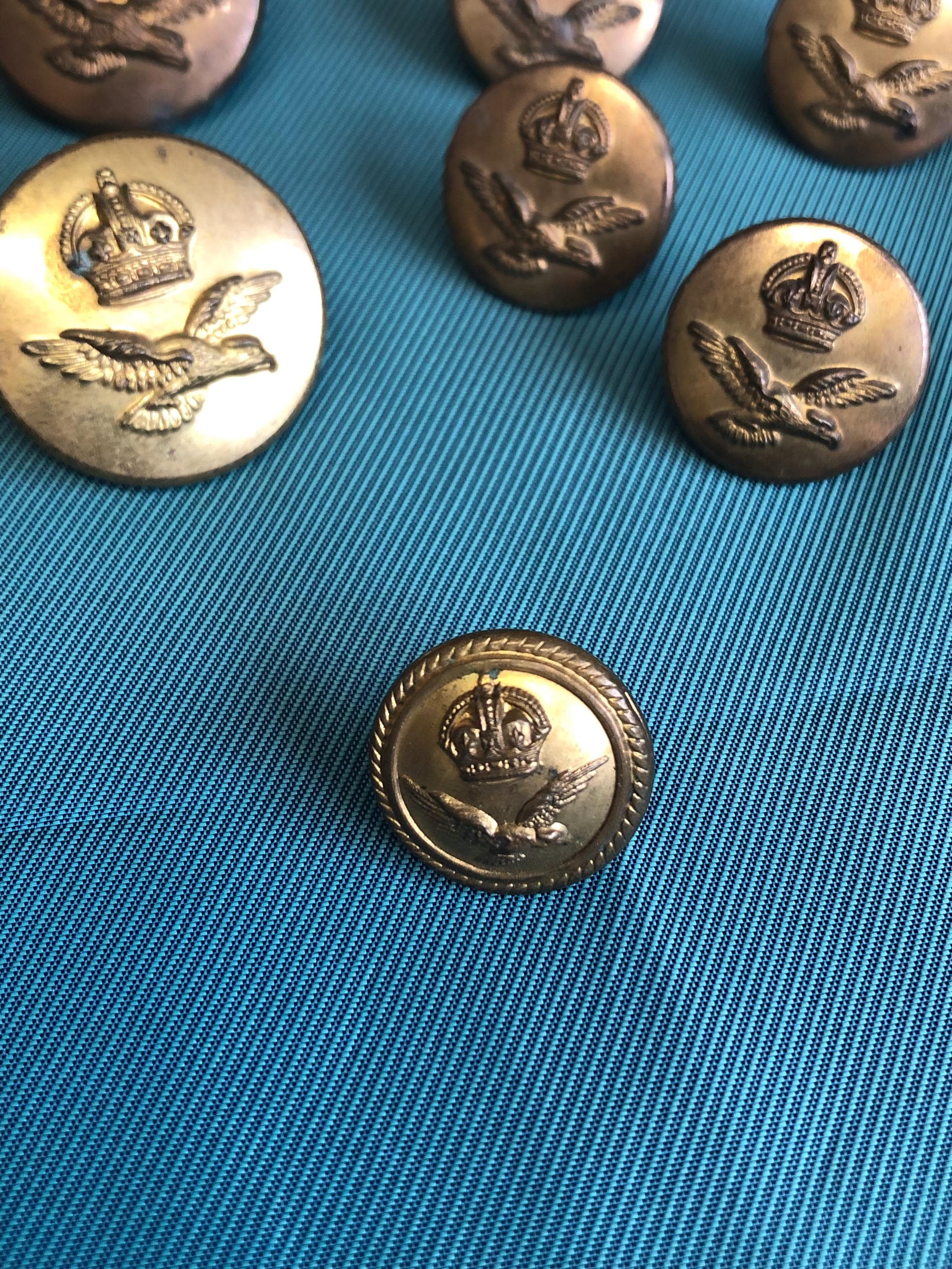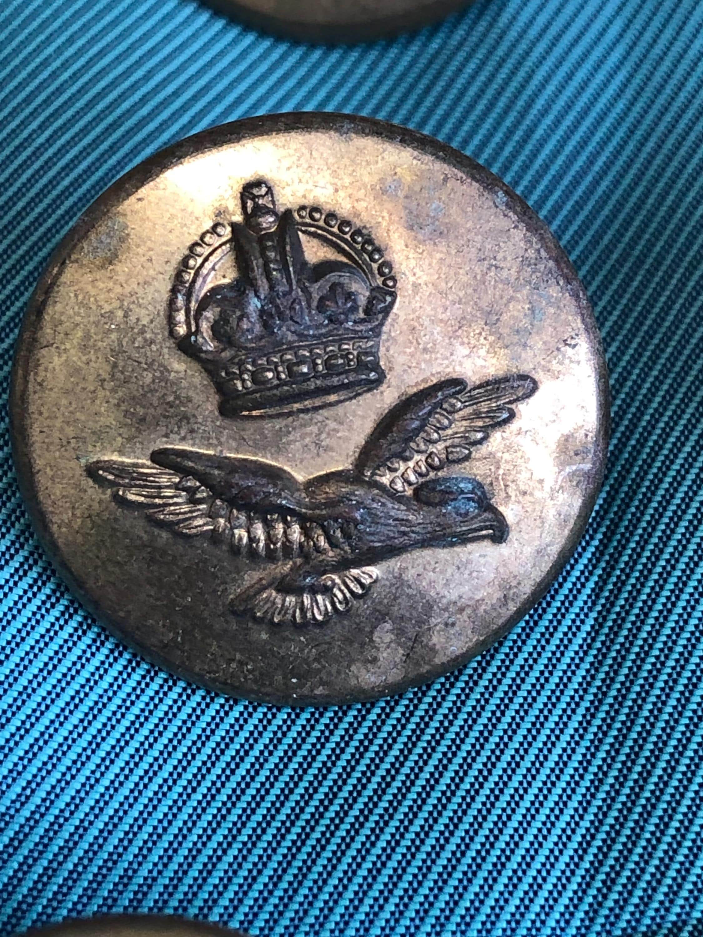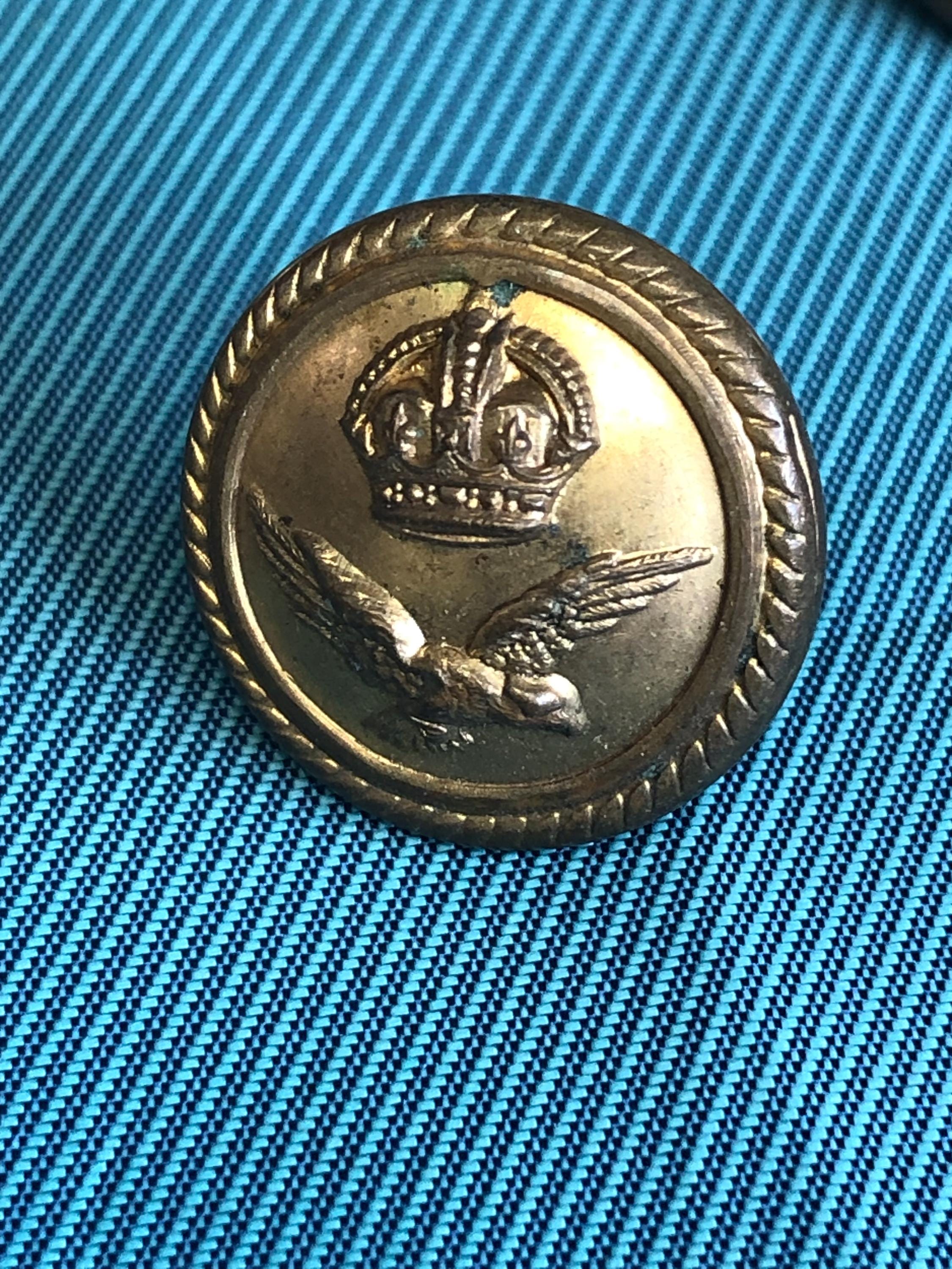 A rope around the edge of the RAF button signifies that it was originally used in the Royal Navy Air Force which was the precursor to the RAF. These buttons were used until 1921 when all buttons had the smooth edge.