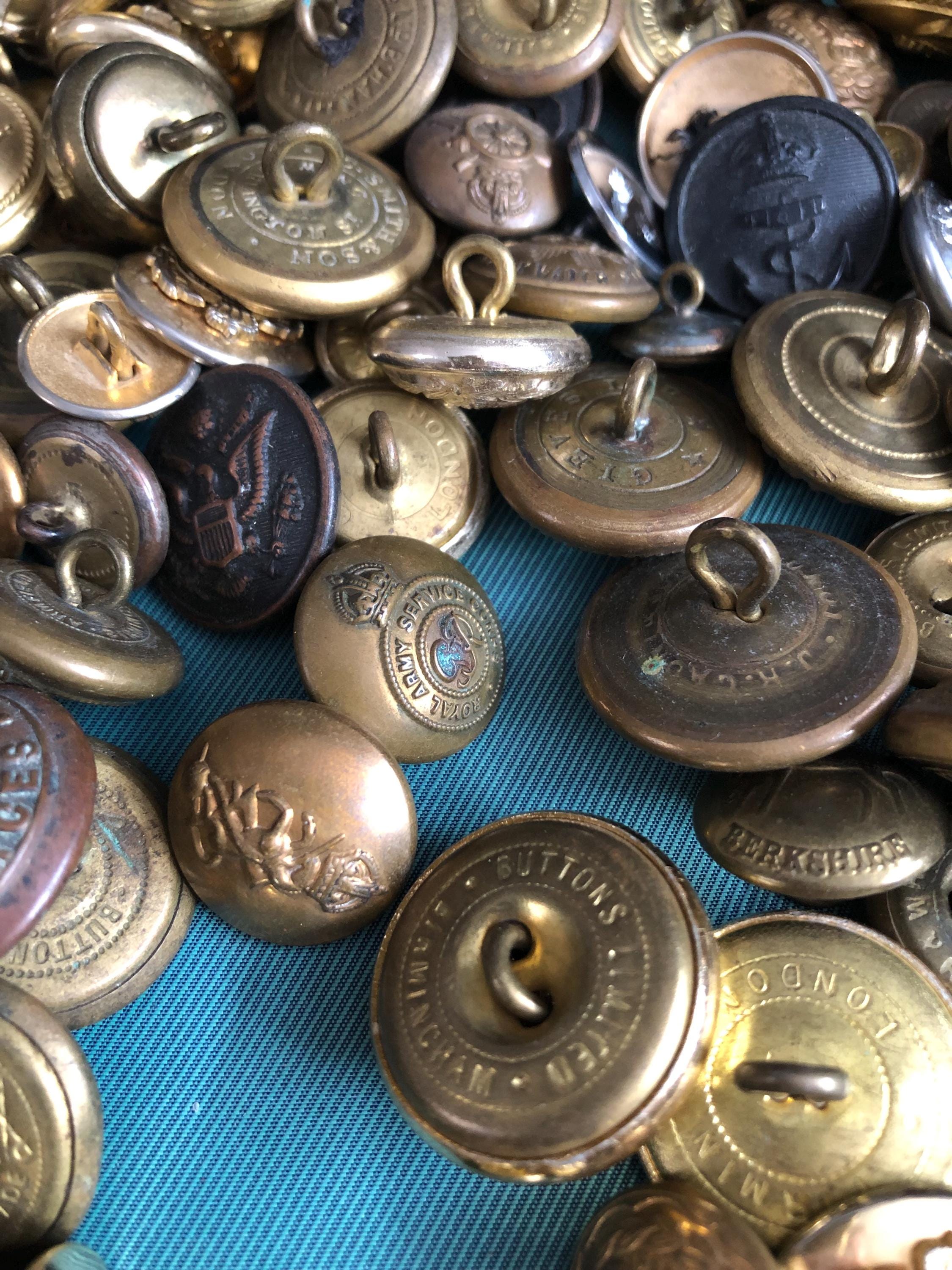 These are original vintage military brass buttons. (Mainly brass a few bakelite)