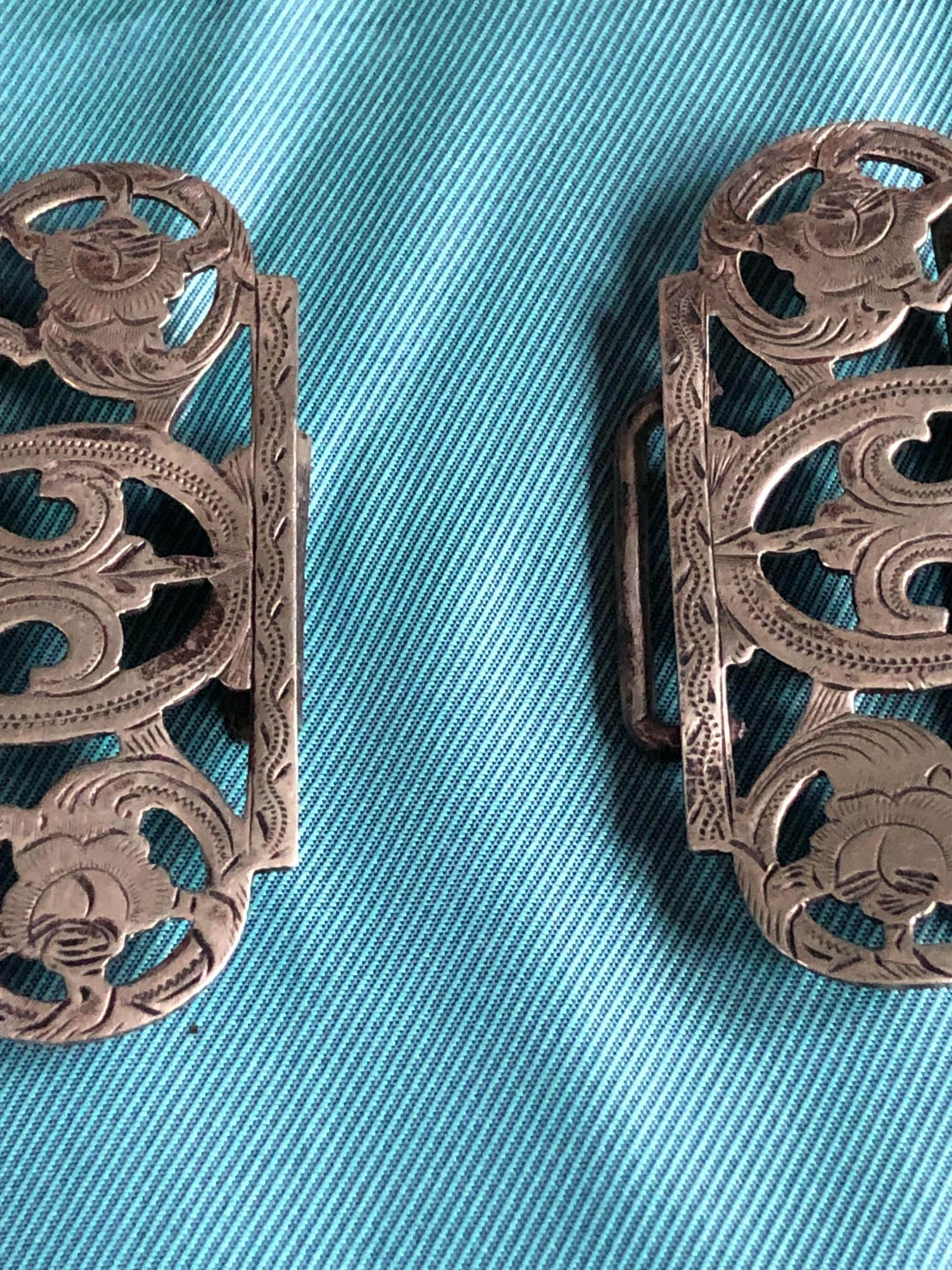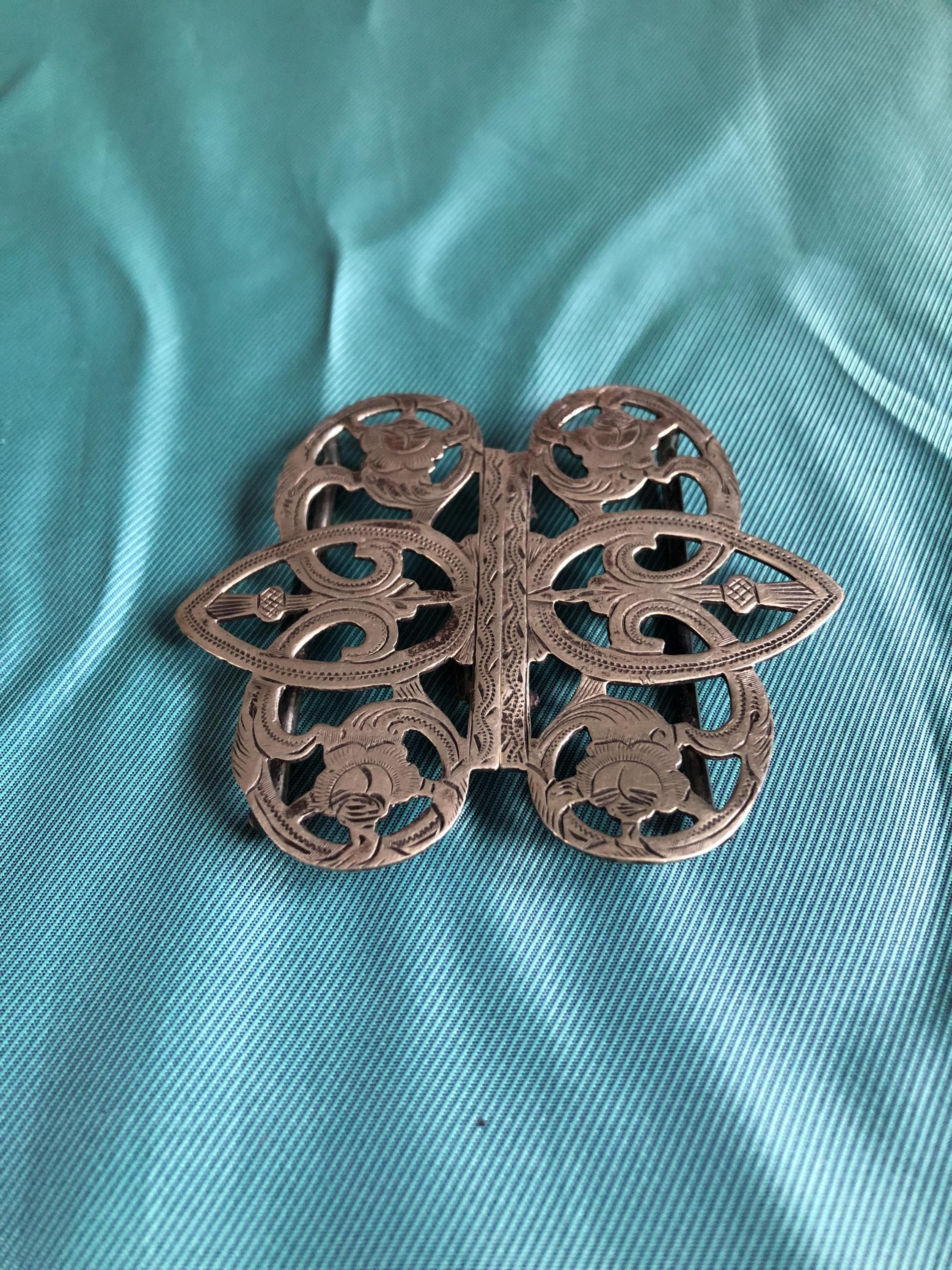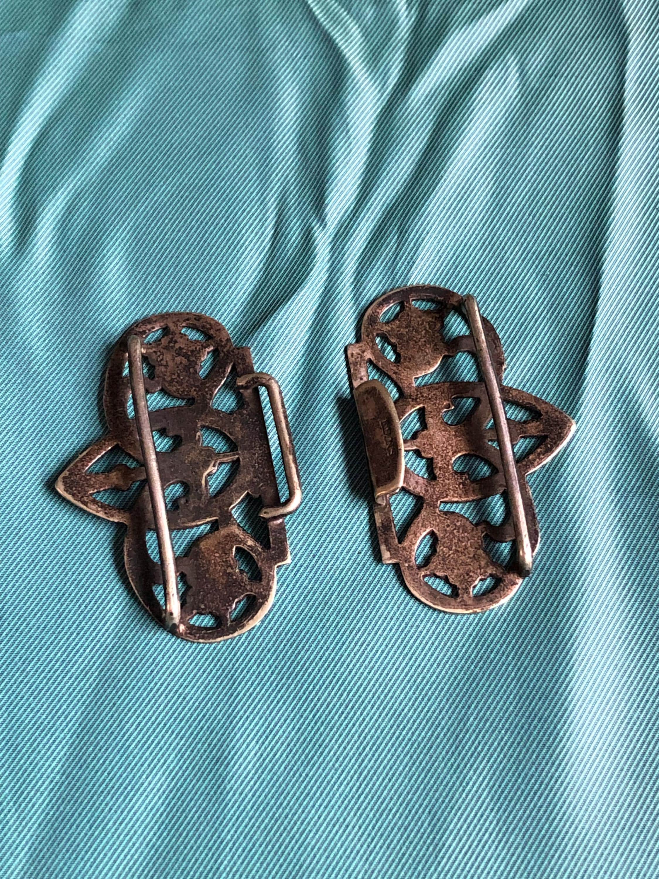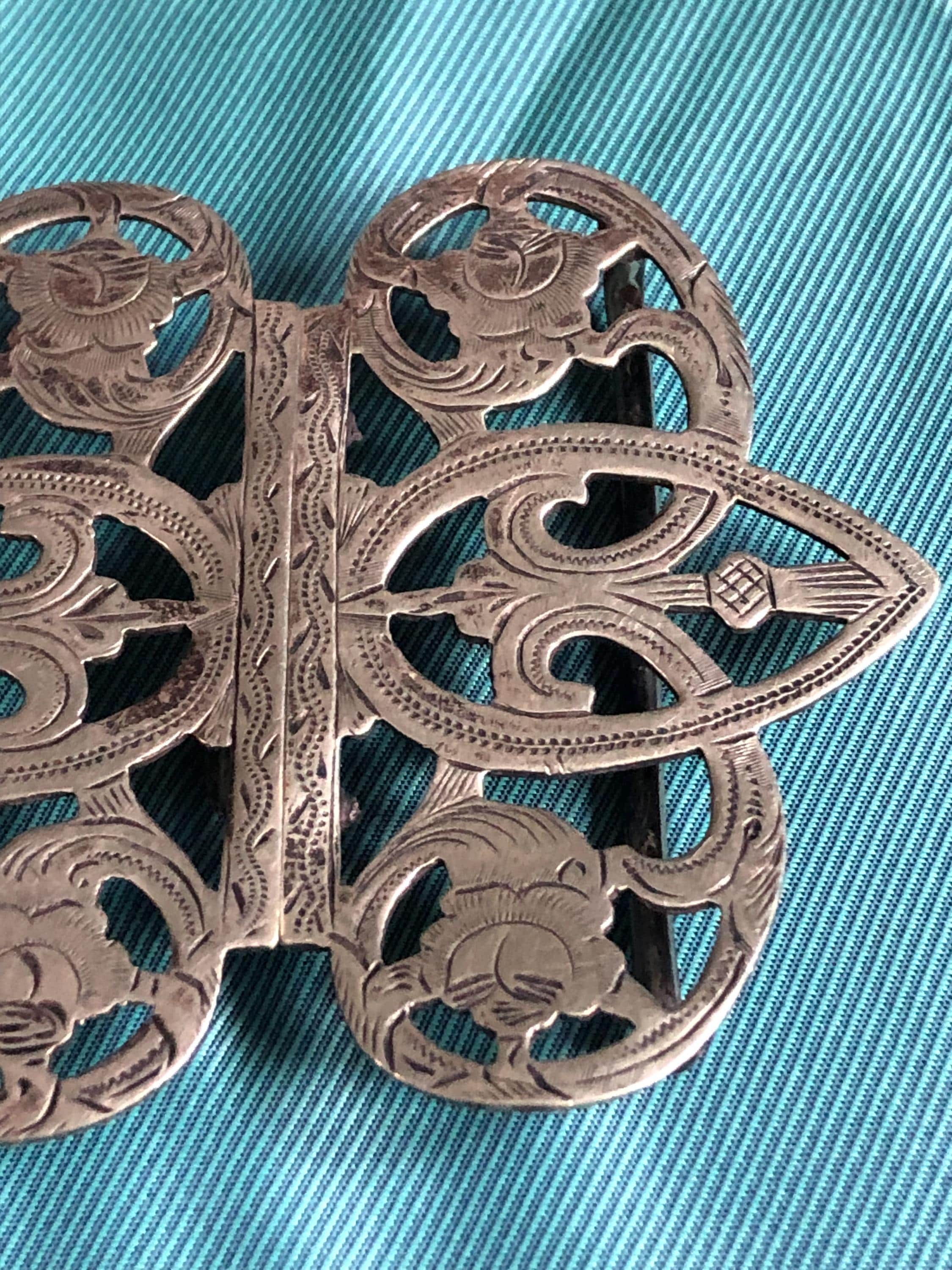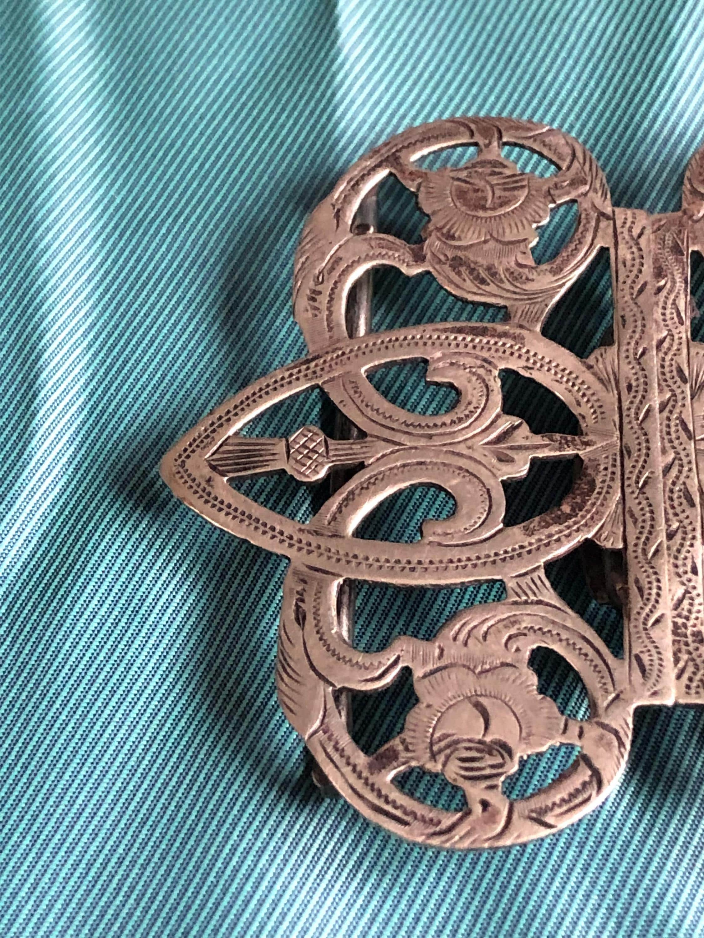 This is an Edwardian silver plated (EPNS) nurses buckle 1901-1914 Art Nouveau design - showing a thistle on each half.