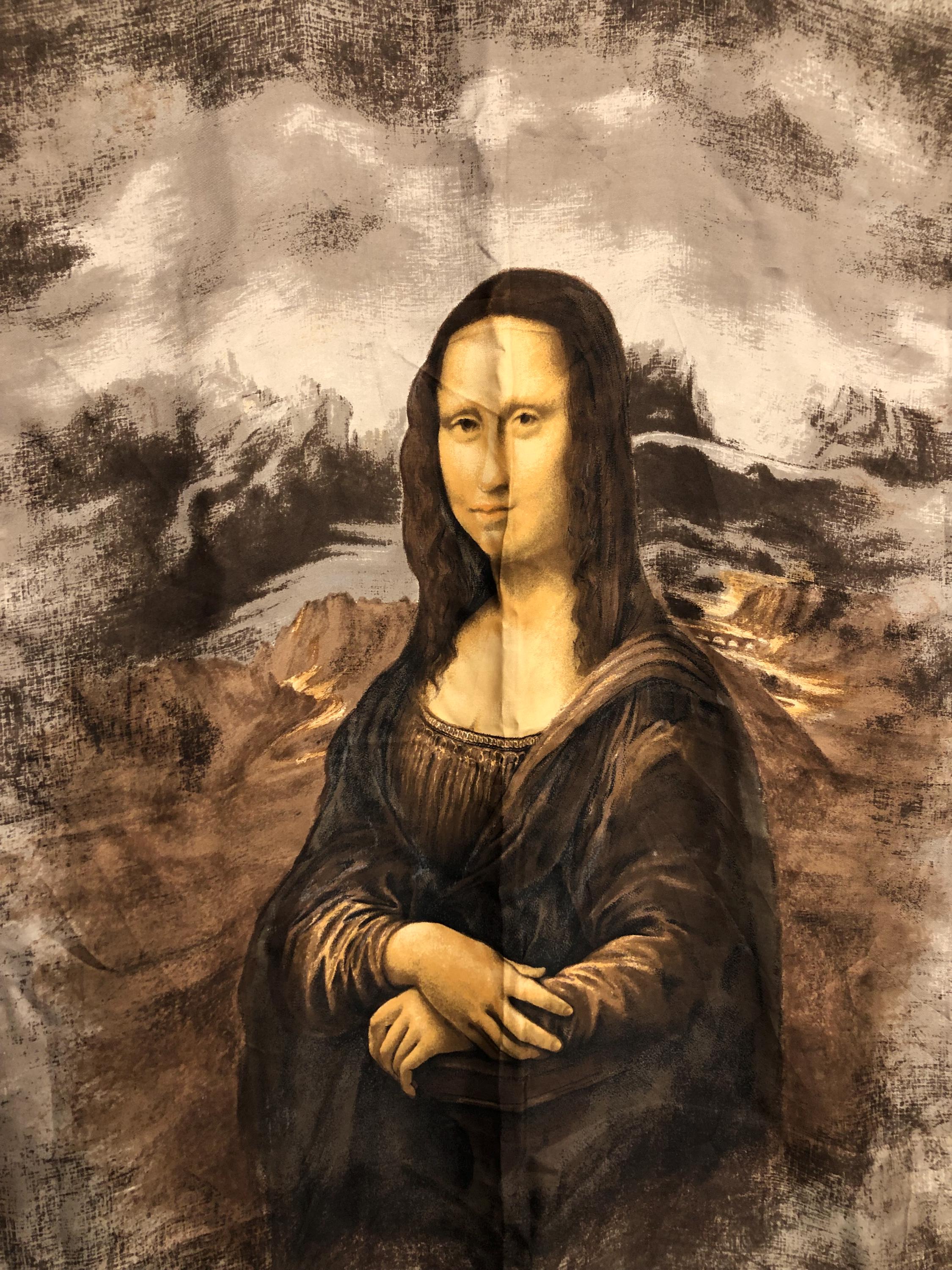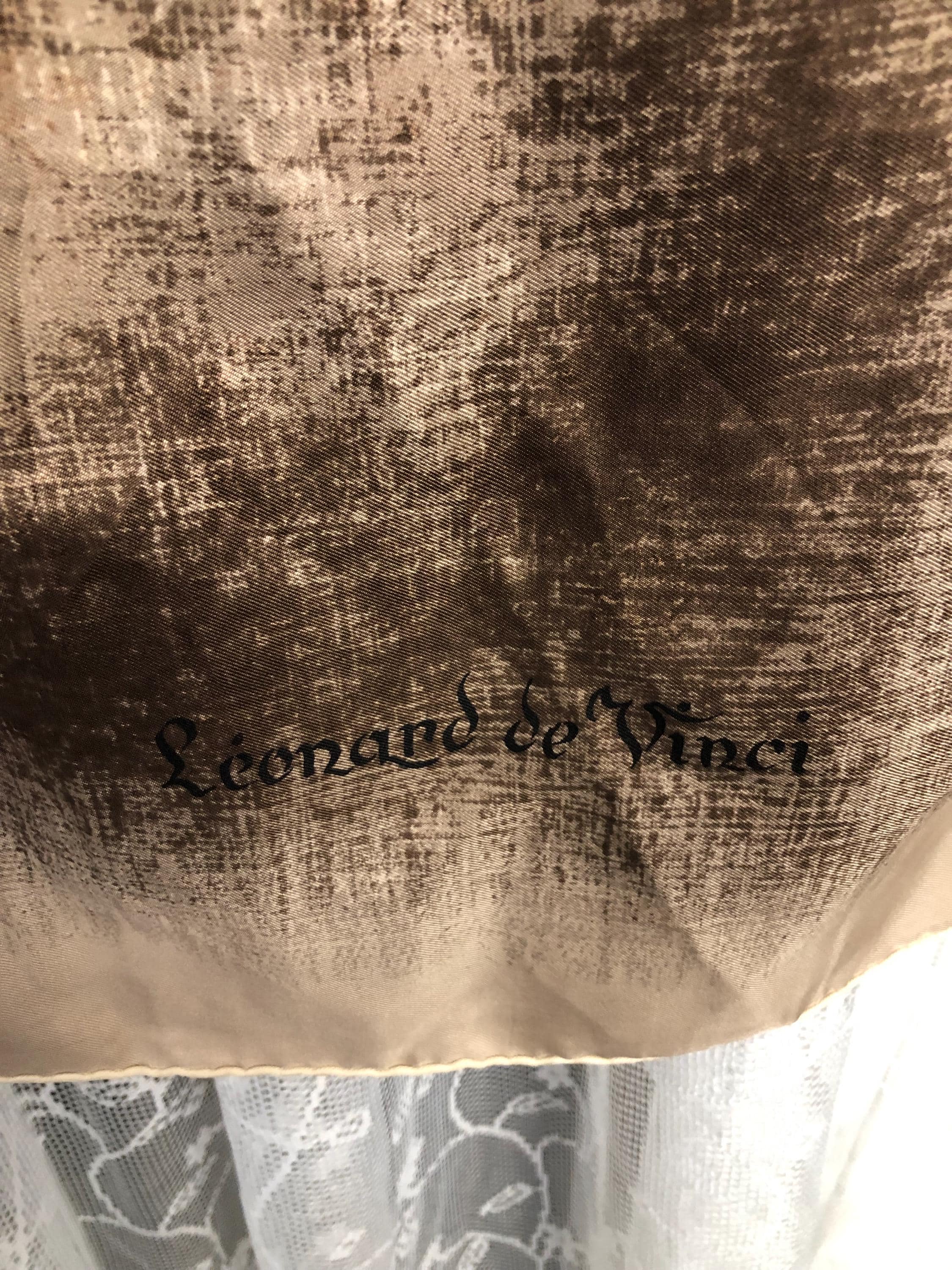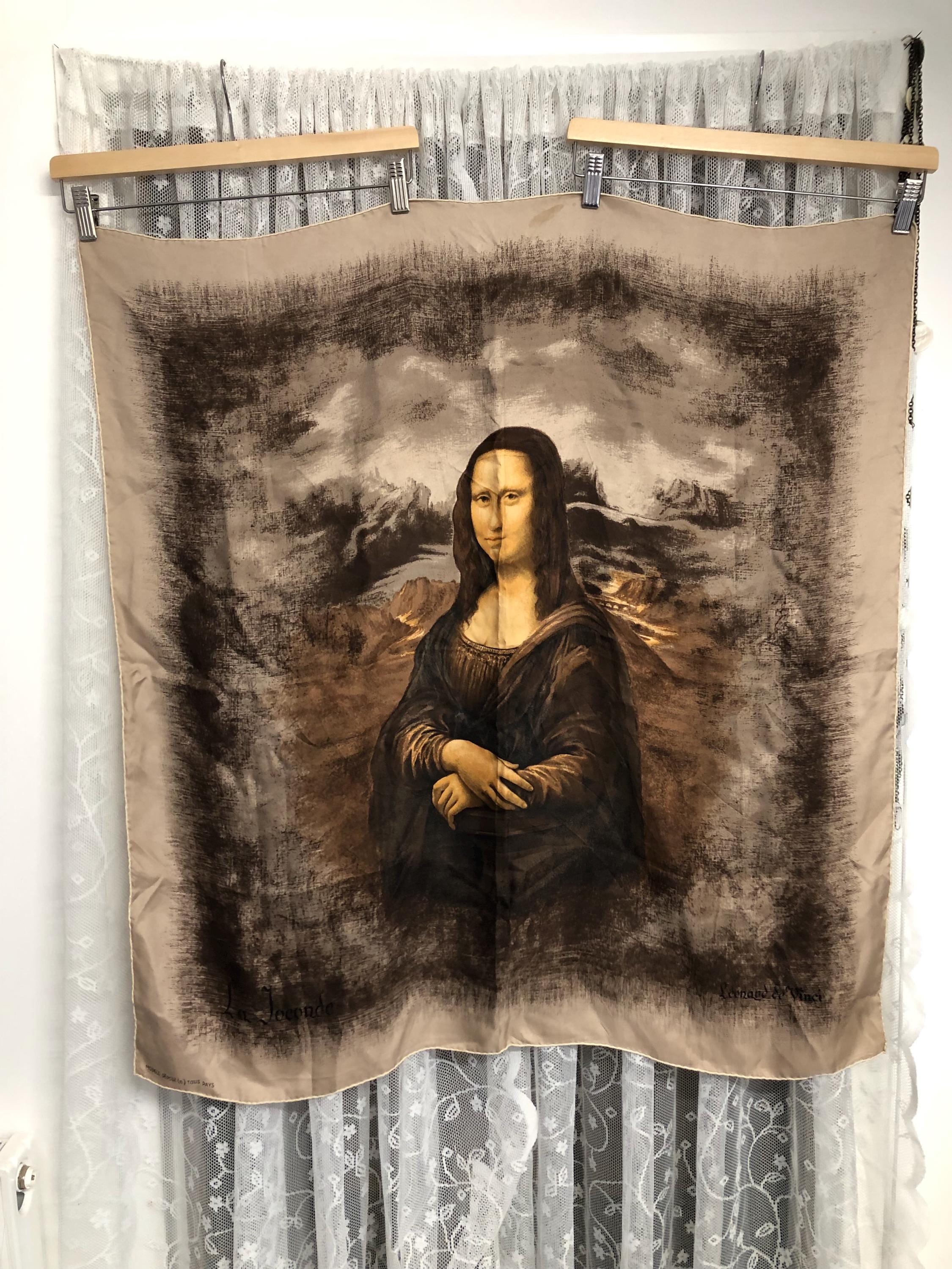 Here we have a vintage silk scarf of the Mona Lisa, by Leonard De Vinci.