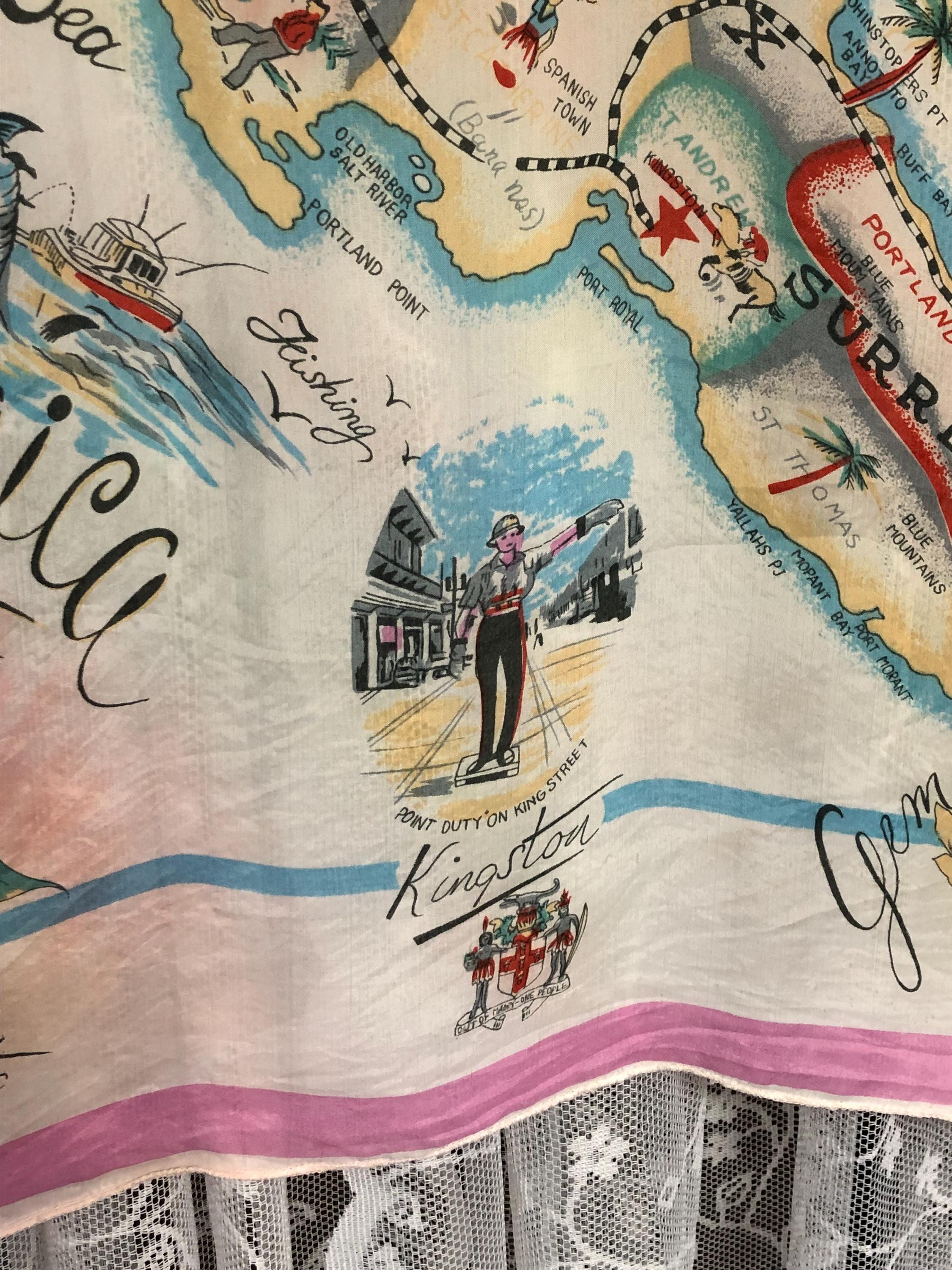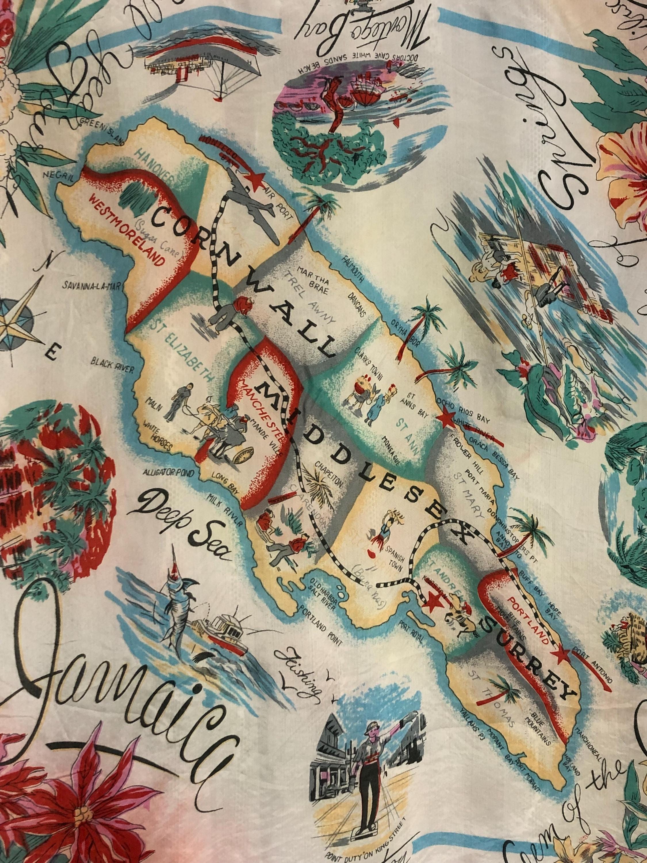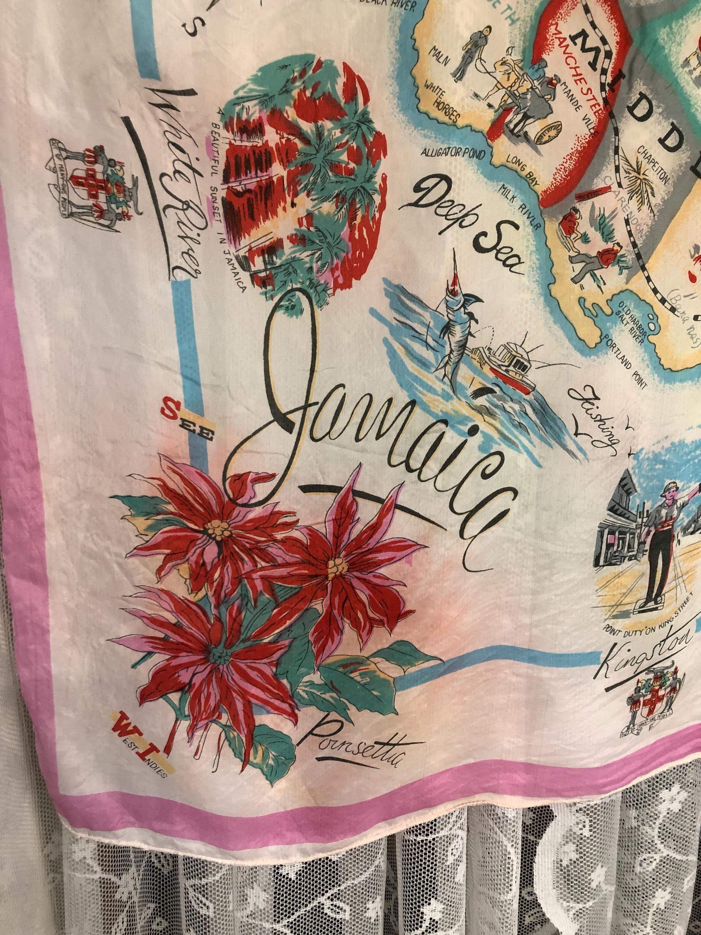 Here we have what I think is a silk scarf, the graphics are of Jamaica