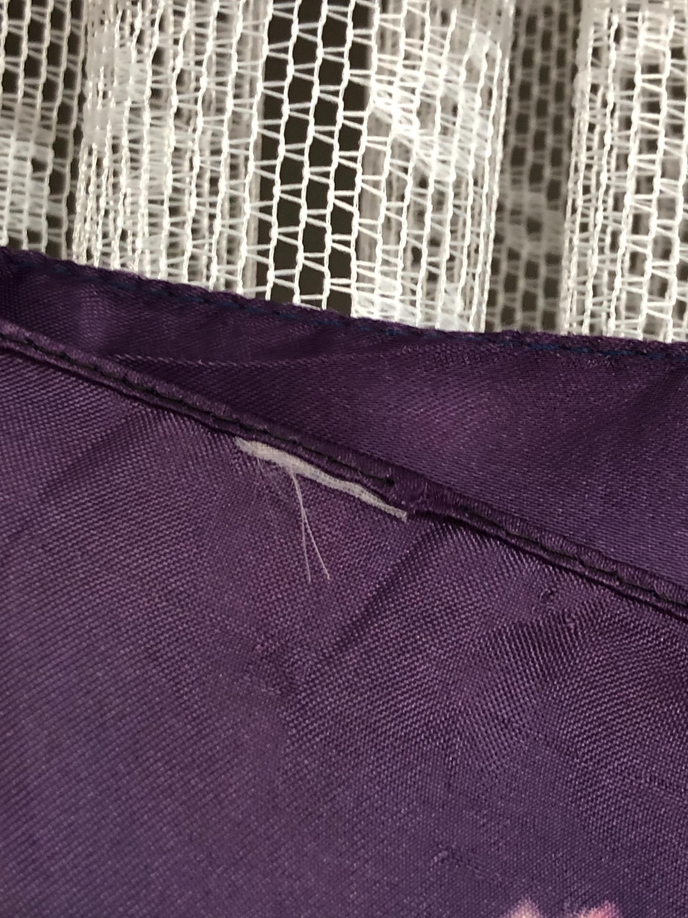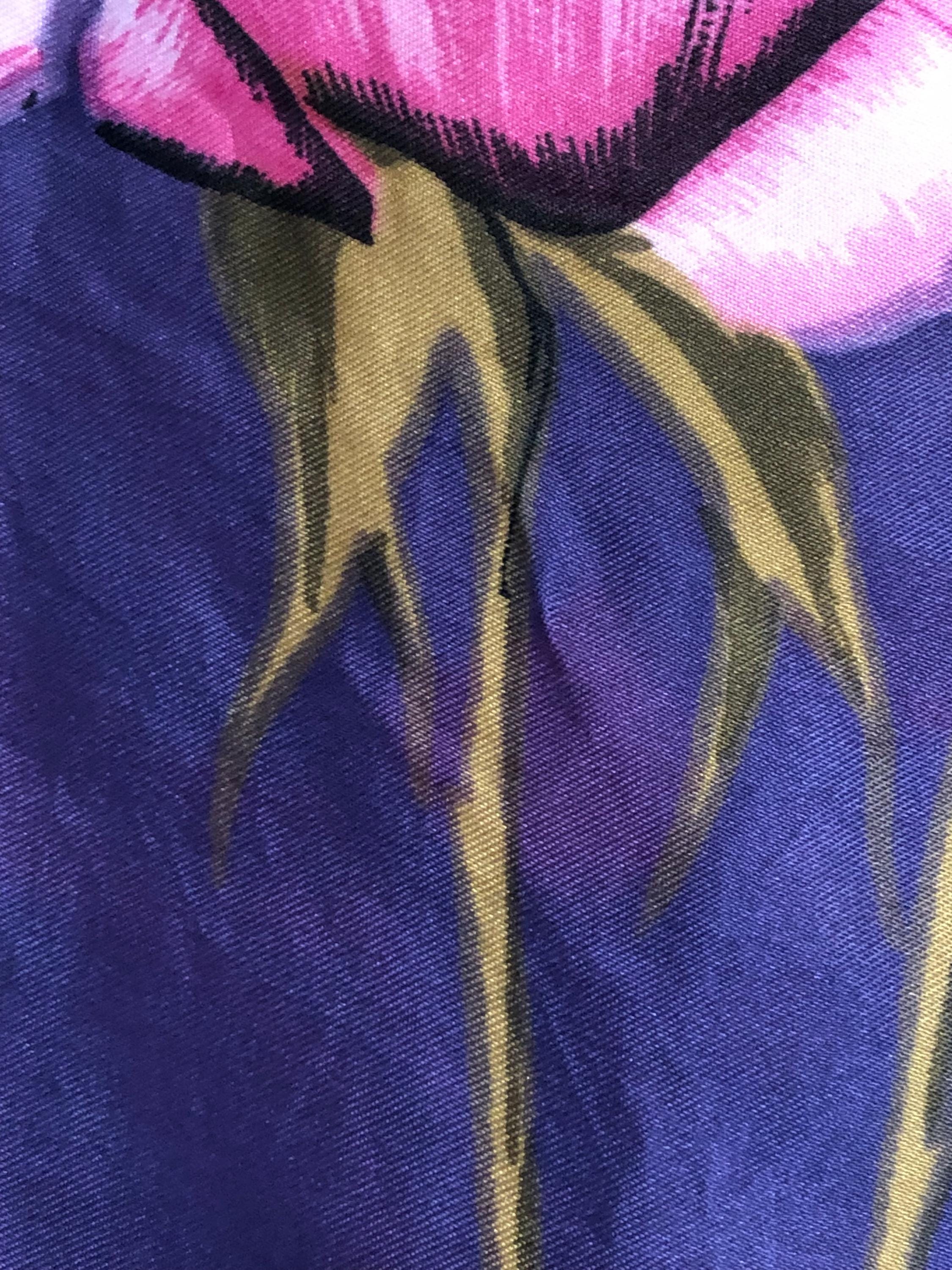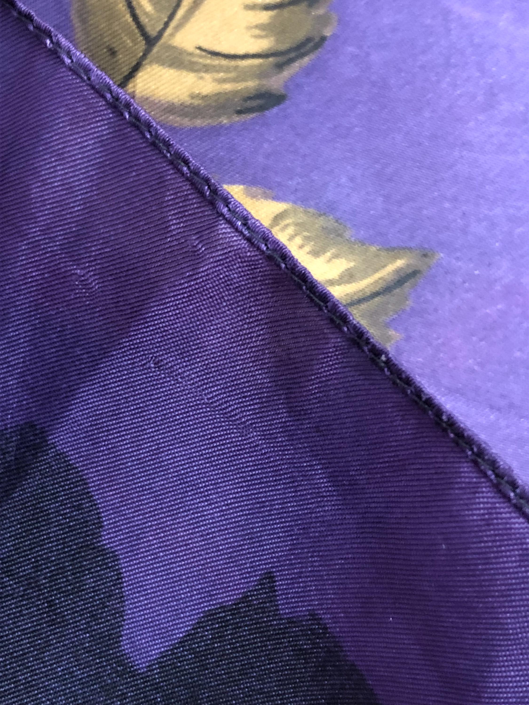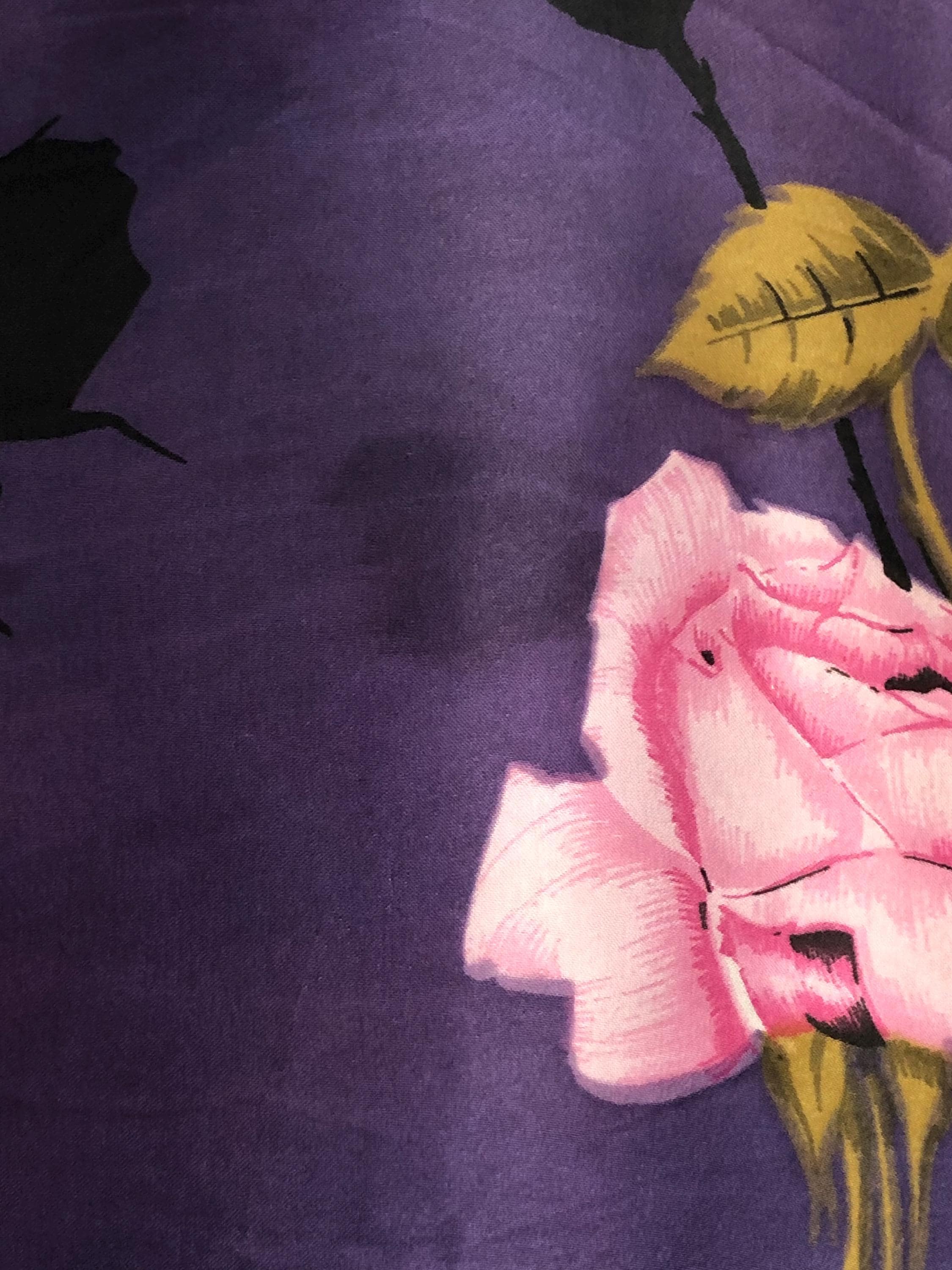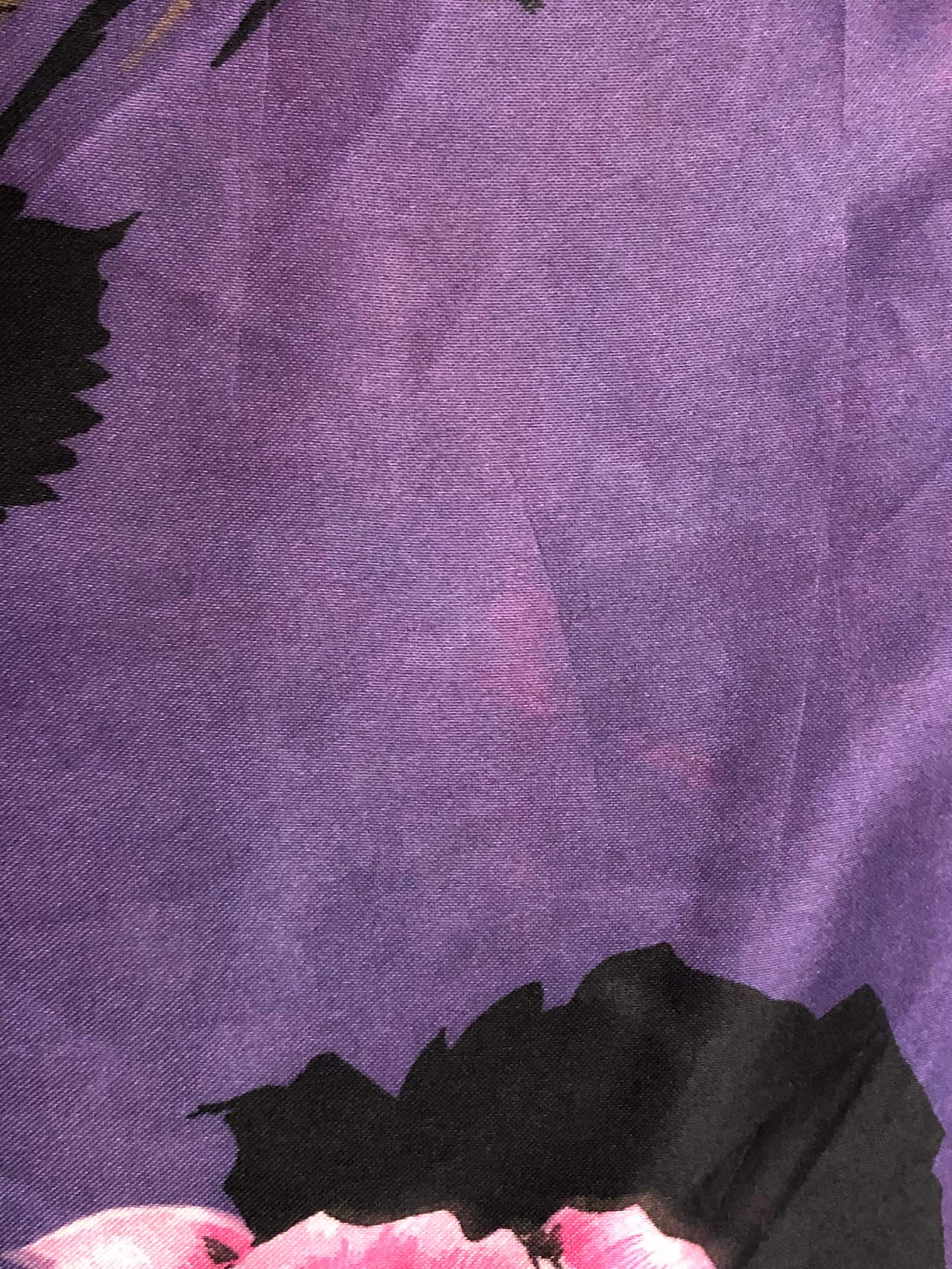 Here we have a vintage satin or rayon ladies scarf in deep purple with pink roses.