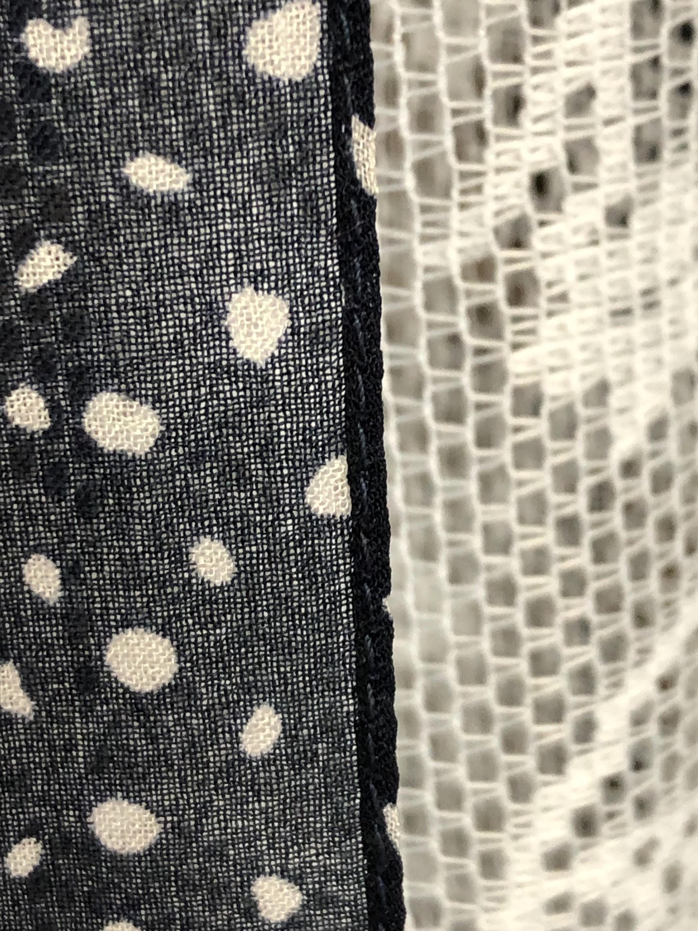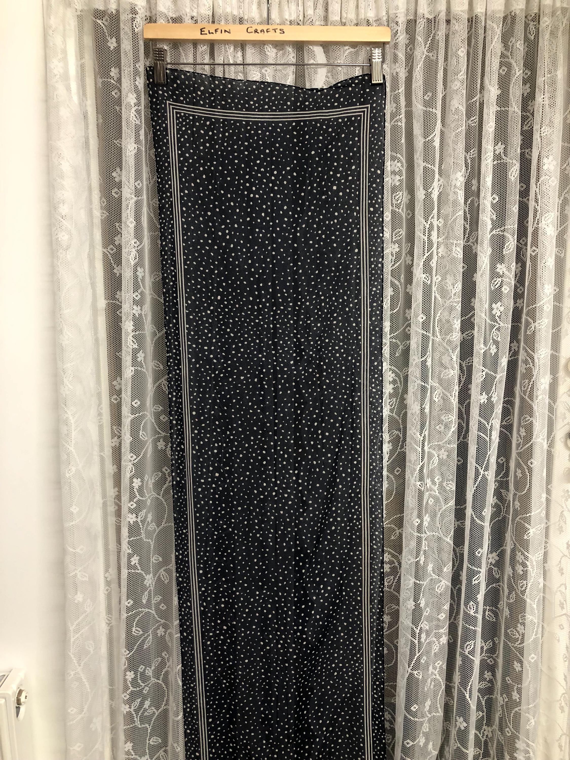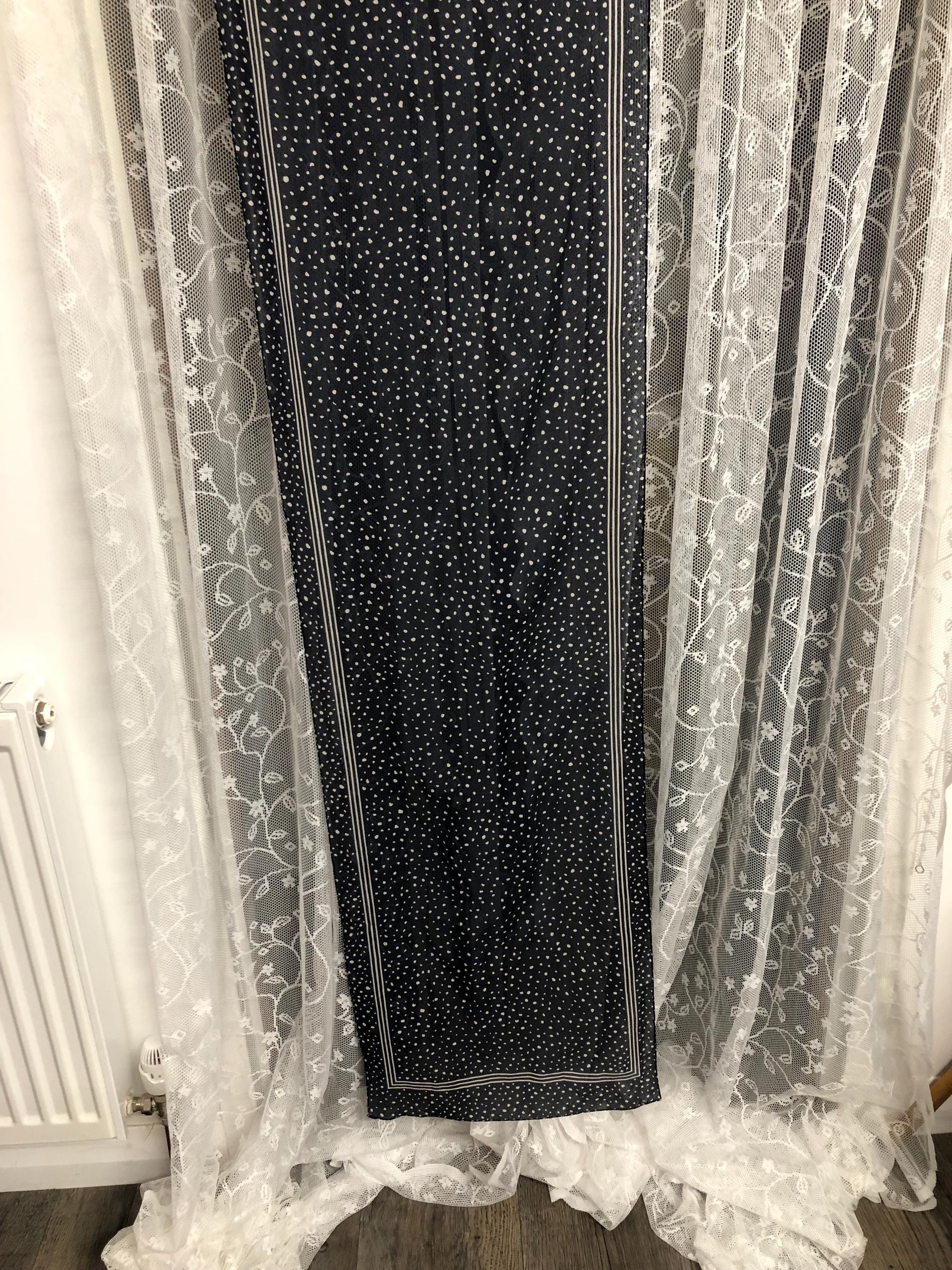 Here we have a vintage polyester chiffon ladies scarf in navy and cream