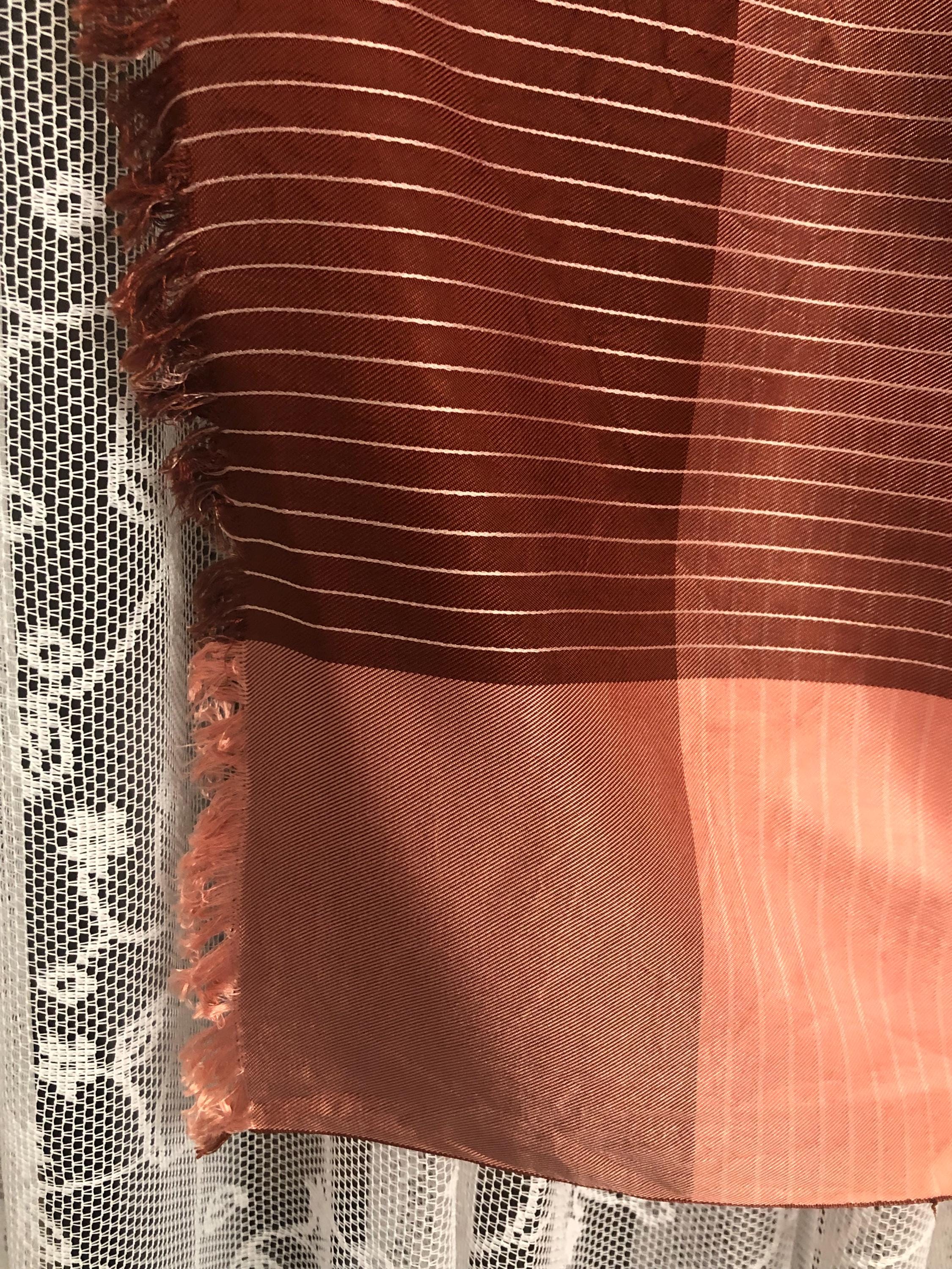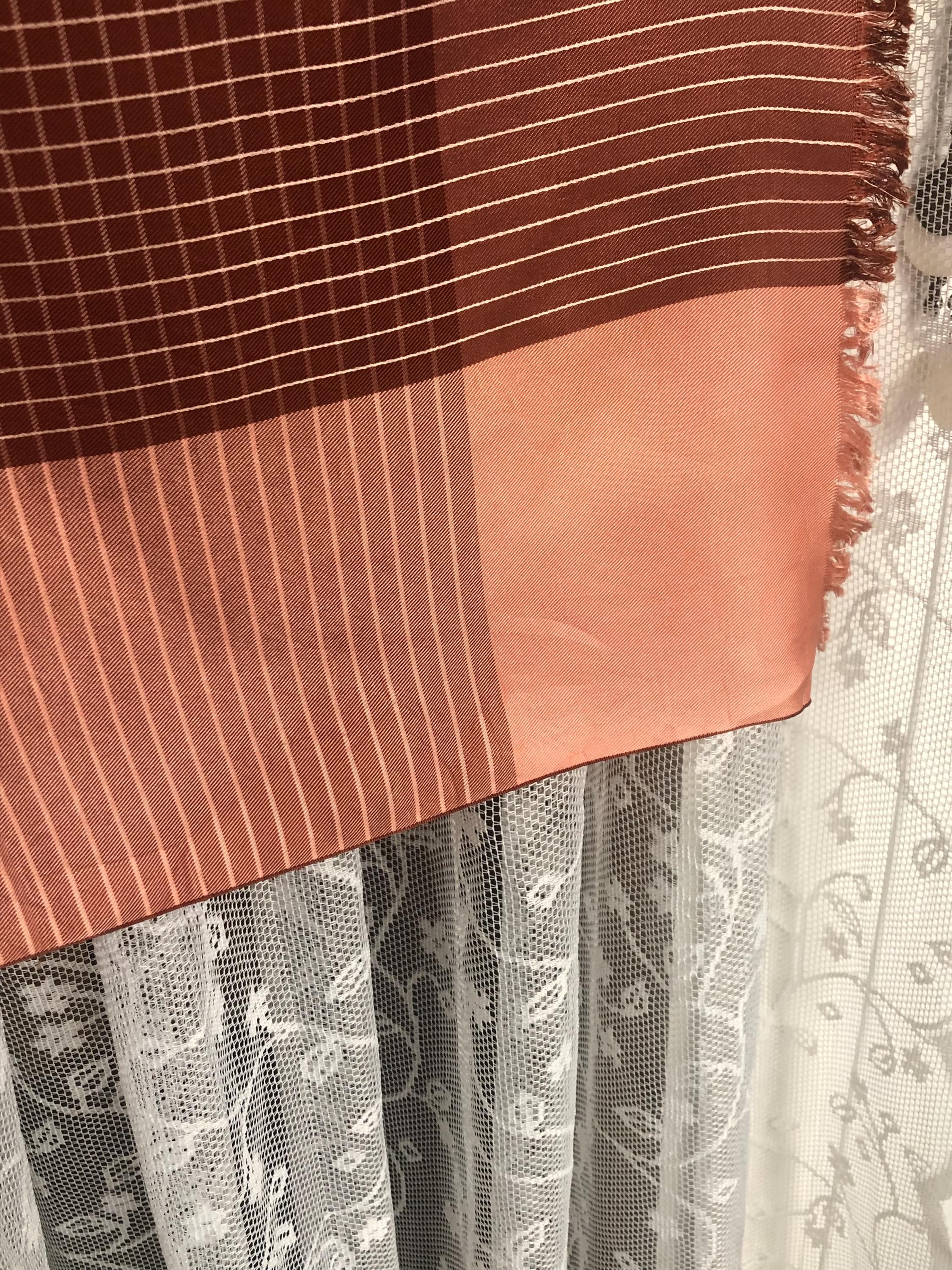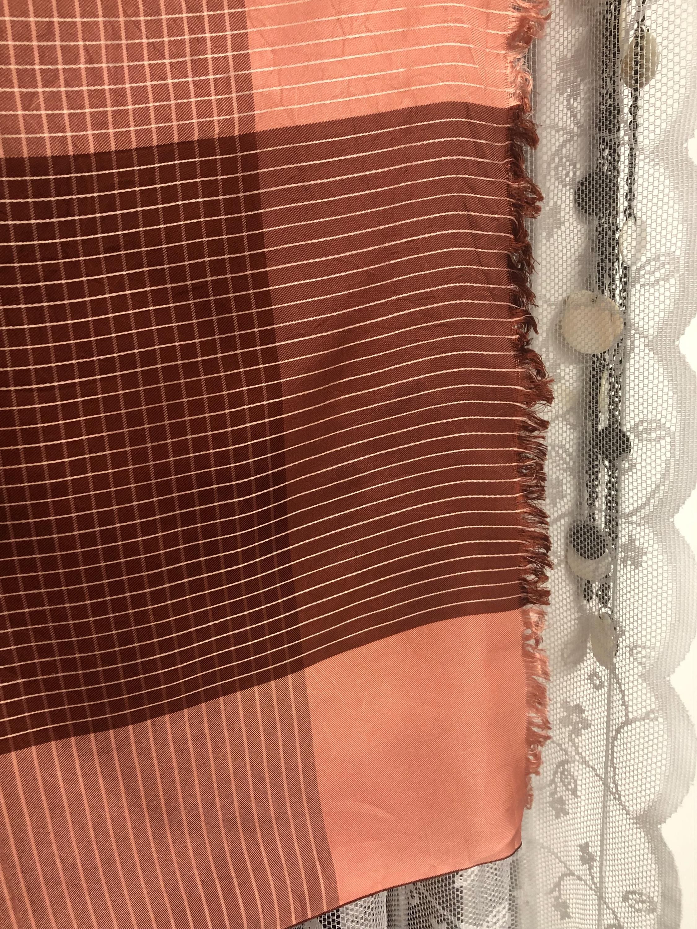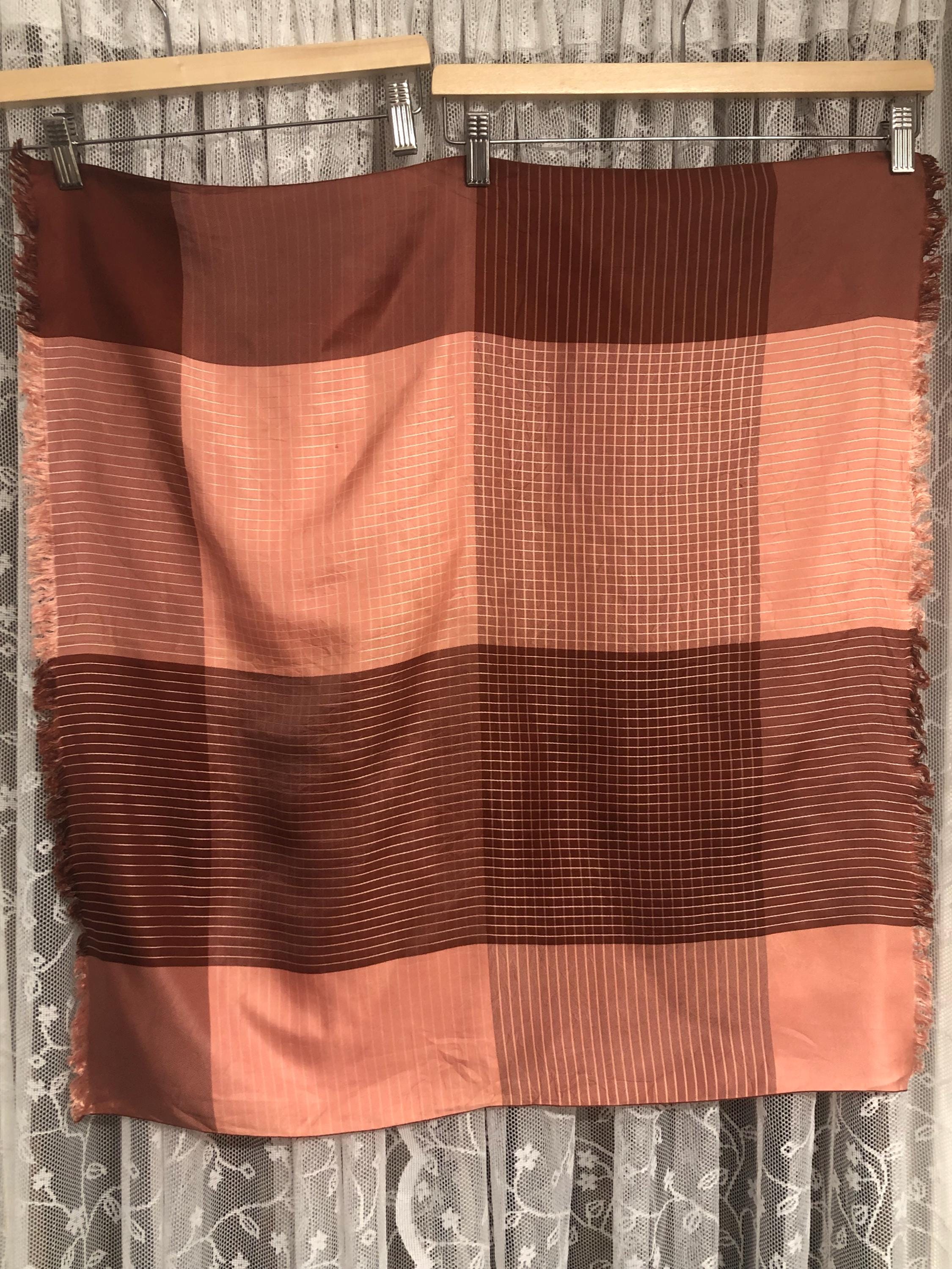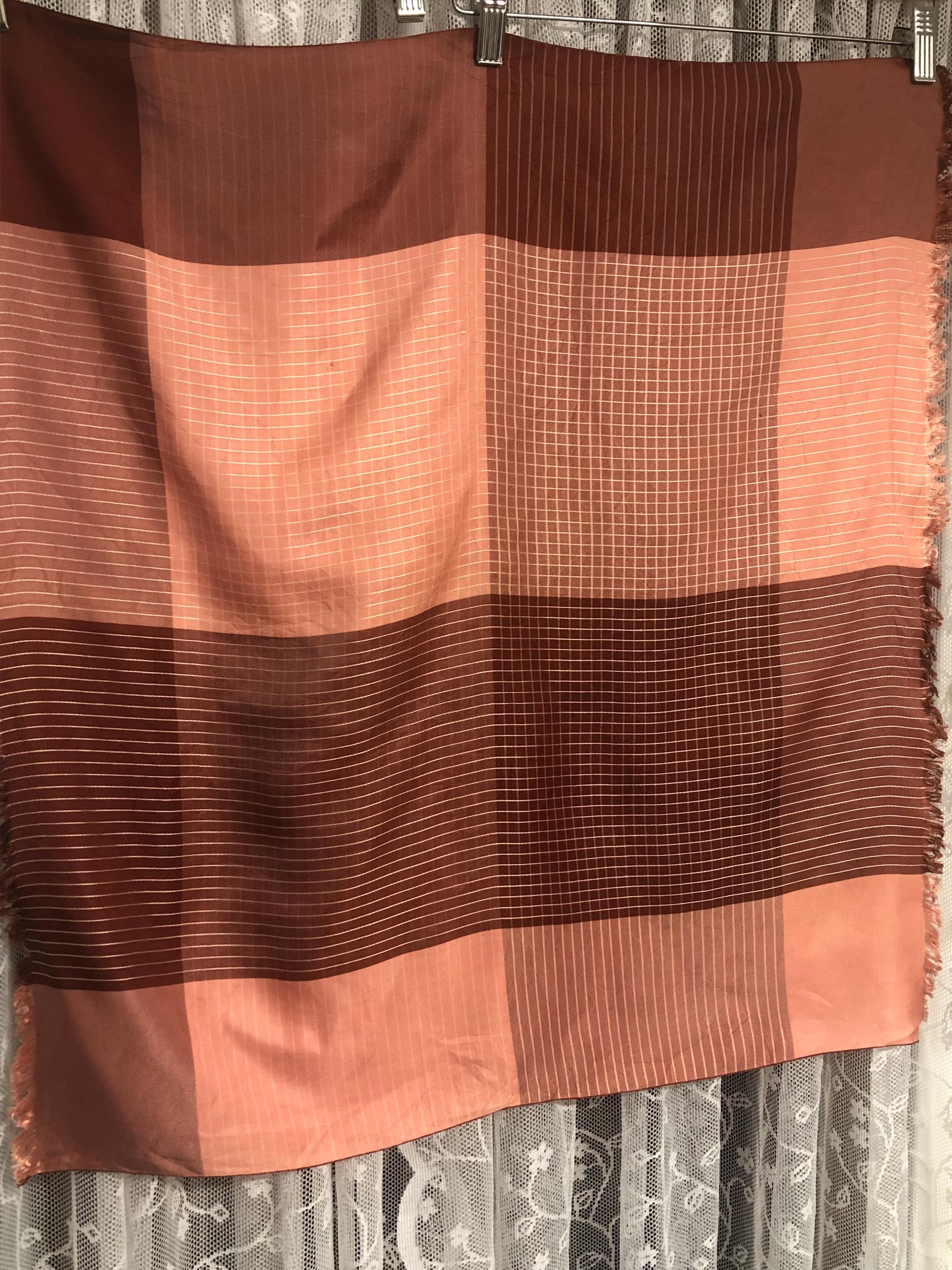 Here we have a vintage ladies scarf in shades of salmon through to brown
