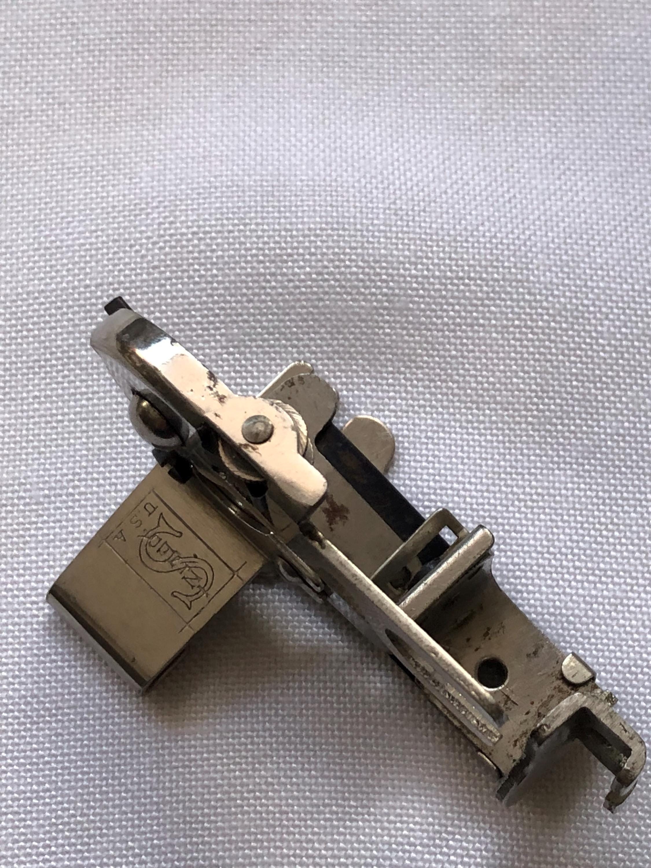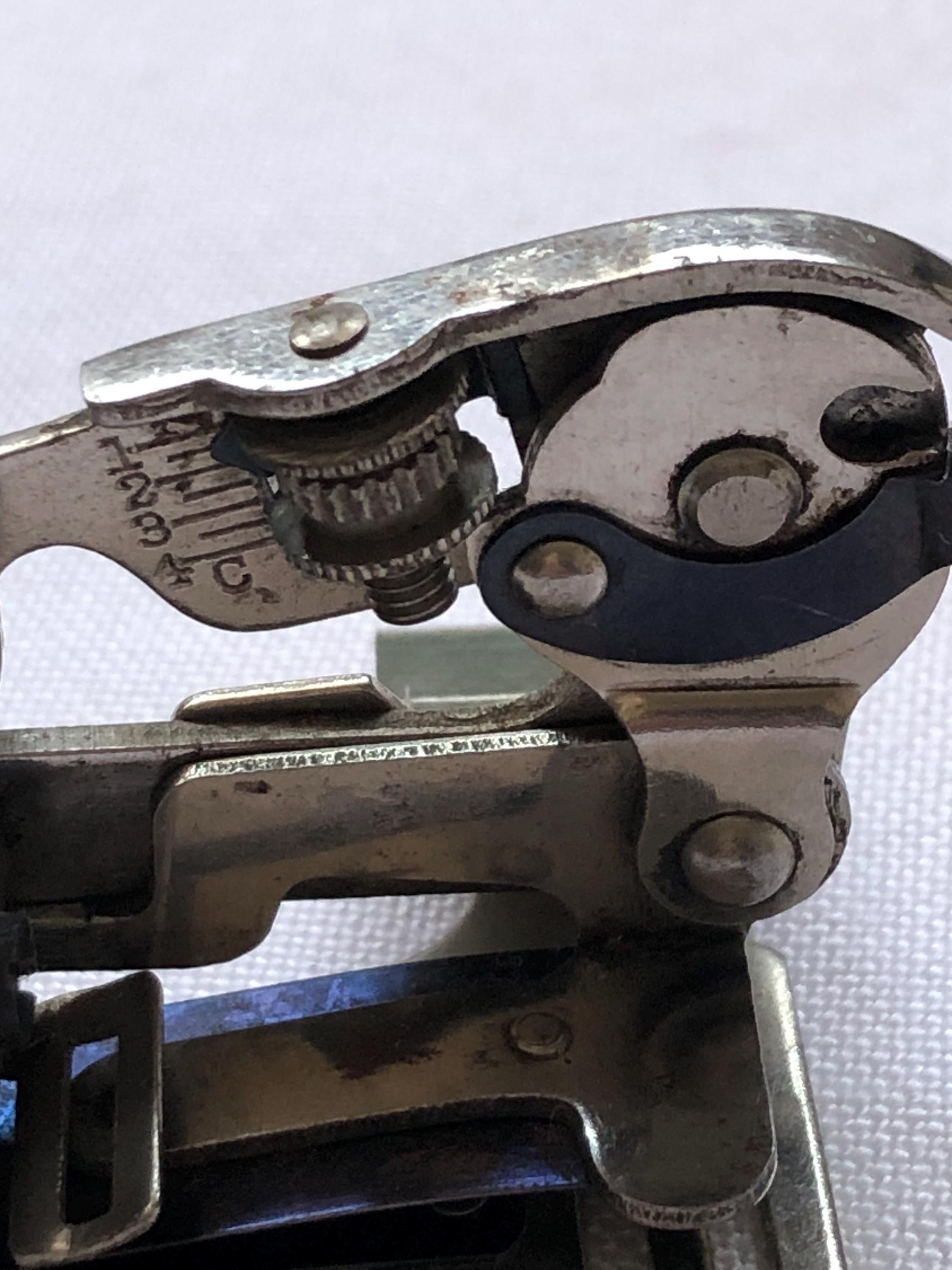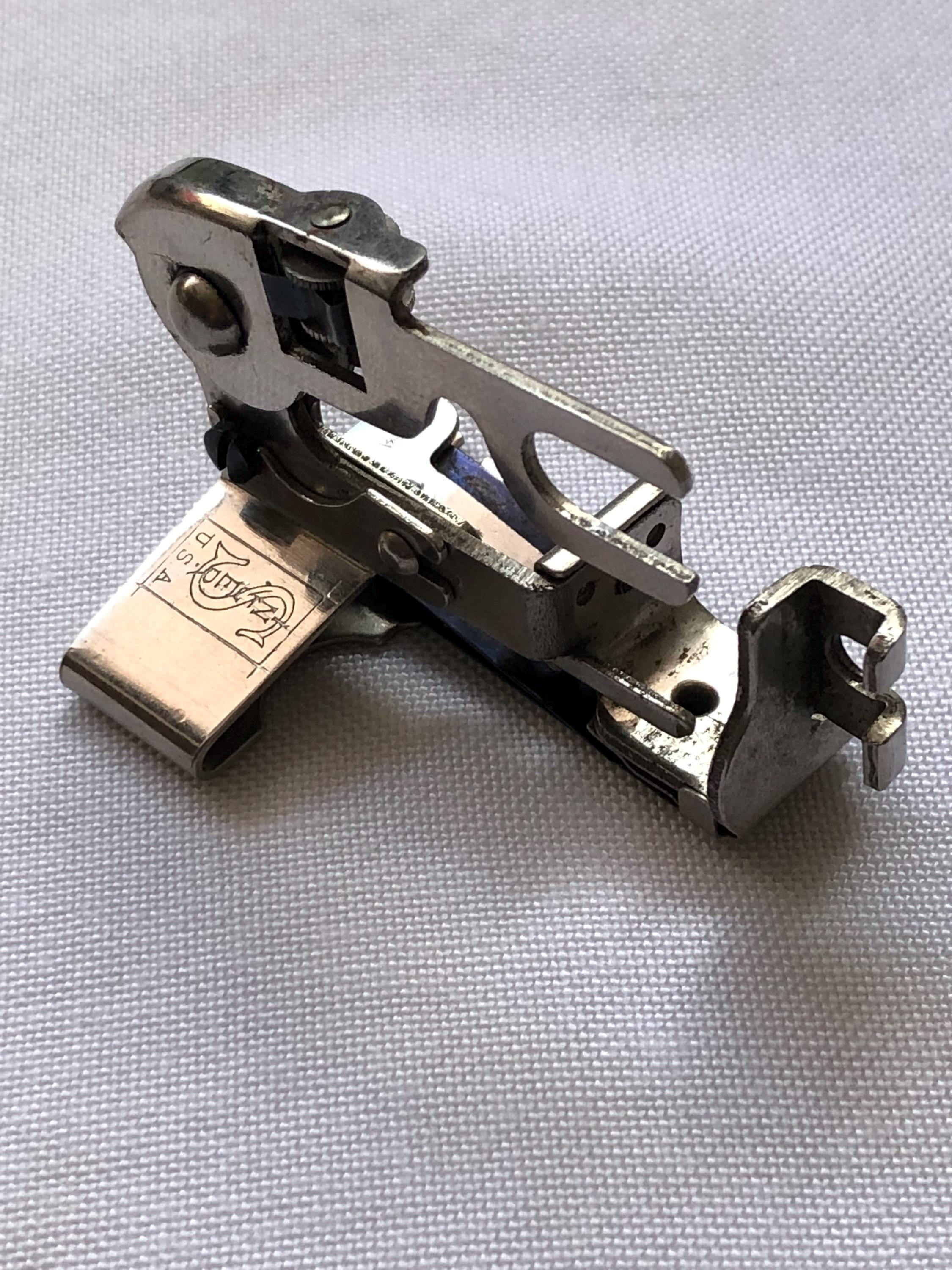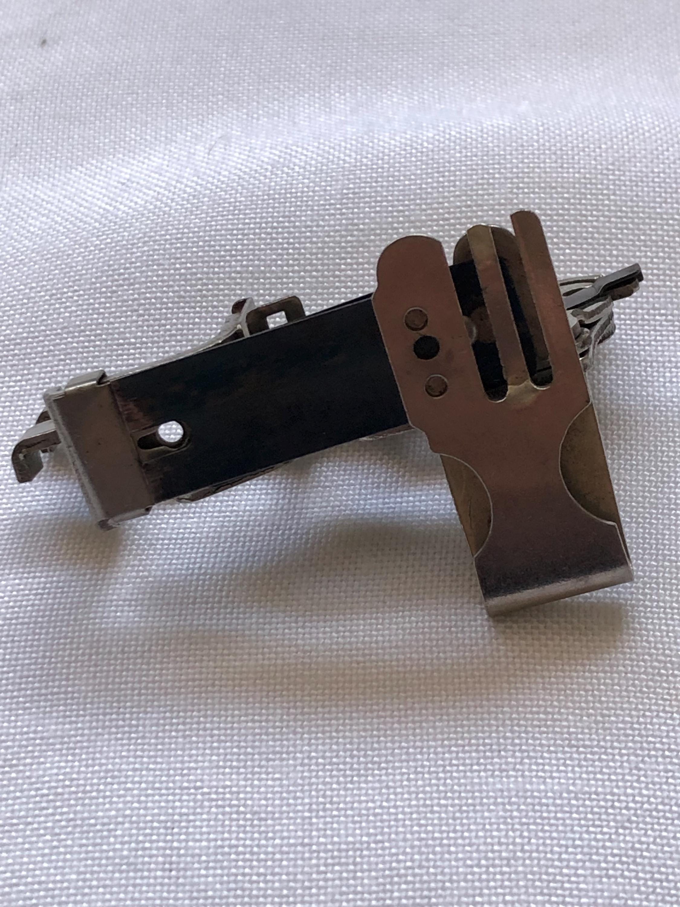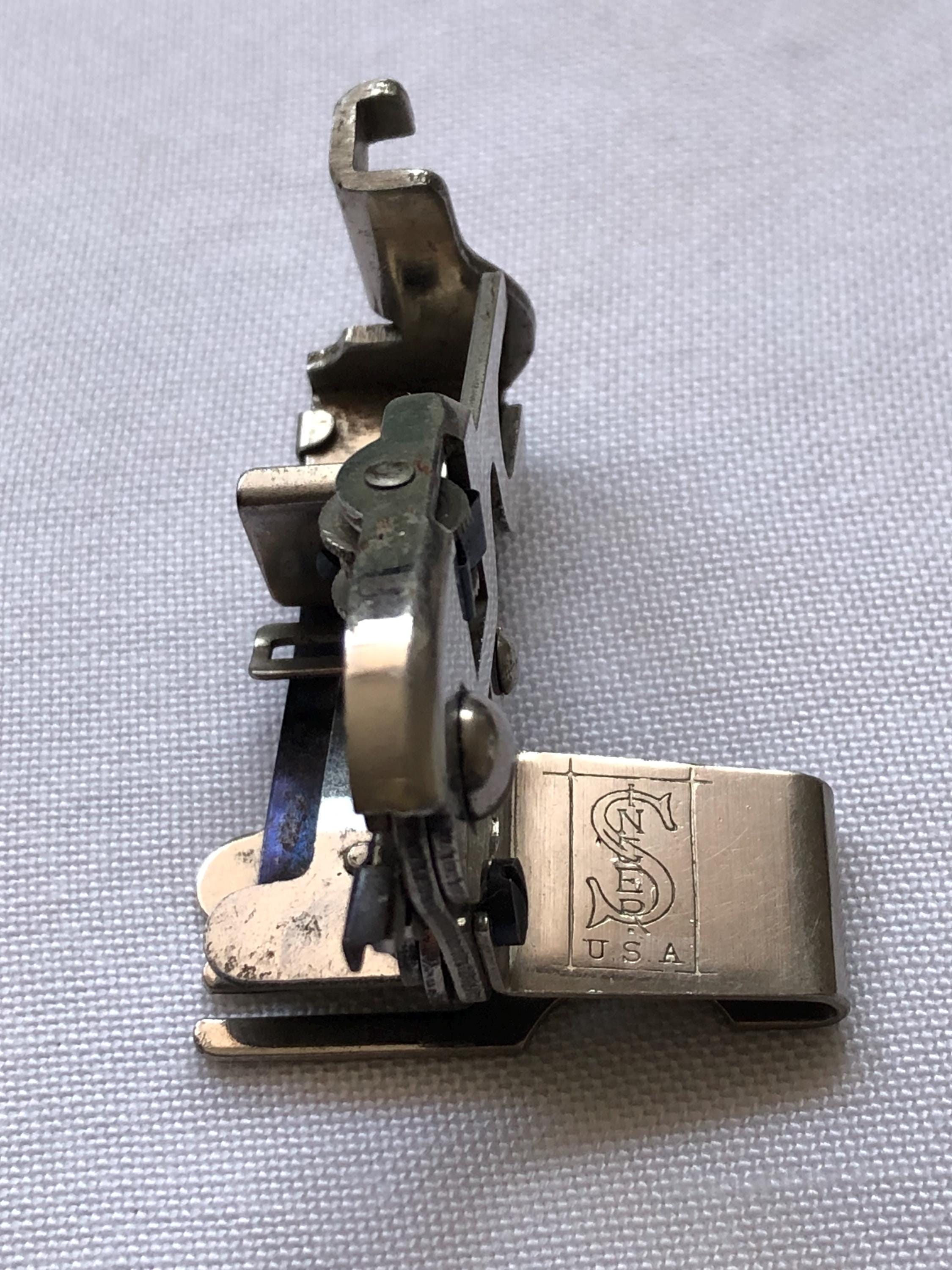 This is an early ruffler which fits a 27K and 28K long bobbin machines and the 15 class machines