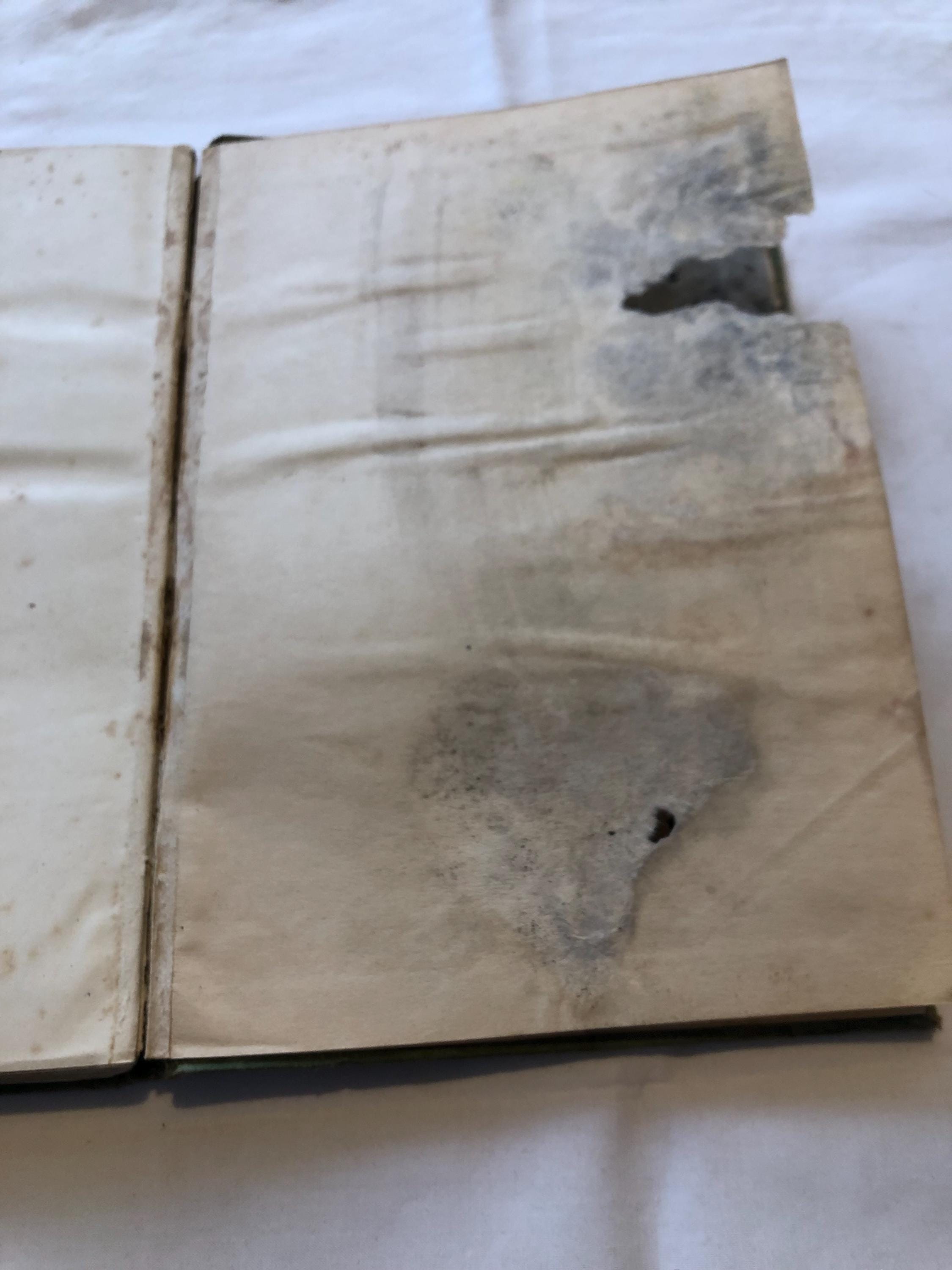 Unfortunately these books have been stored in damp conditions at some point and this is clearly seen in the cover and several of the internal pages. This is very noticeable at the back of the book, again I have tried to show this in the pictures.