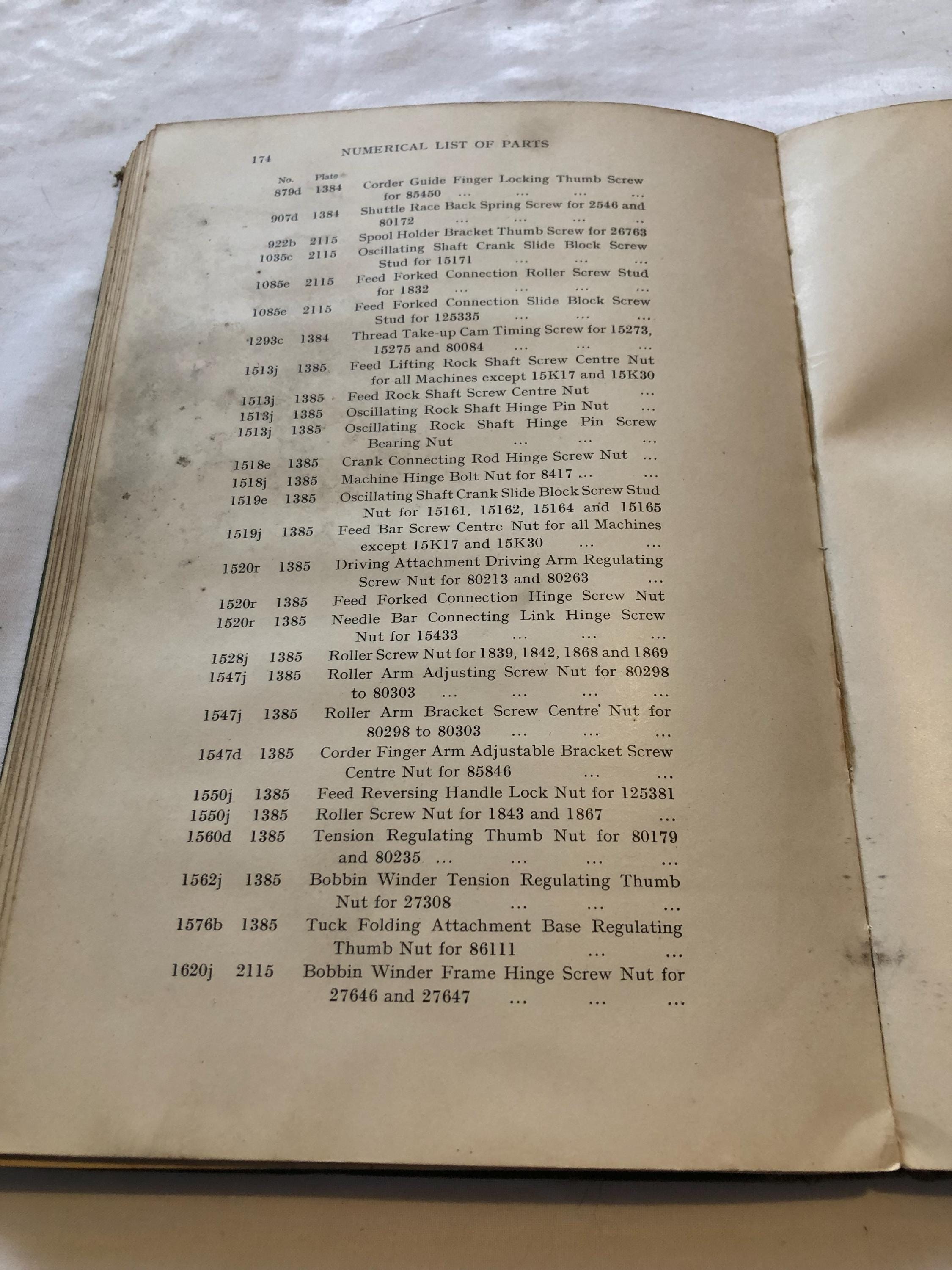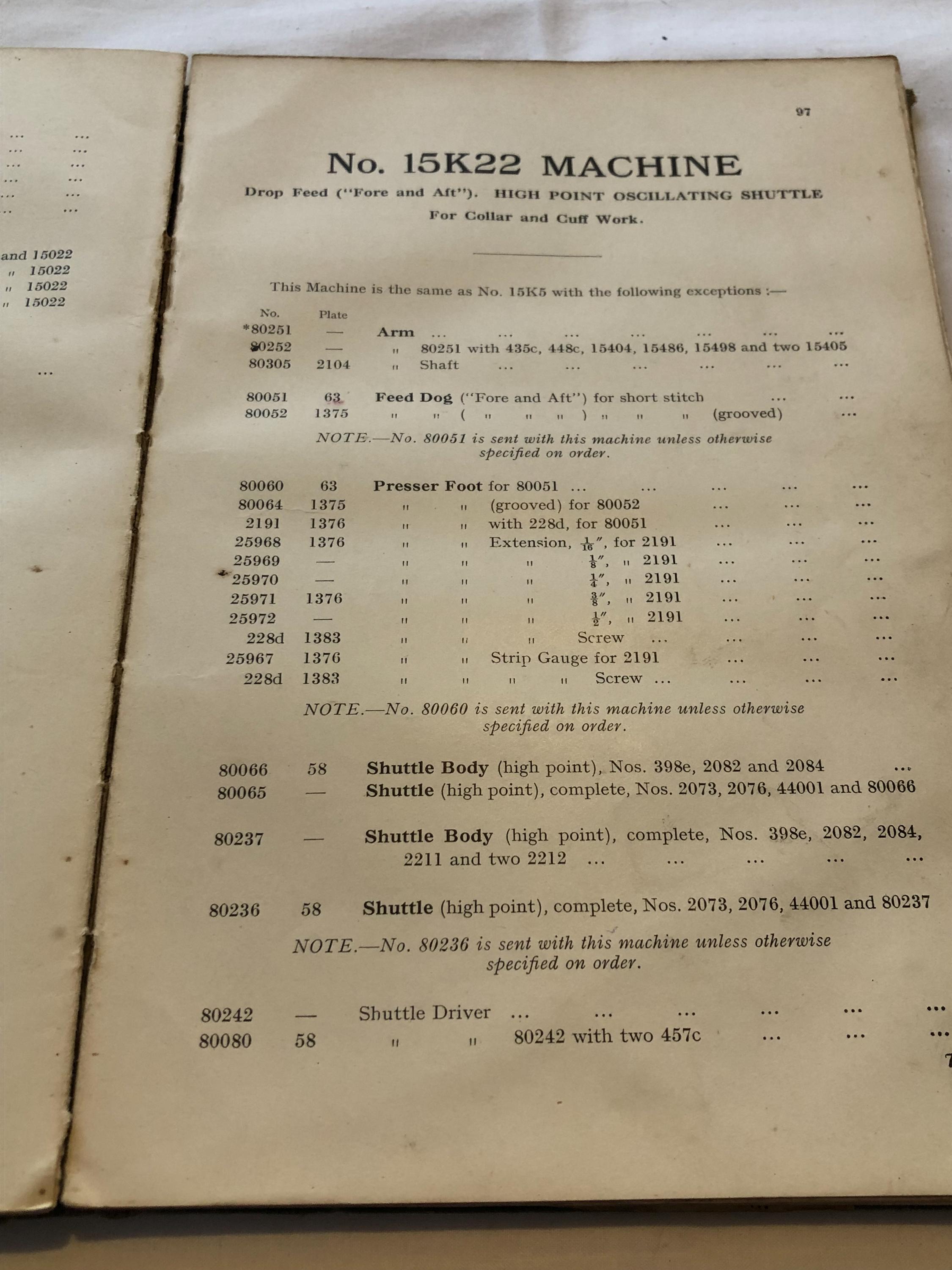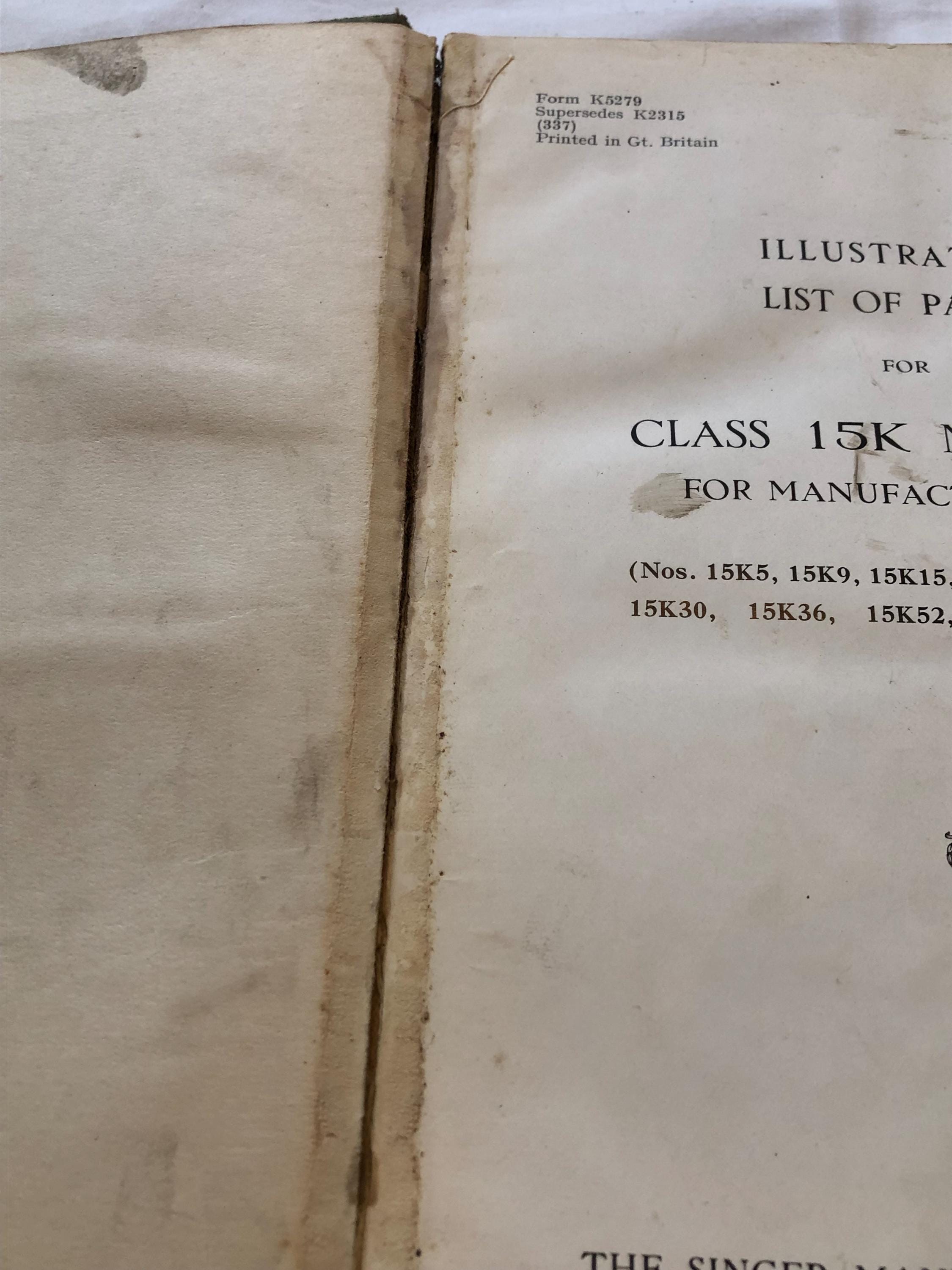 The illustrated list of parts for Class 15K machines by the Singer Sewing Manufacturing Company, undated.