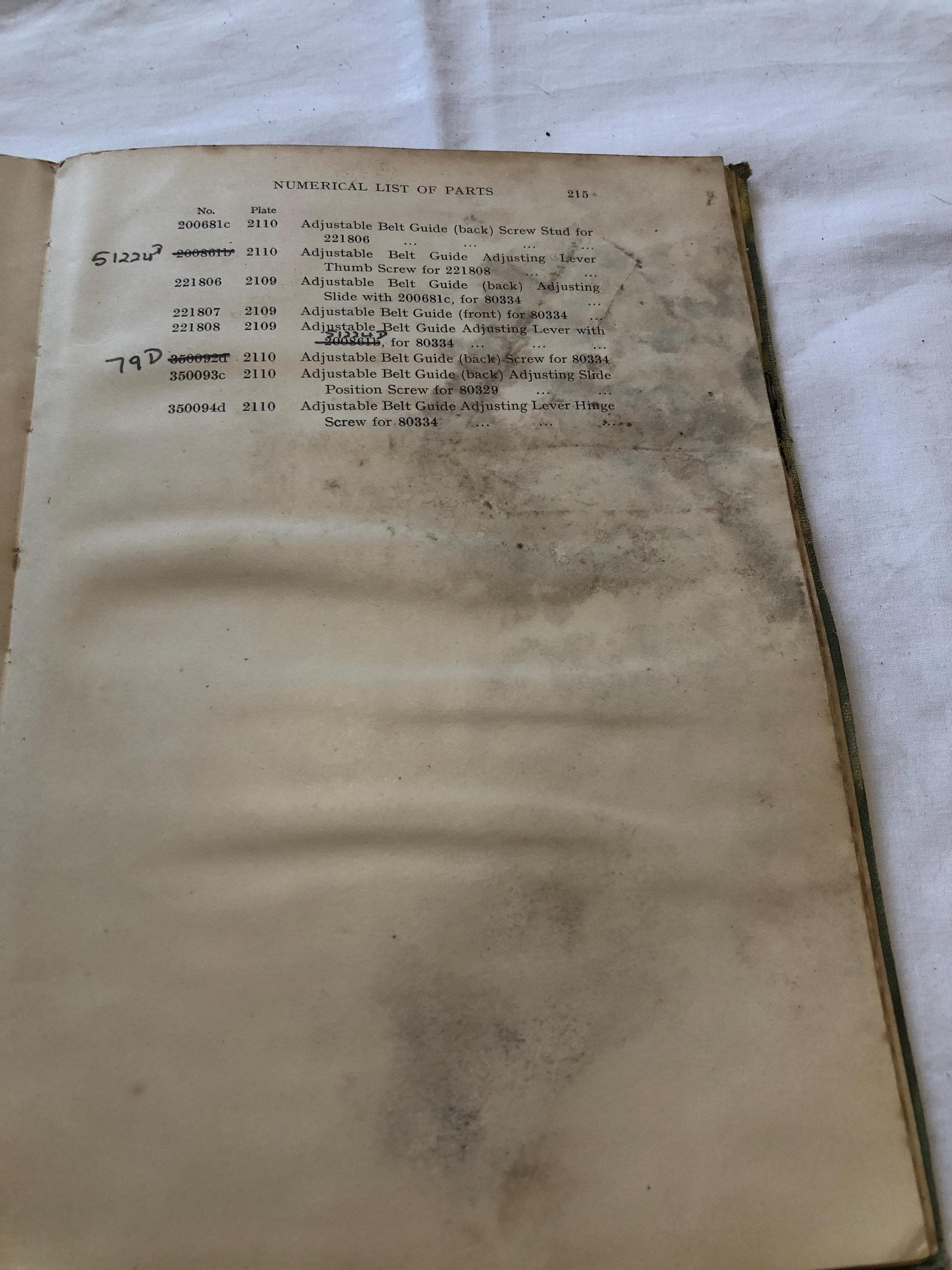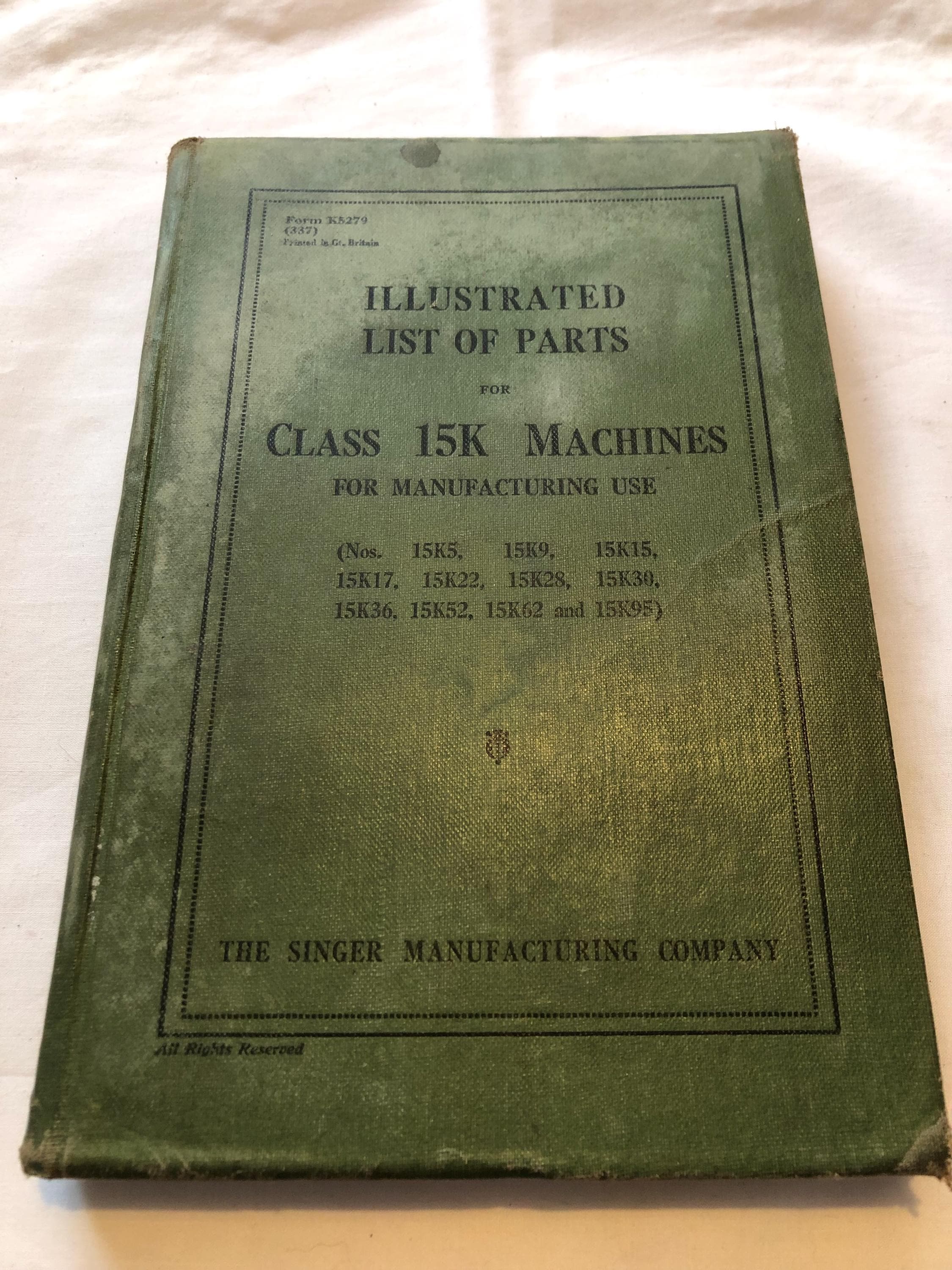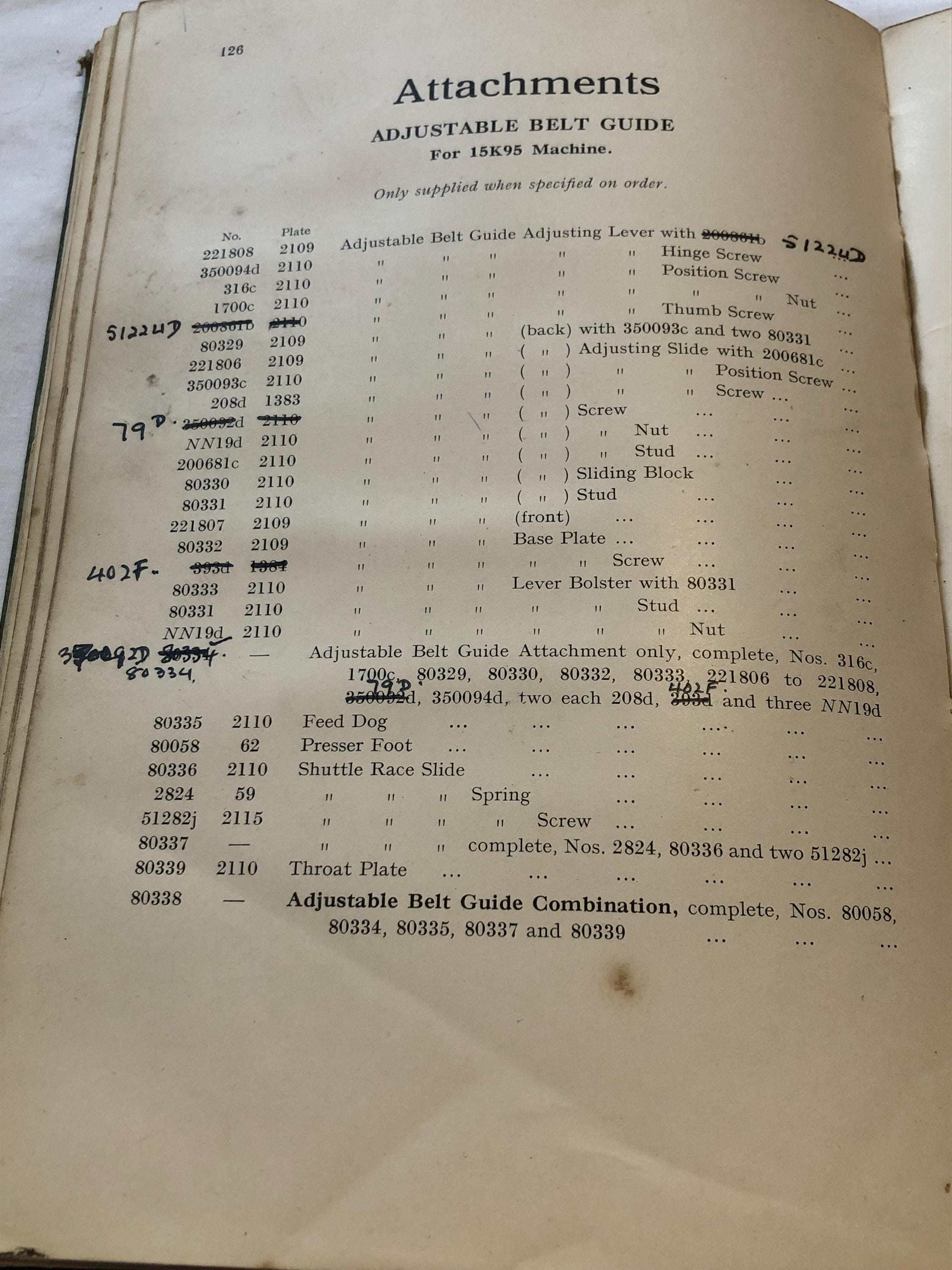 The illustrated list of parts for Class 15K machines by the Singer Sewing Manufacturing Company, undated.