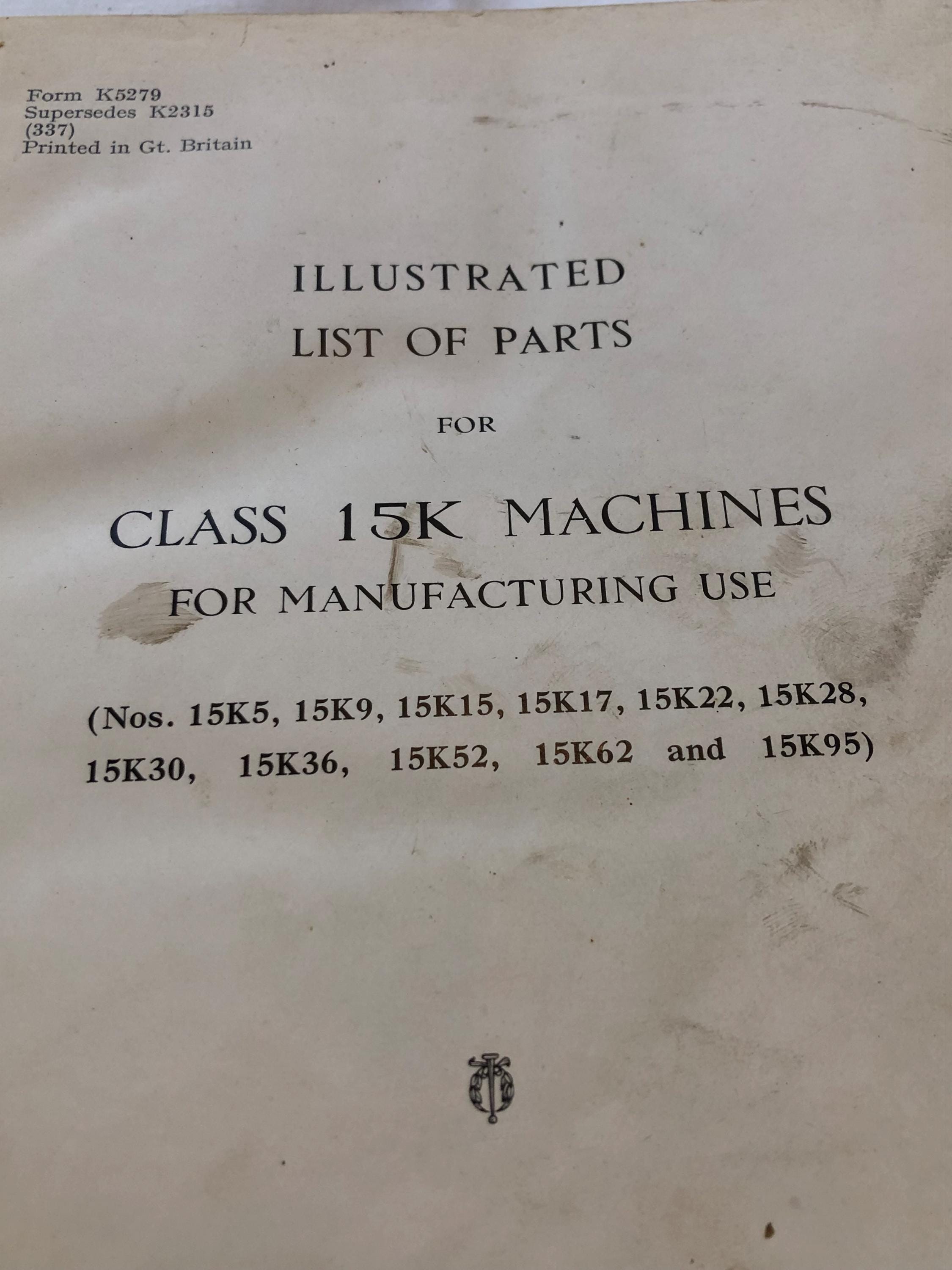 Nos. 15K5, 15K9, 15K15, 15K17, 15K22, 15K28, 15K30, 15K36, 15K52, 15K62 and 15K95 machines.