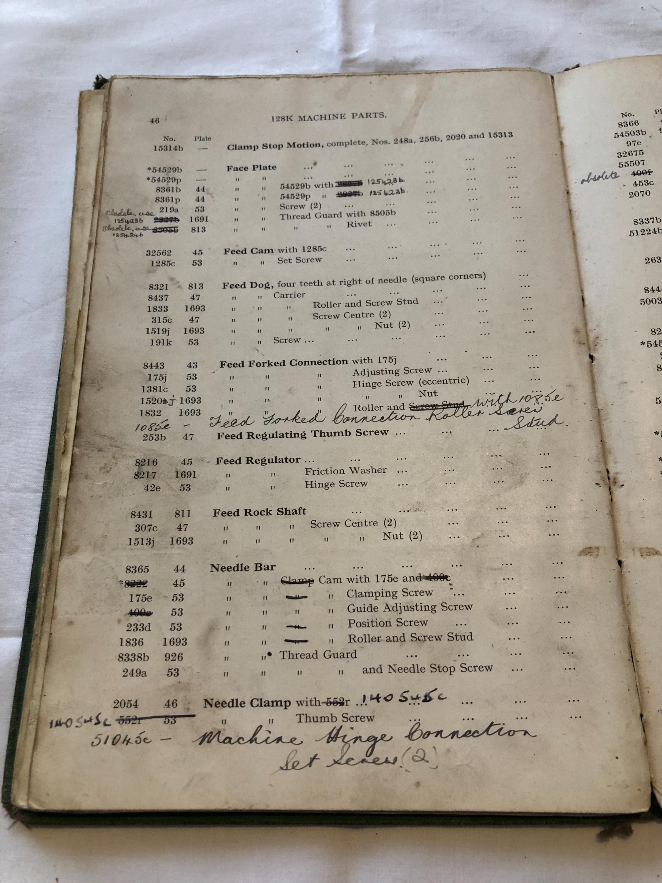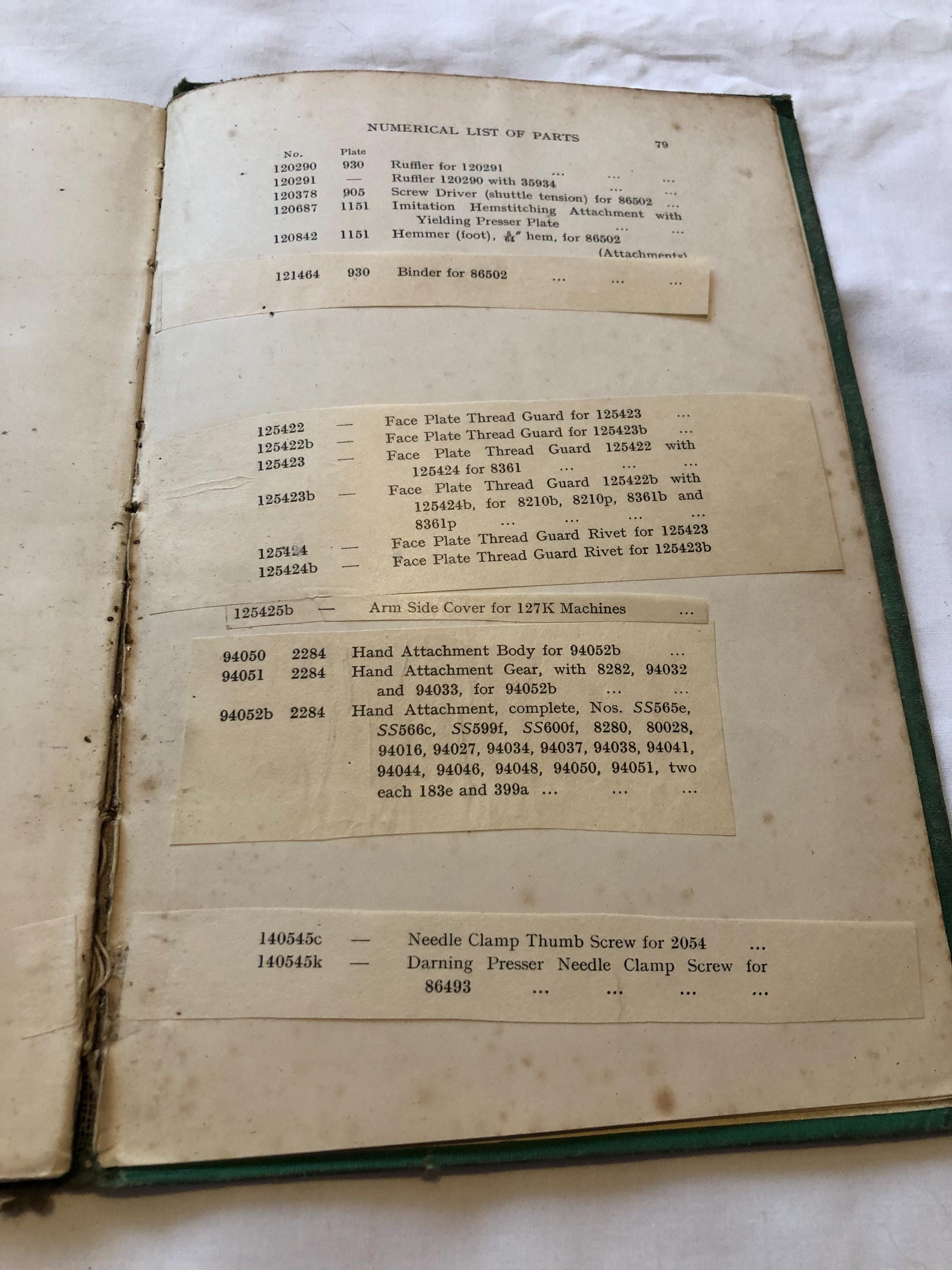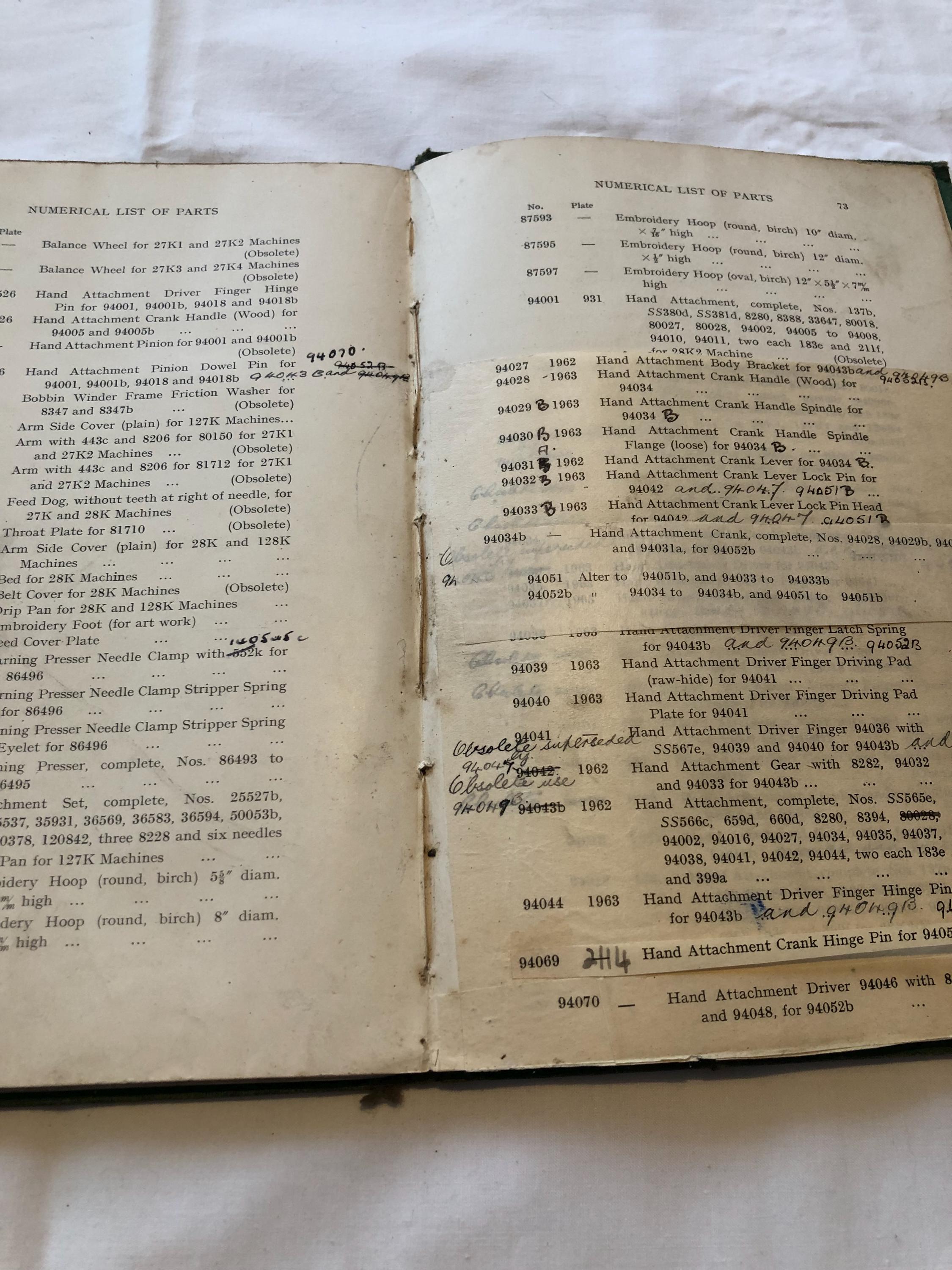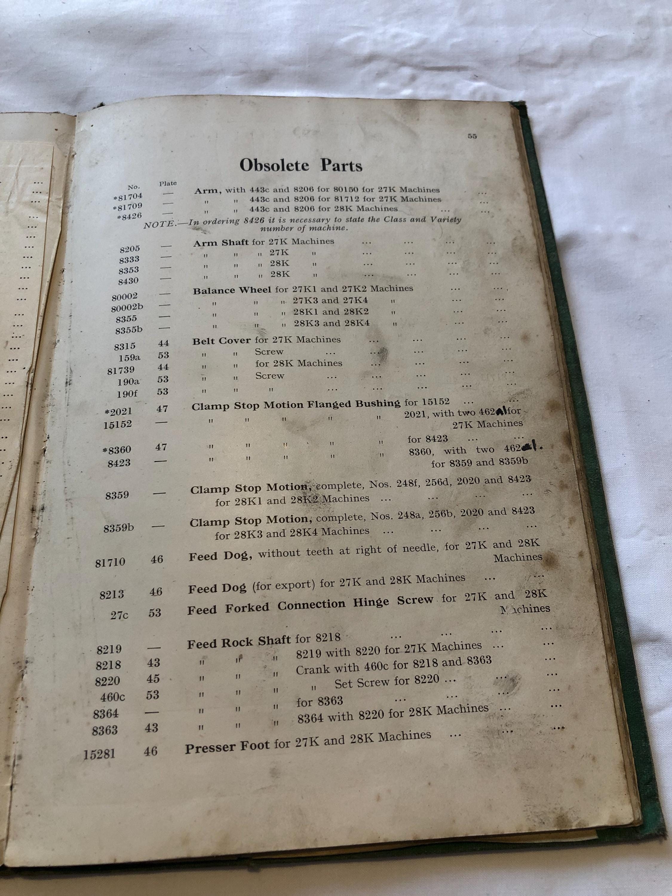 The illustrated list of parts for 28K, 127K and 128K machines by the Singer Sewing Manufacturing Company, dated 1932.