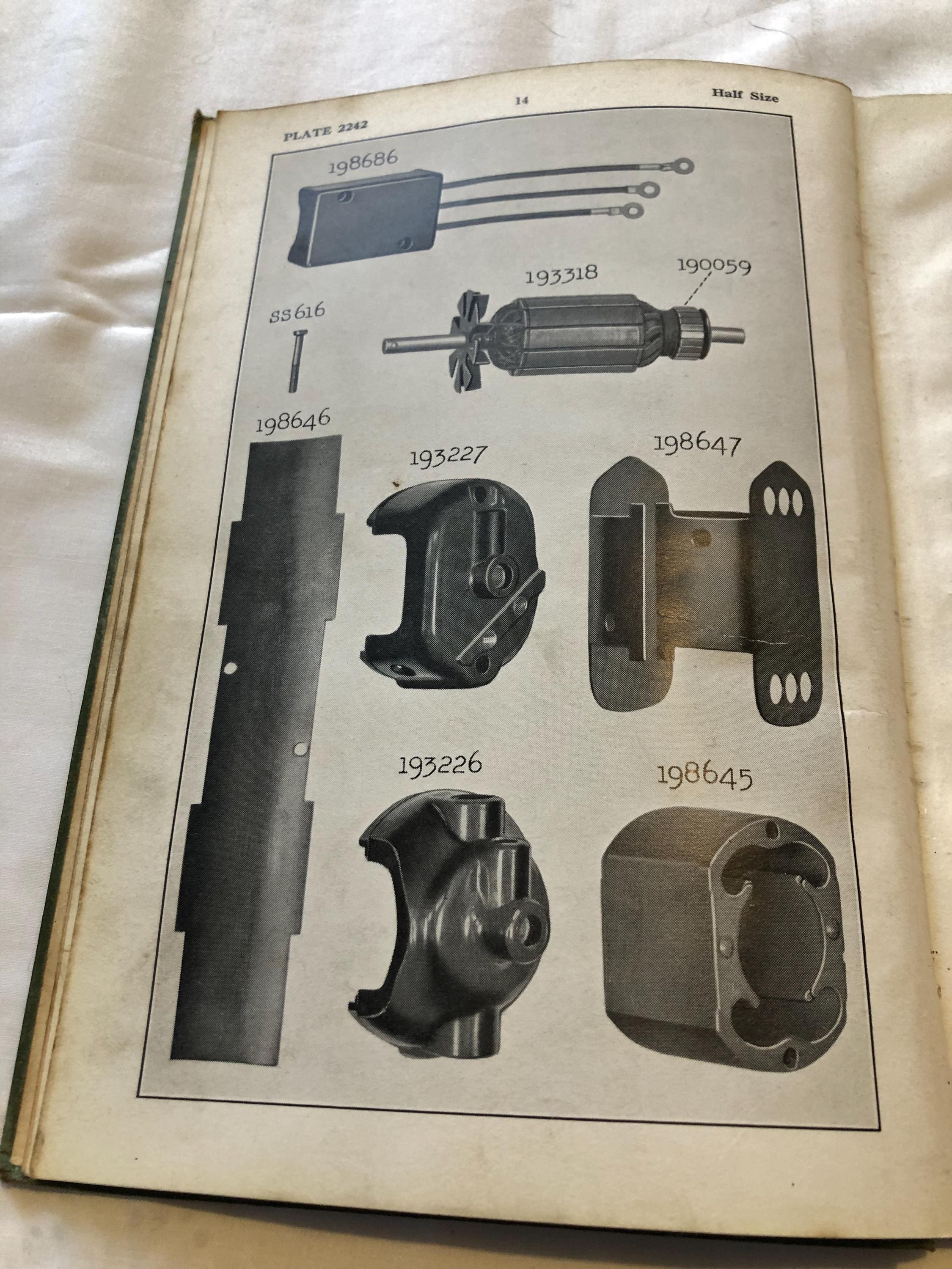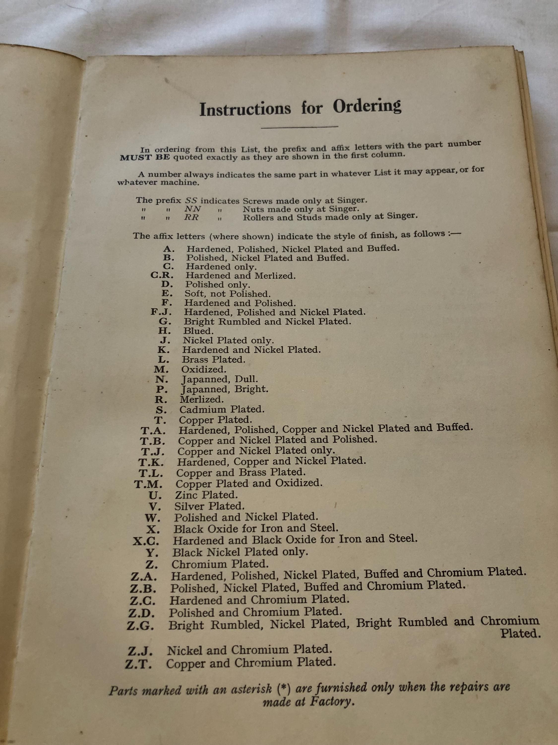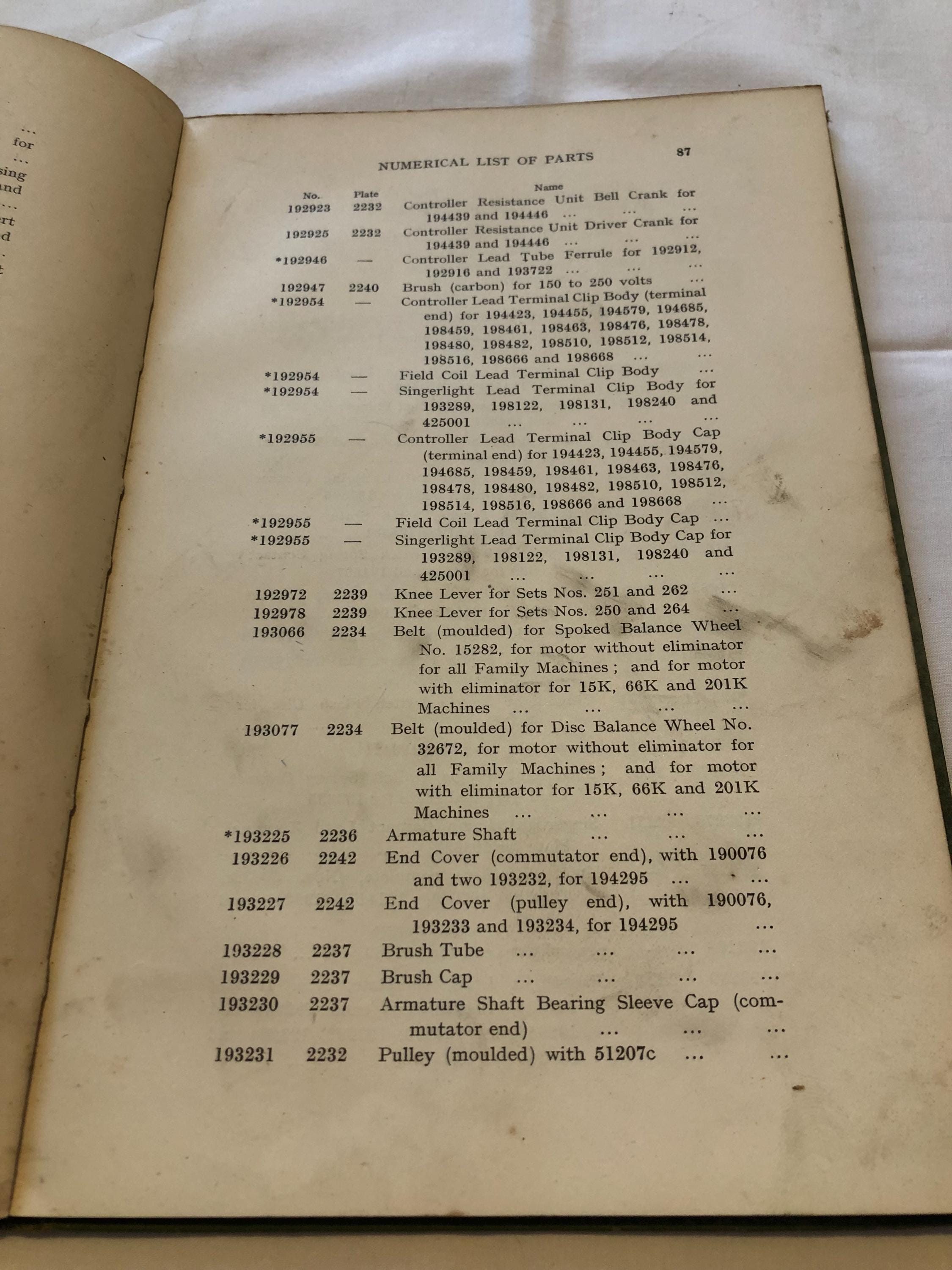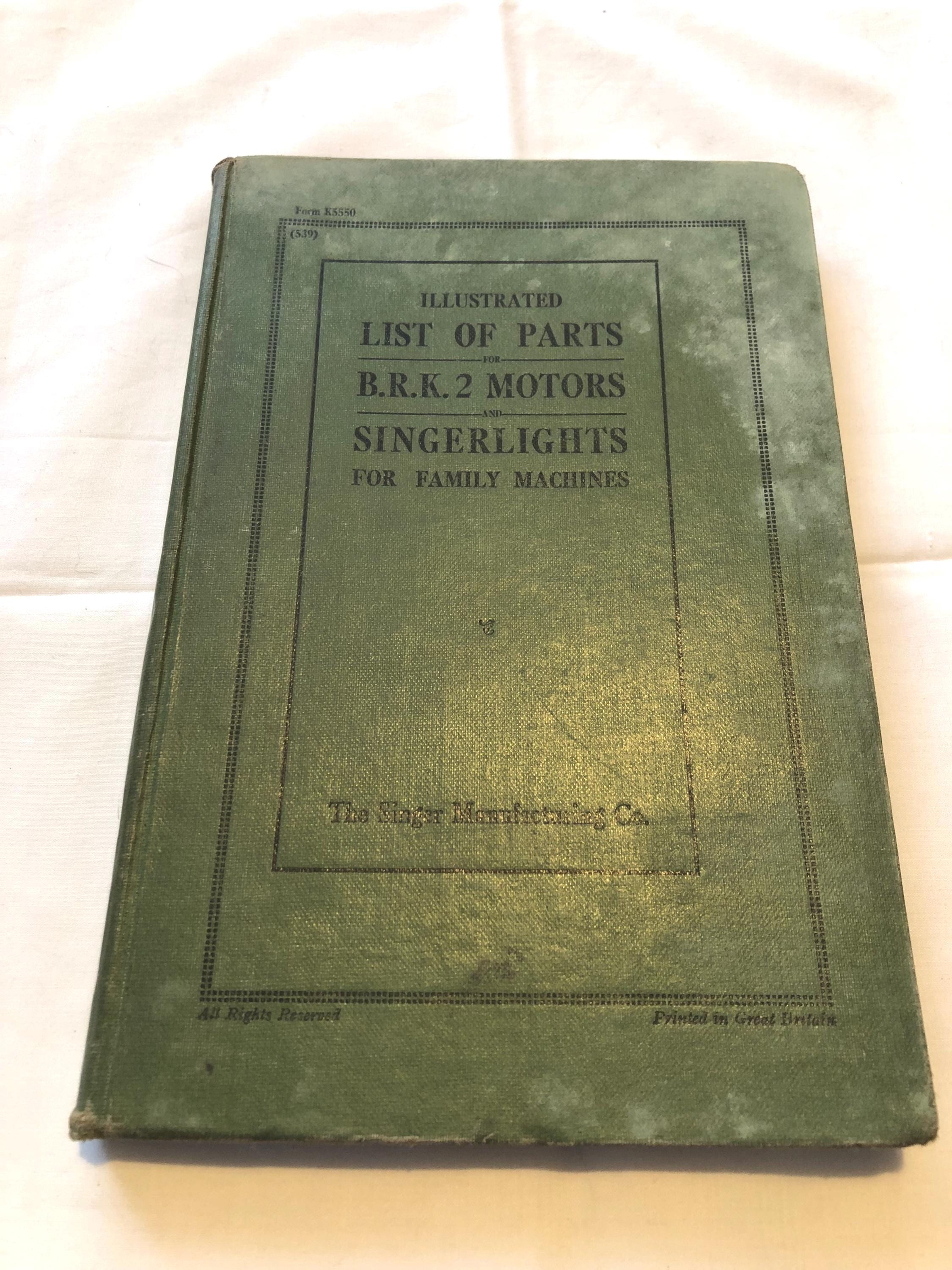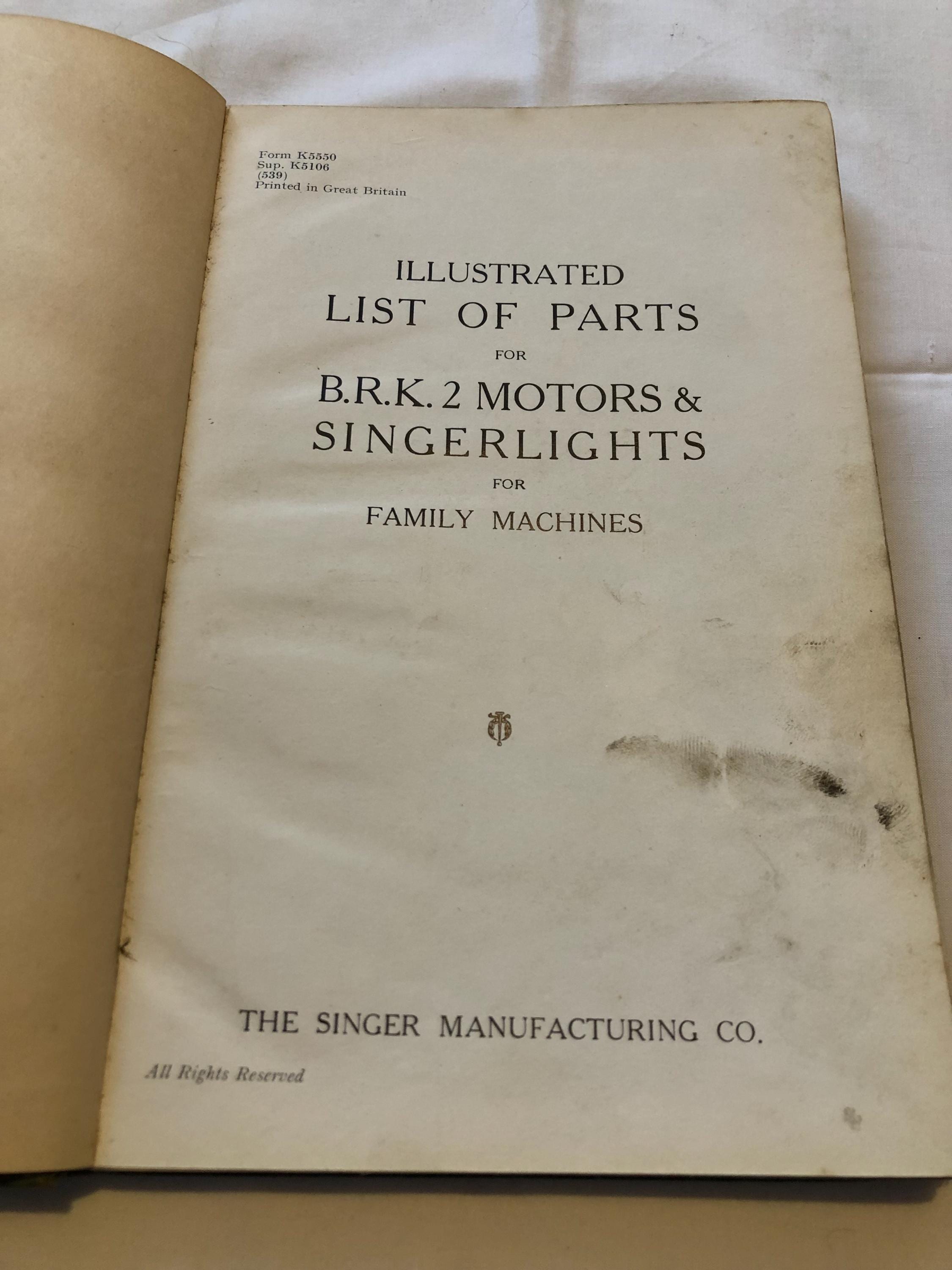 This is a rare opportunity to own an original Singer book "Illustrated List of Parts B.R.K 2Motors Singer Lights for Family Machines"