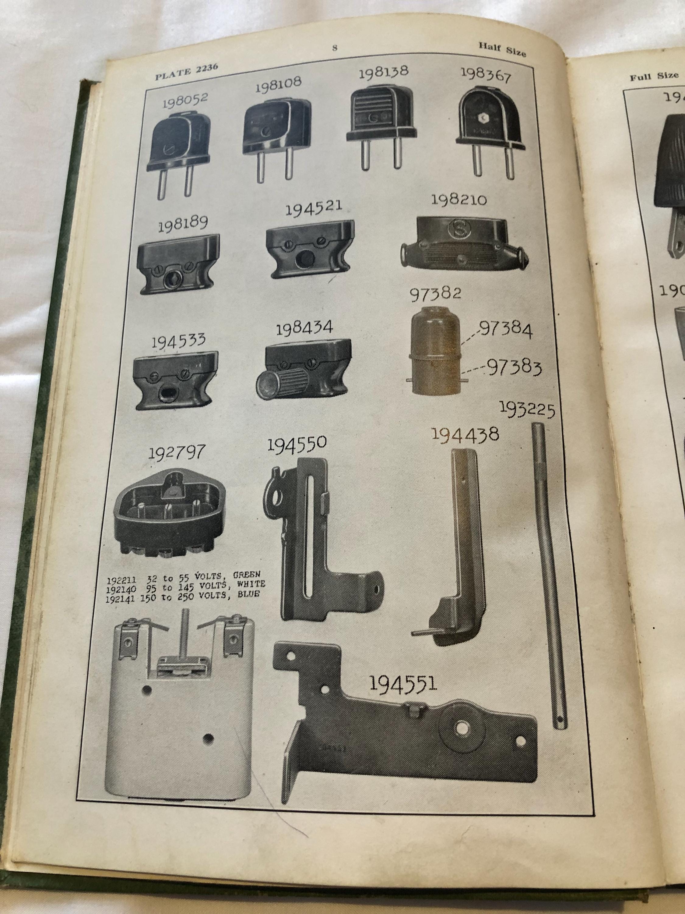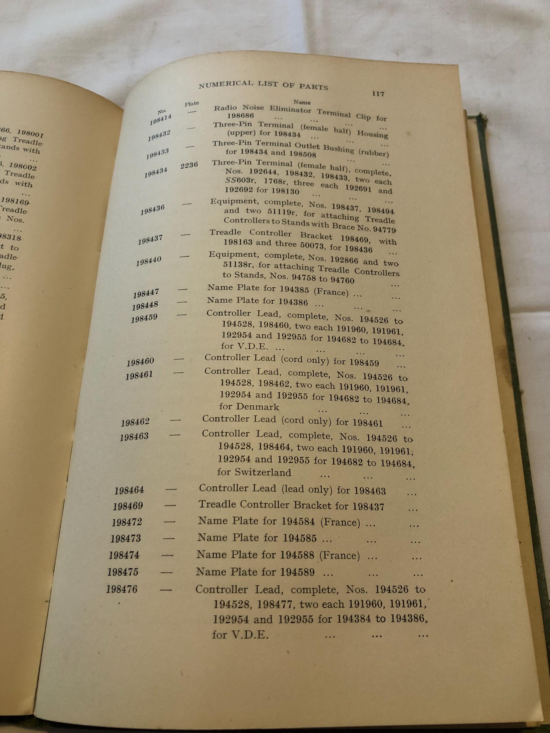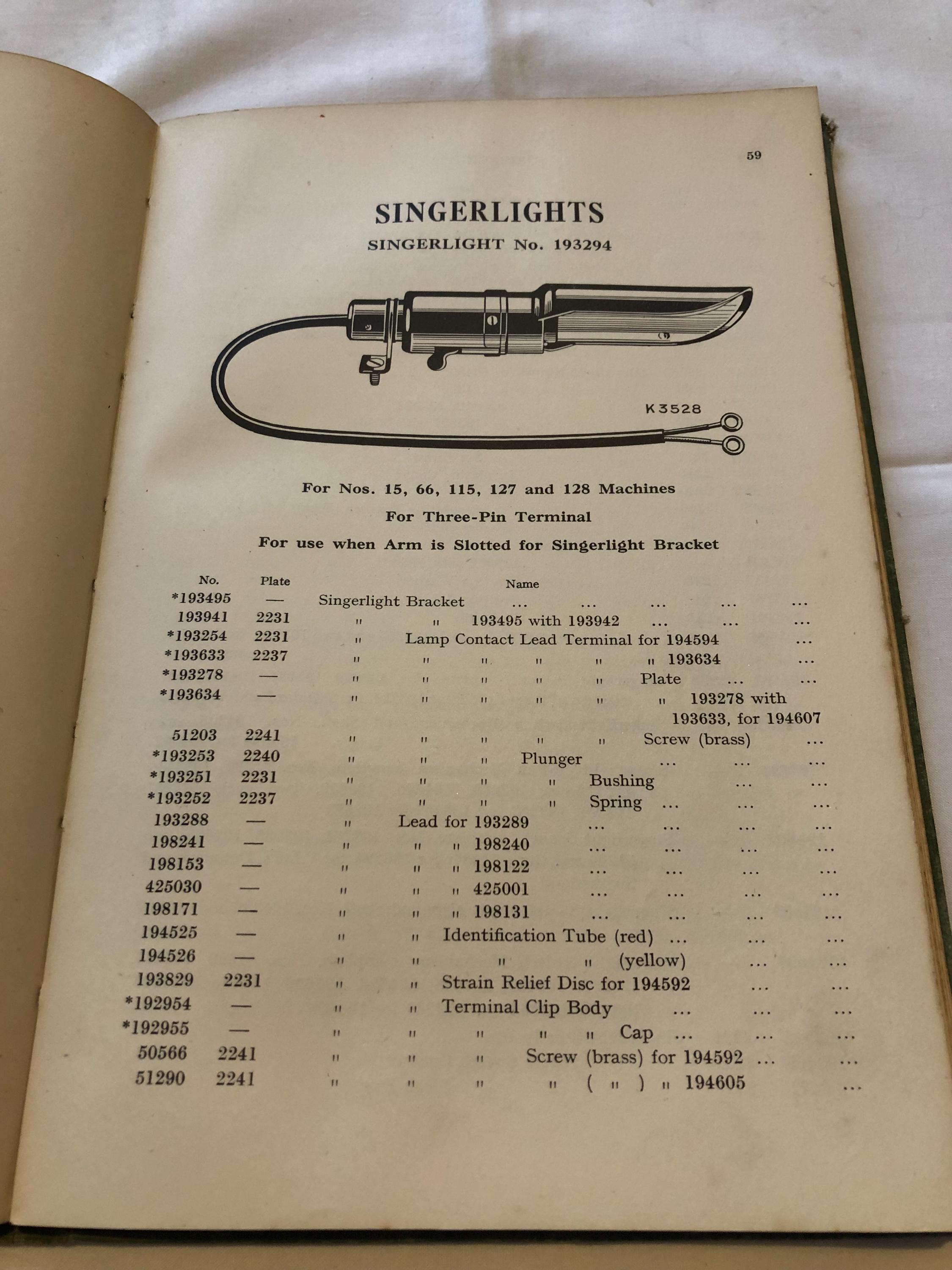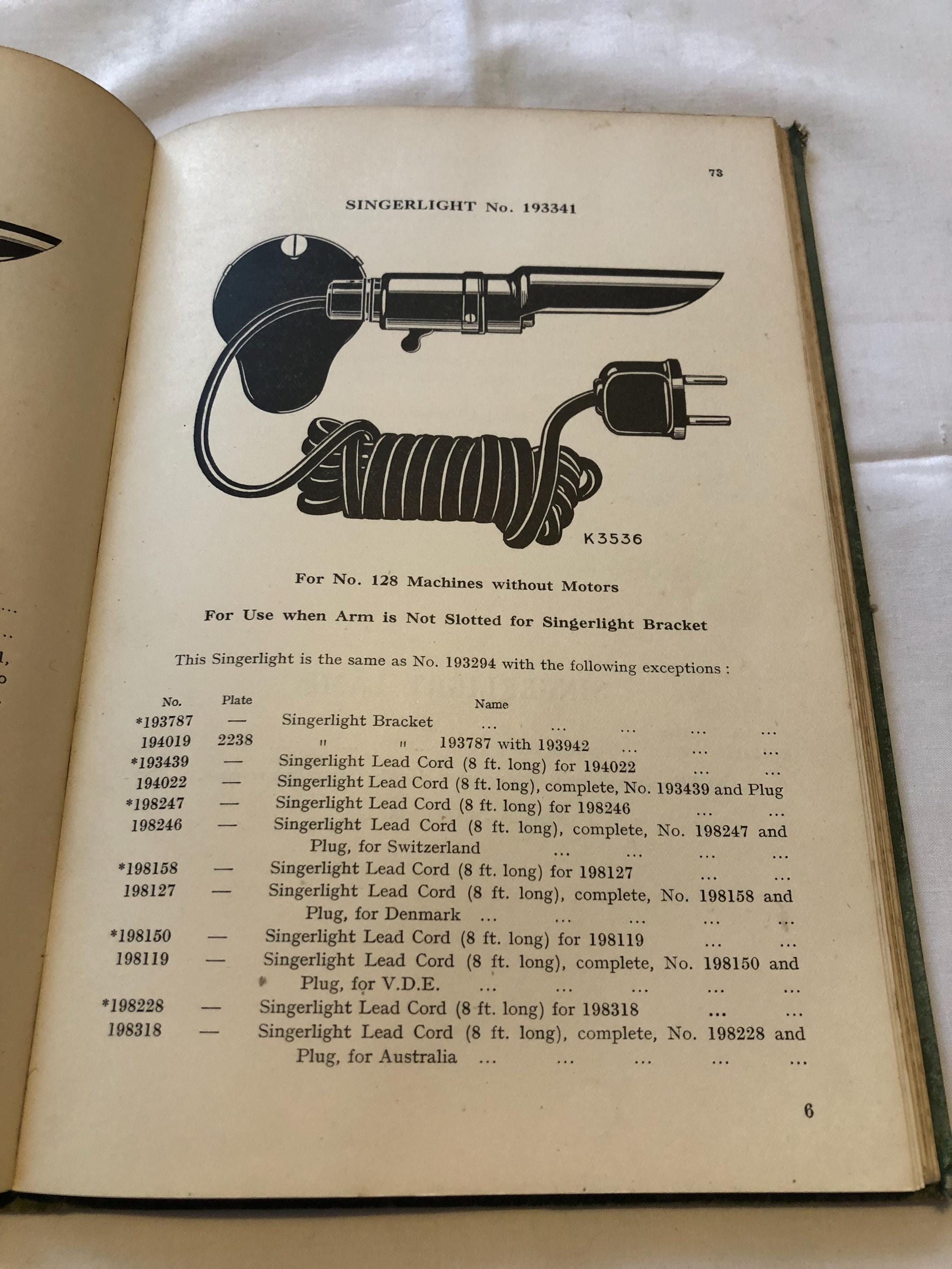 This is a rare opportunity to own an original Singer book "Illustrated List of Parts B.R.K 2 Motors Singer Lights for Family Machines" (2)