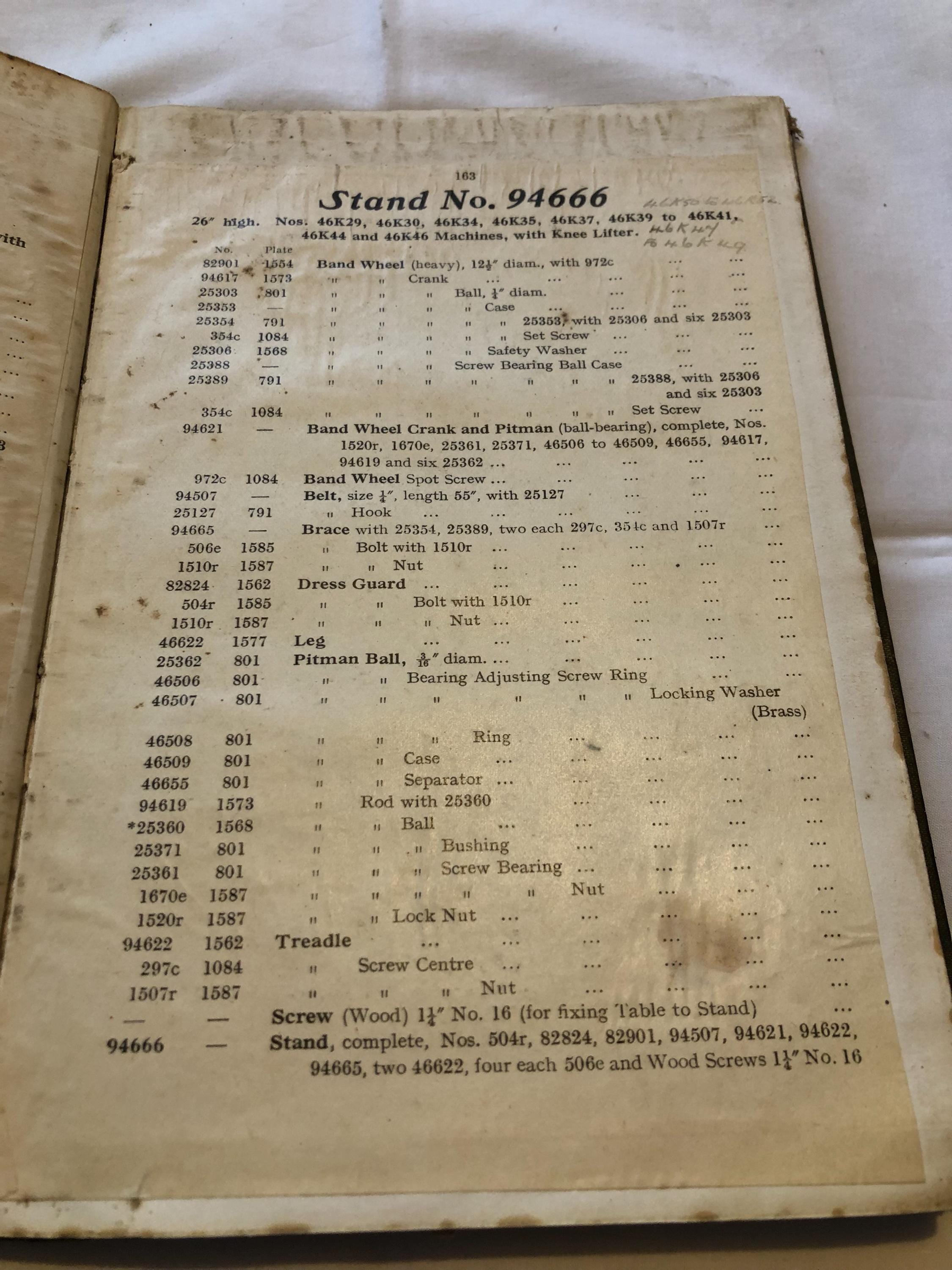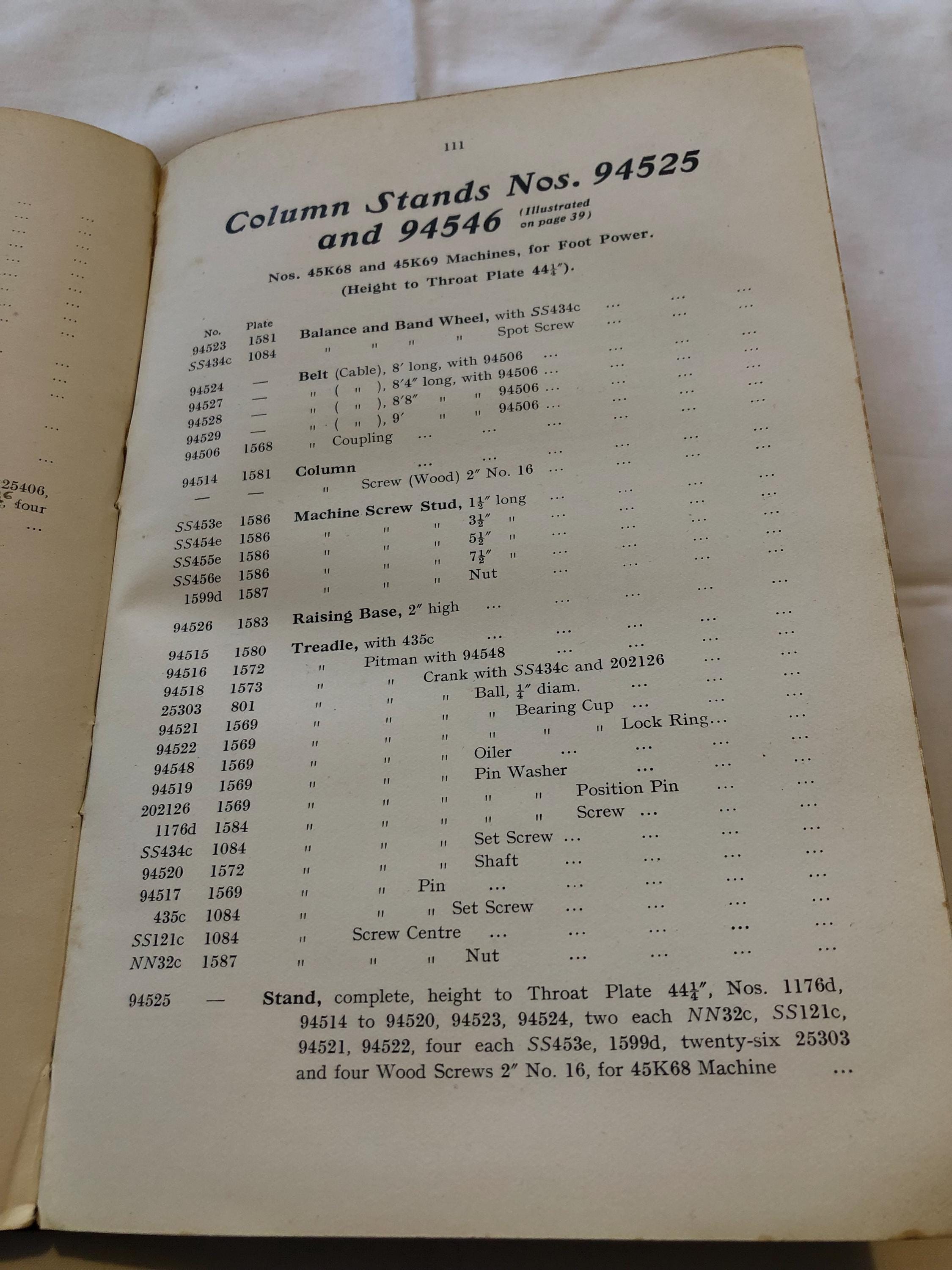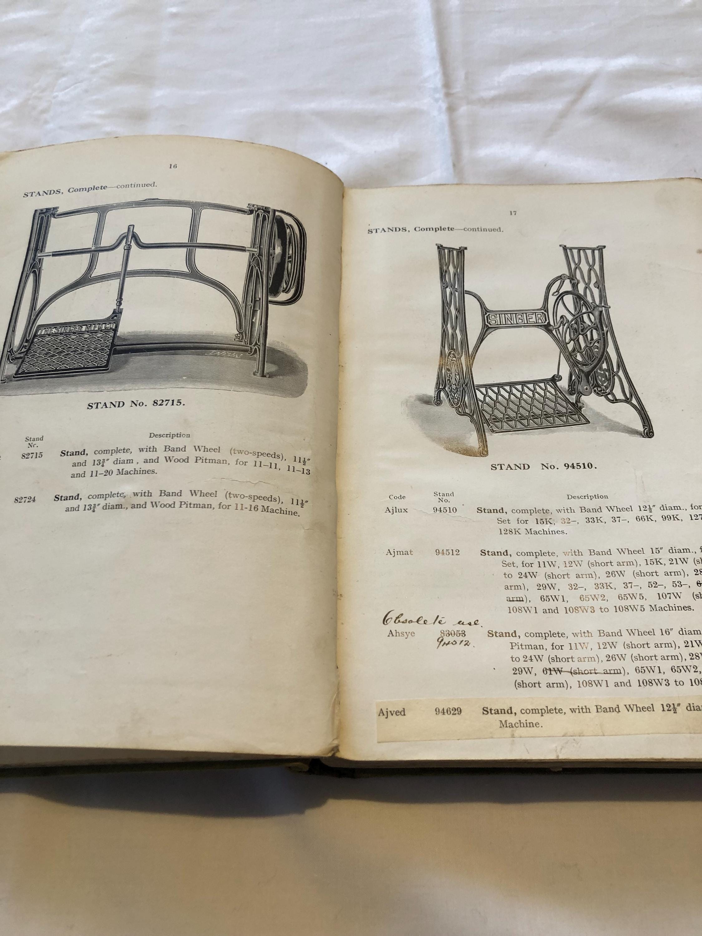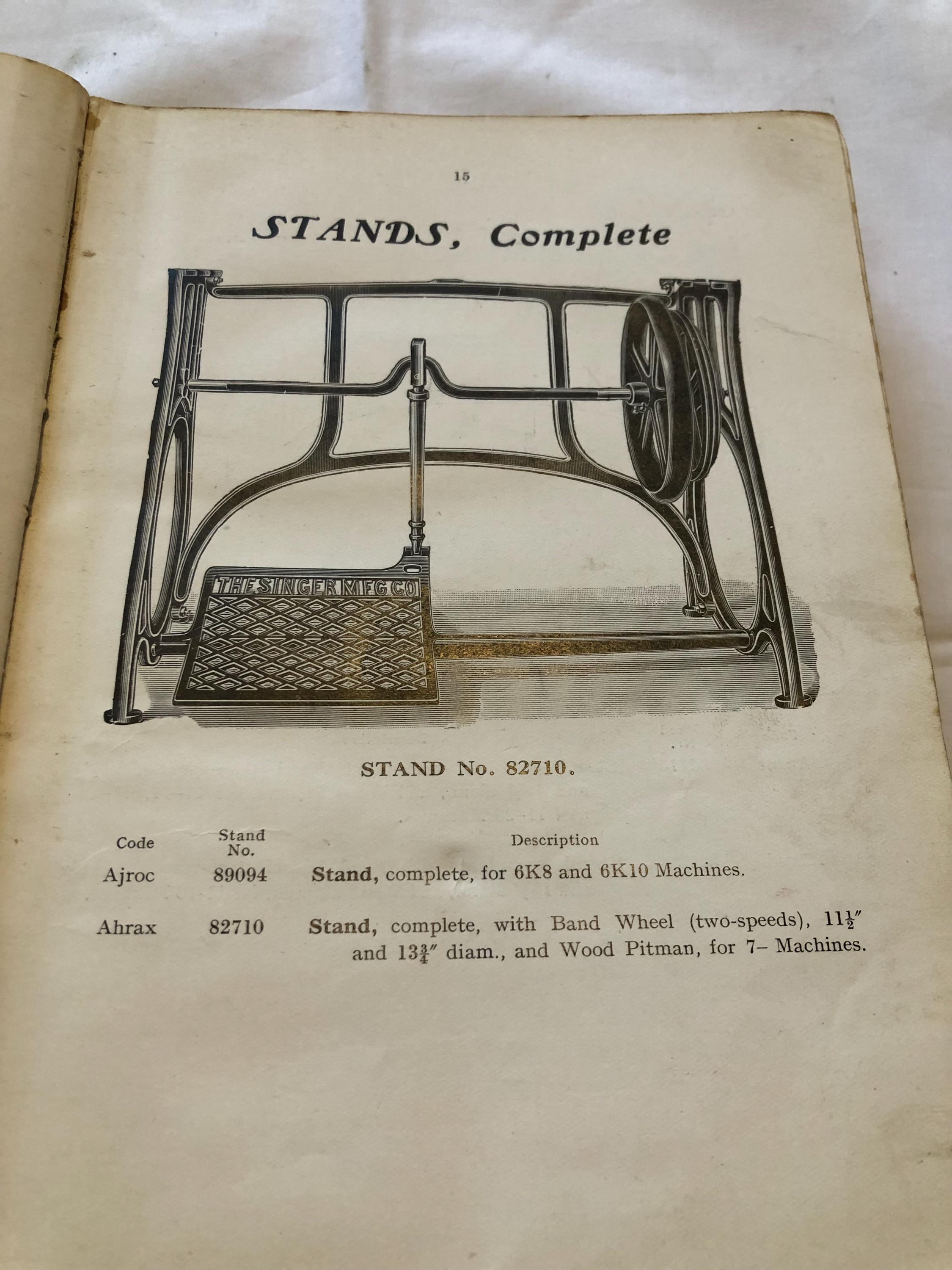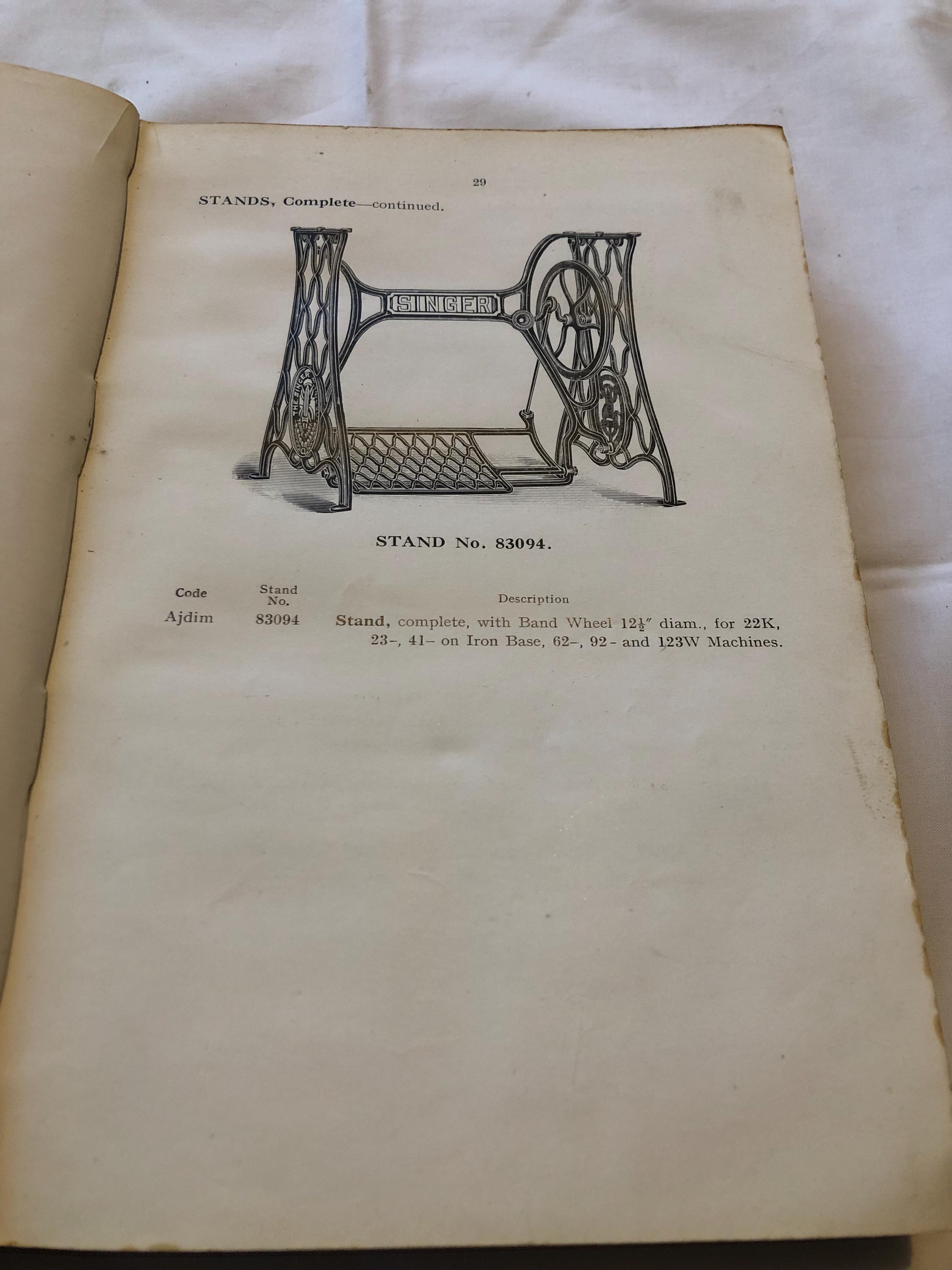 This is a rare opportunity to own an original Singer book "Illustrated List Stands and Stand Parts - Singer Sewing Manufacturing Company.