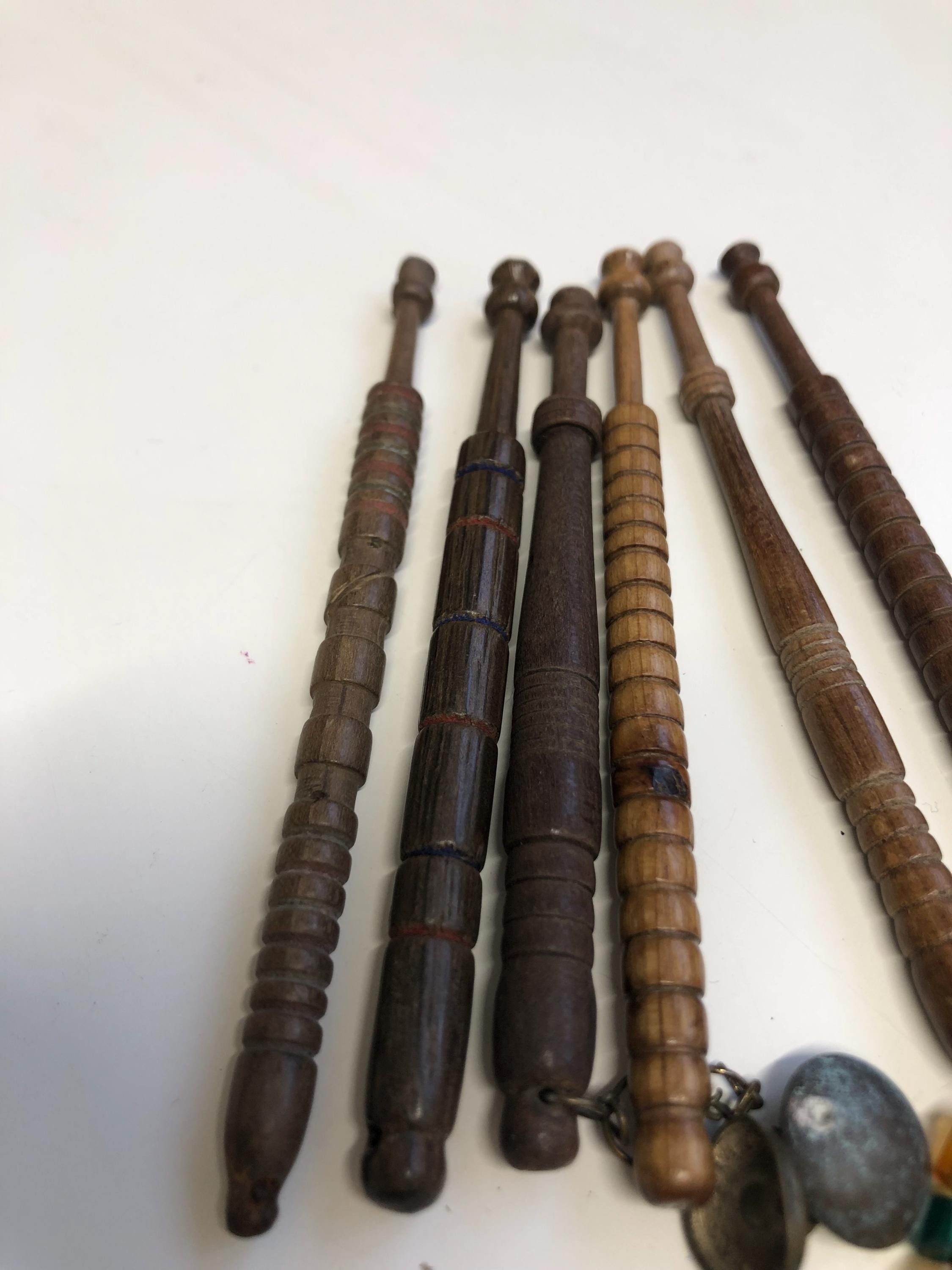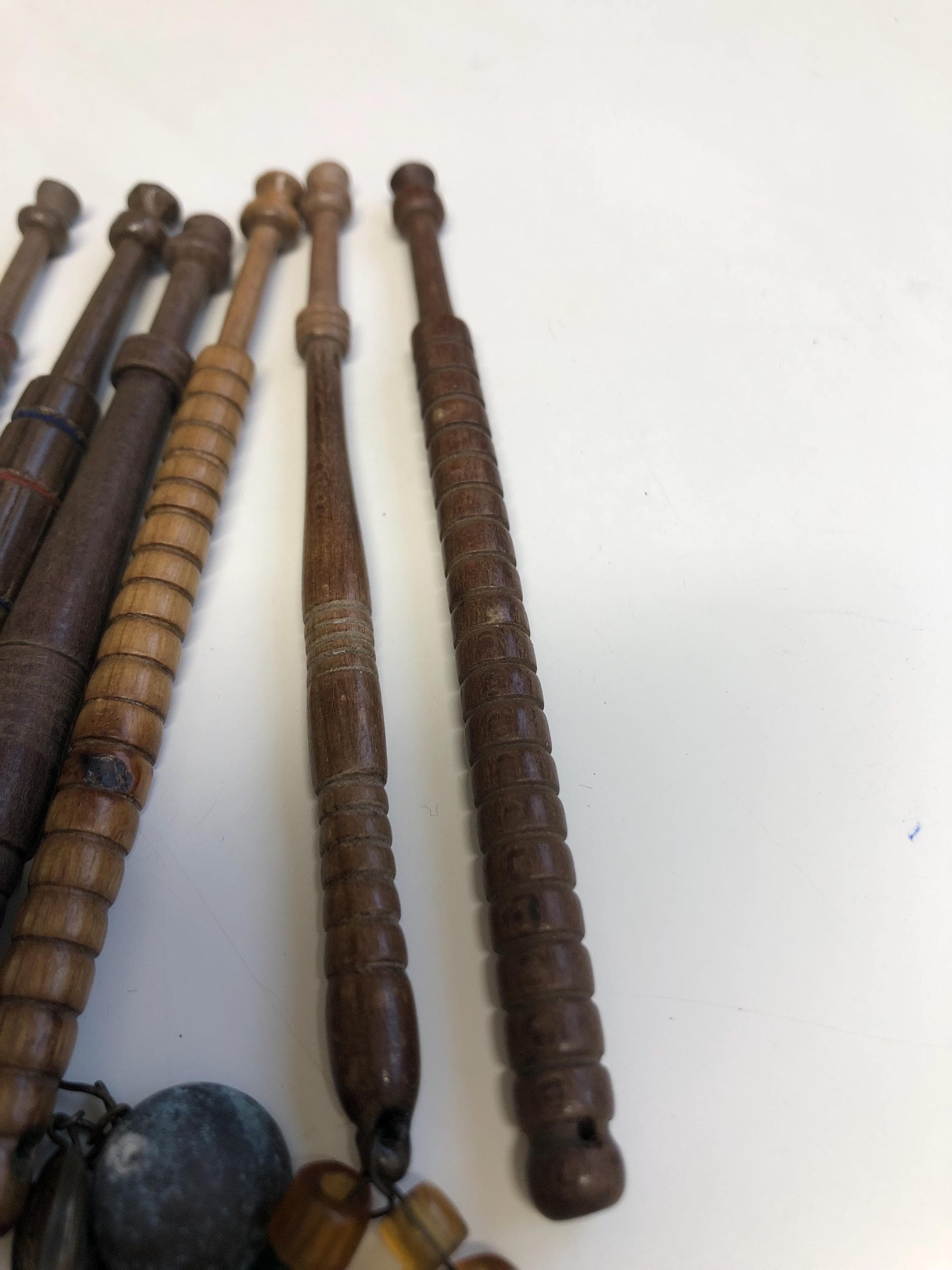 They are all about 10cm long, all have holes for spangles although only two have their original ones.