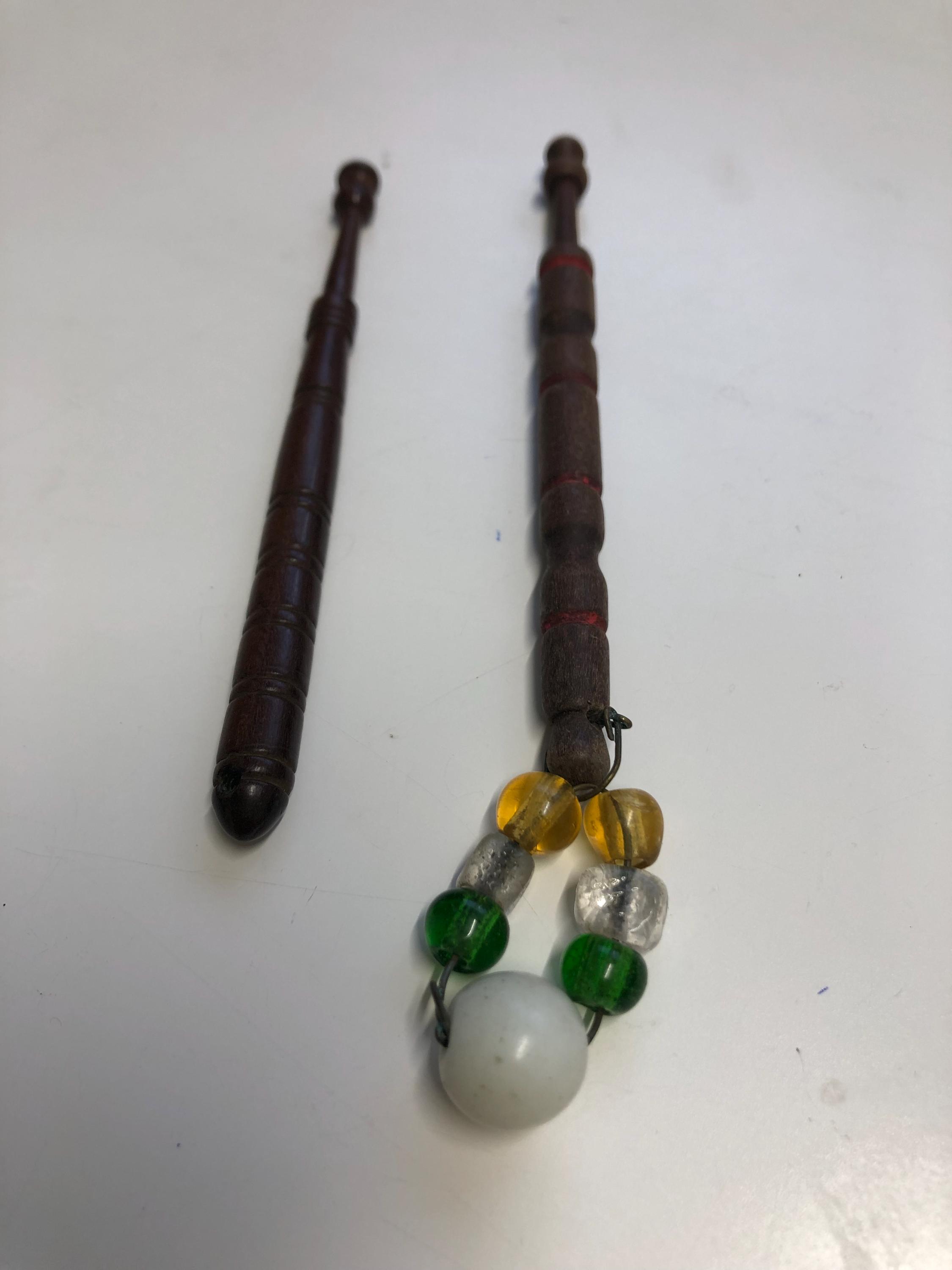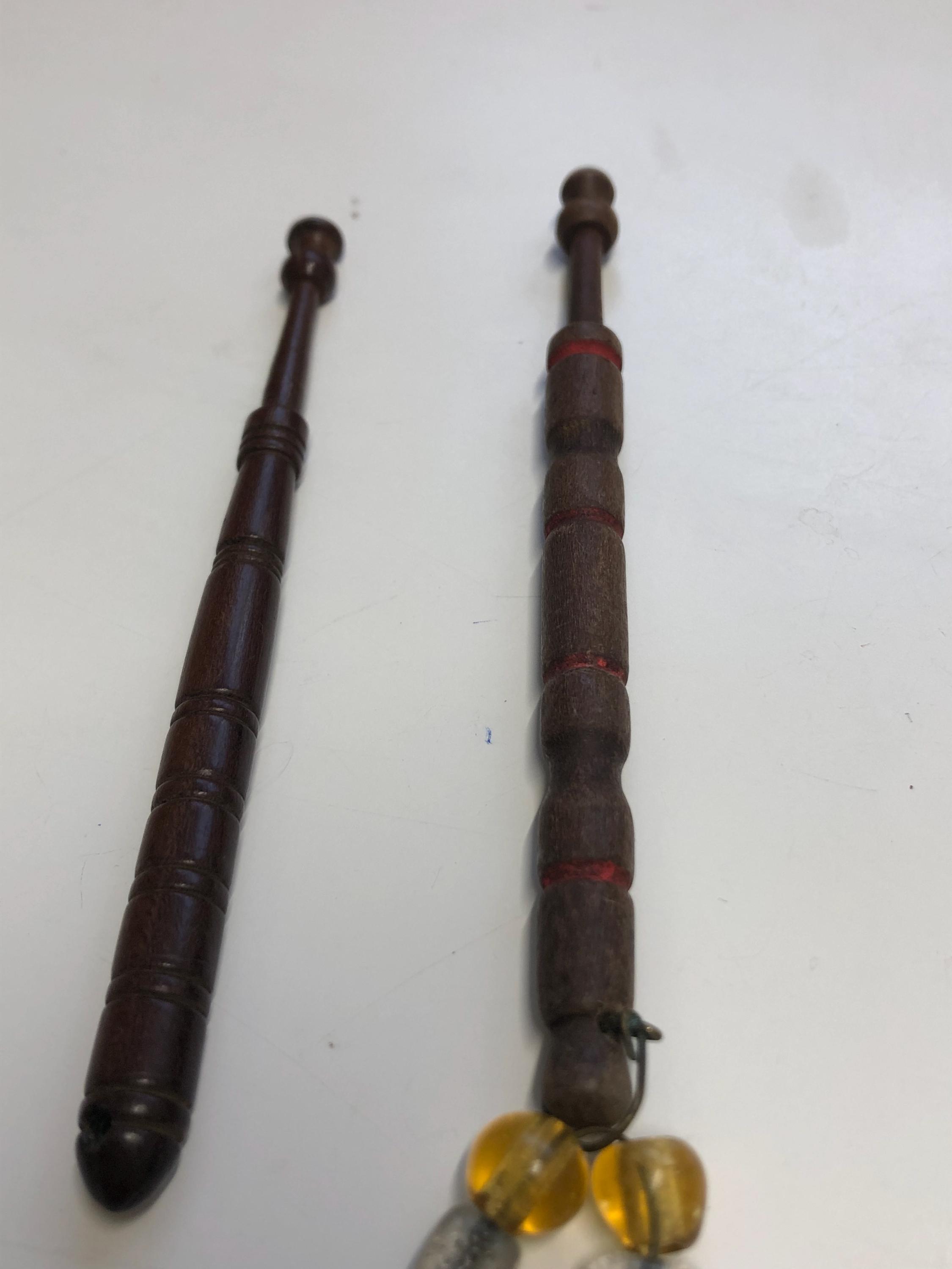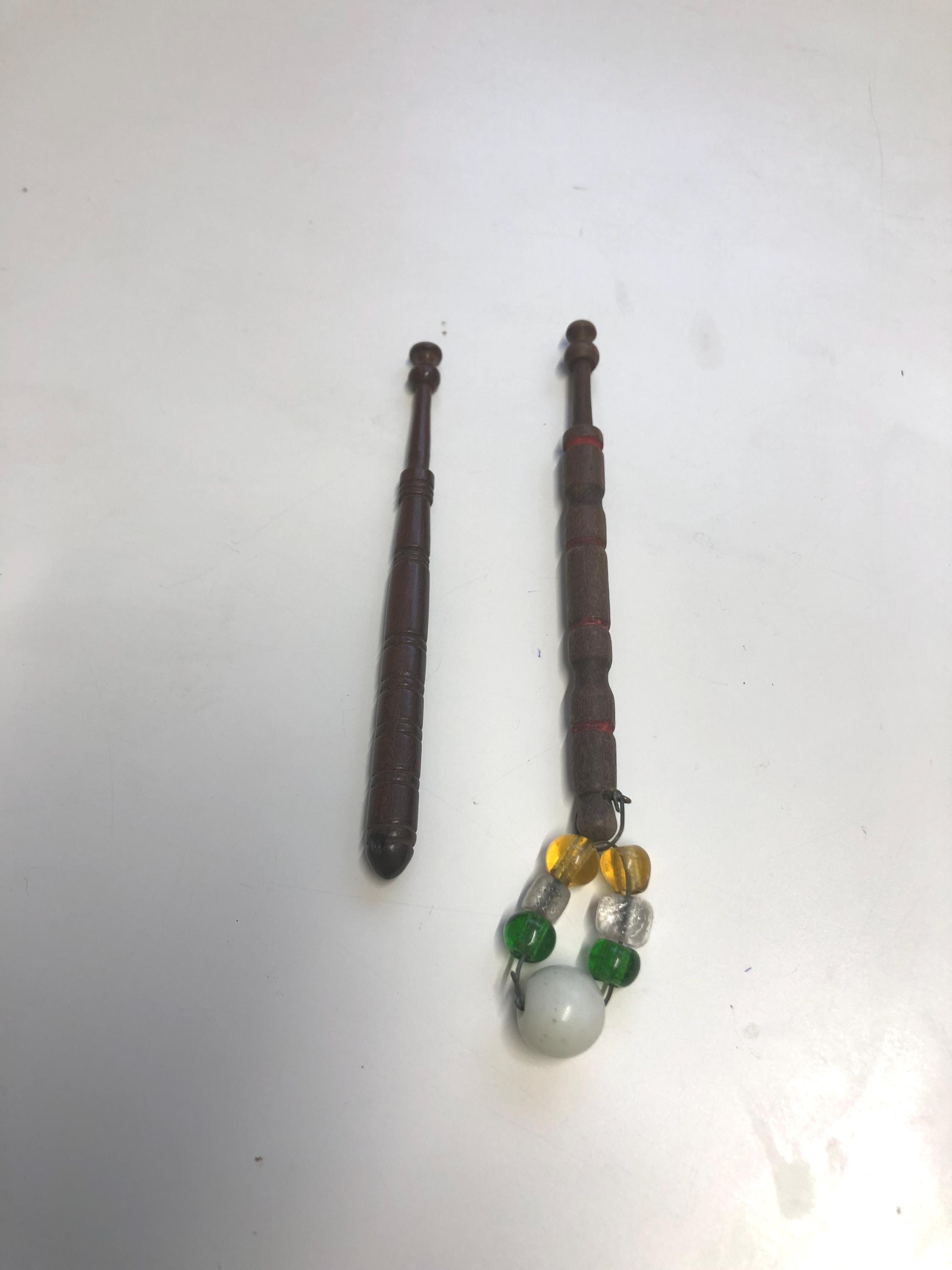 They are all about 10cm long, all have holes for spangles although only one has its original ones. These are a little thicker than the average bobbin