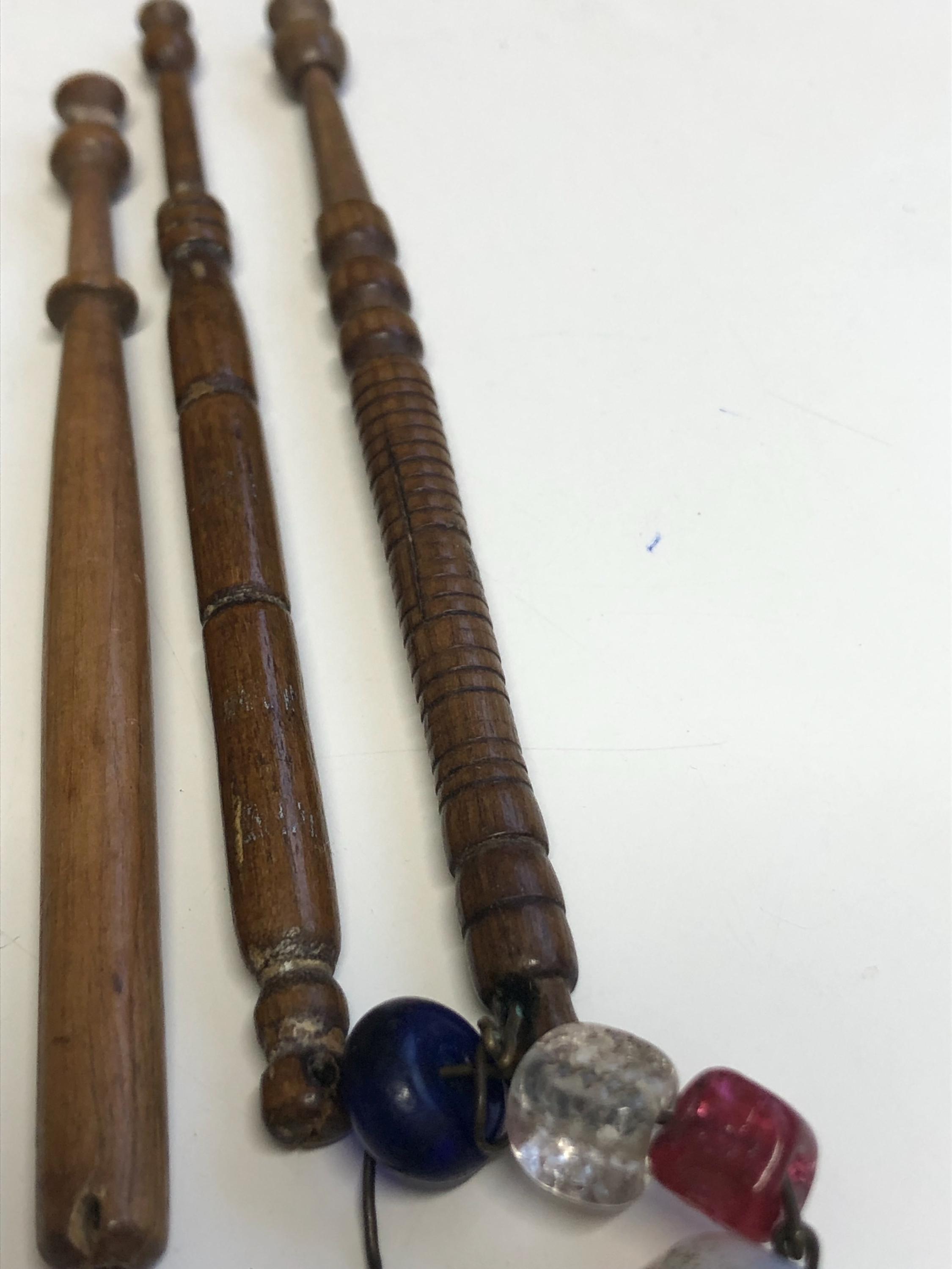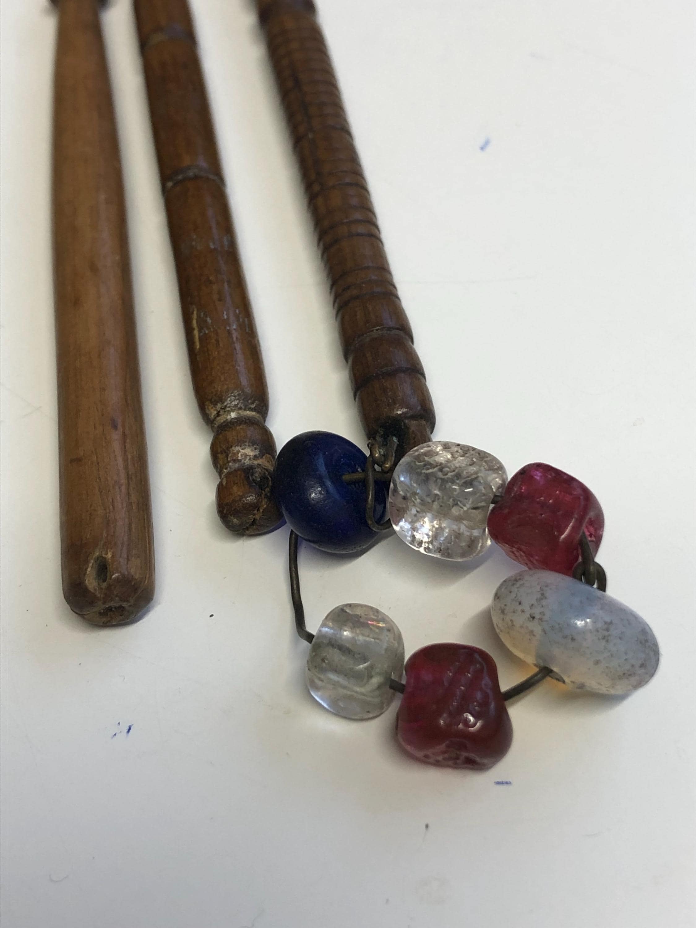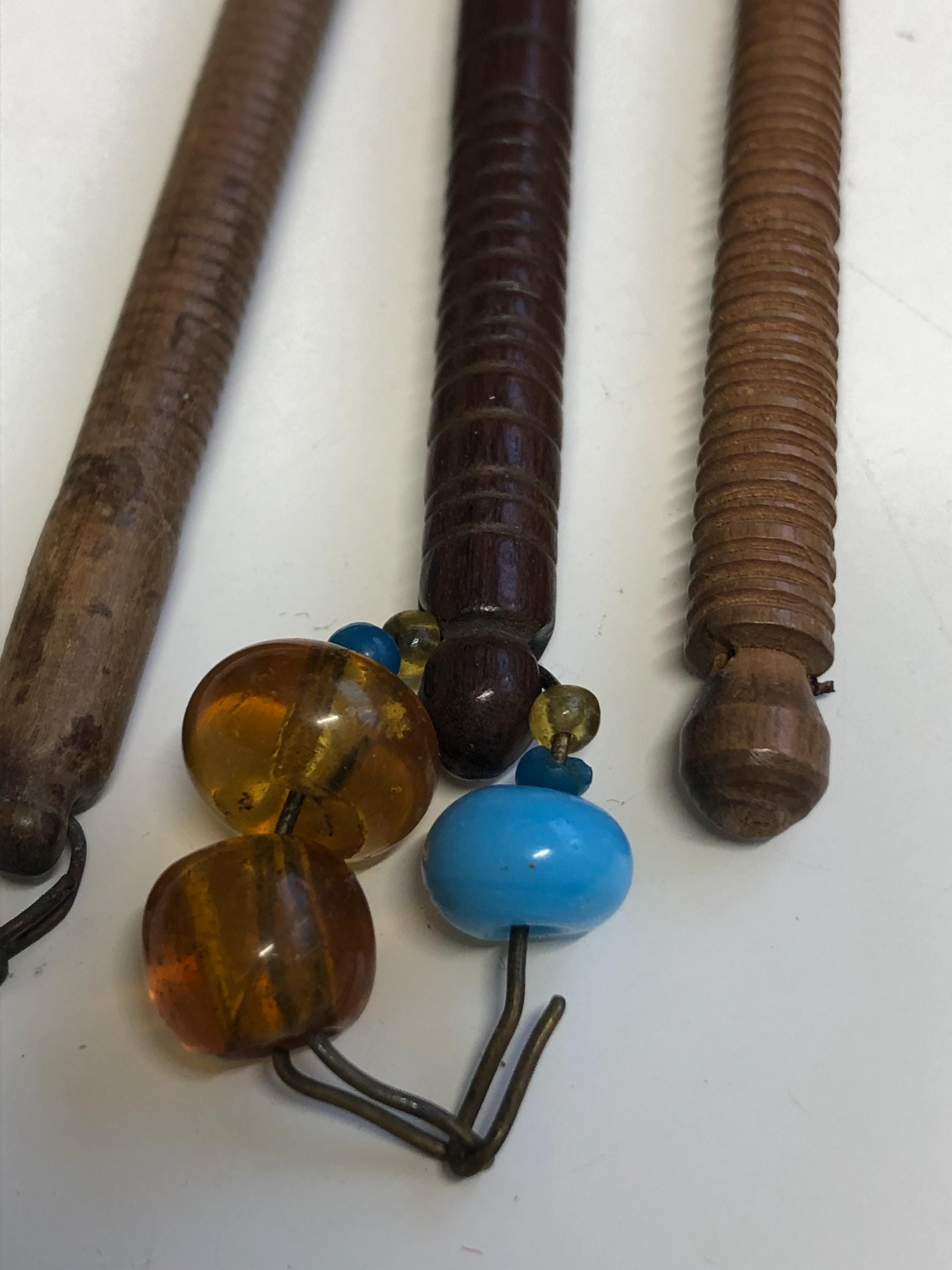 They are all about 10cm long, all have holes ready for spangles, and two still have their original spangles