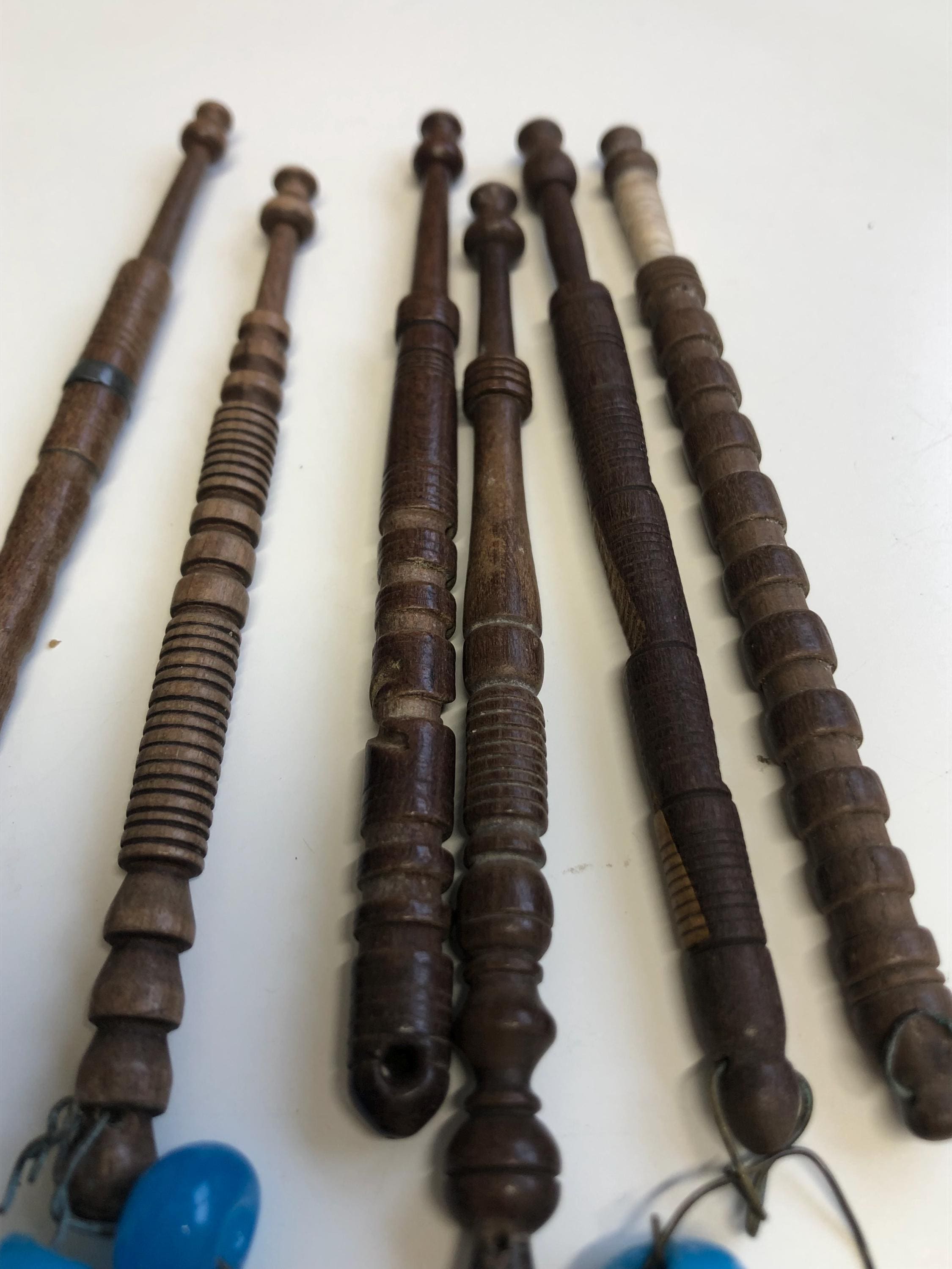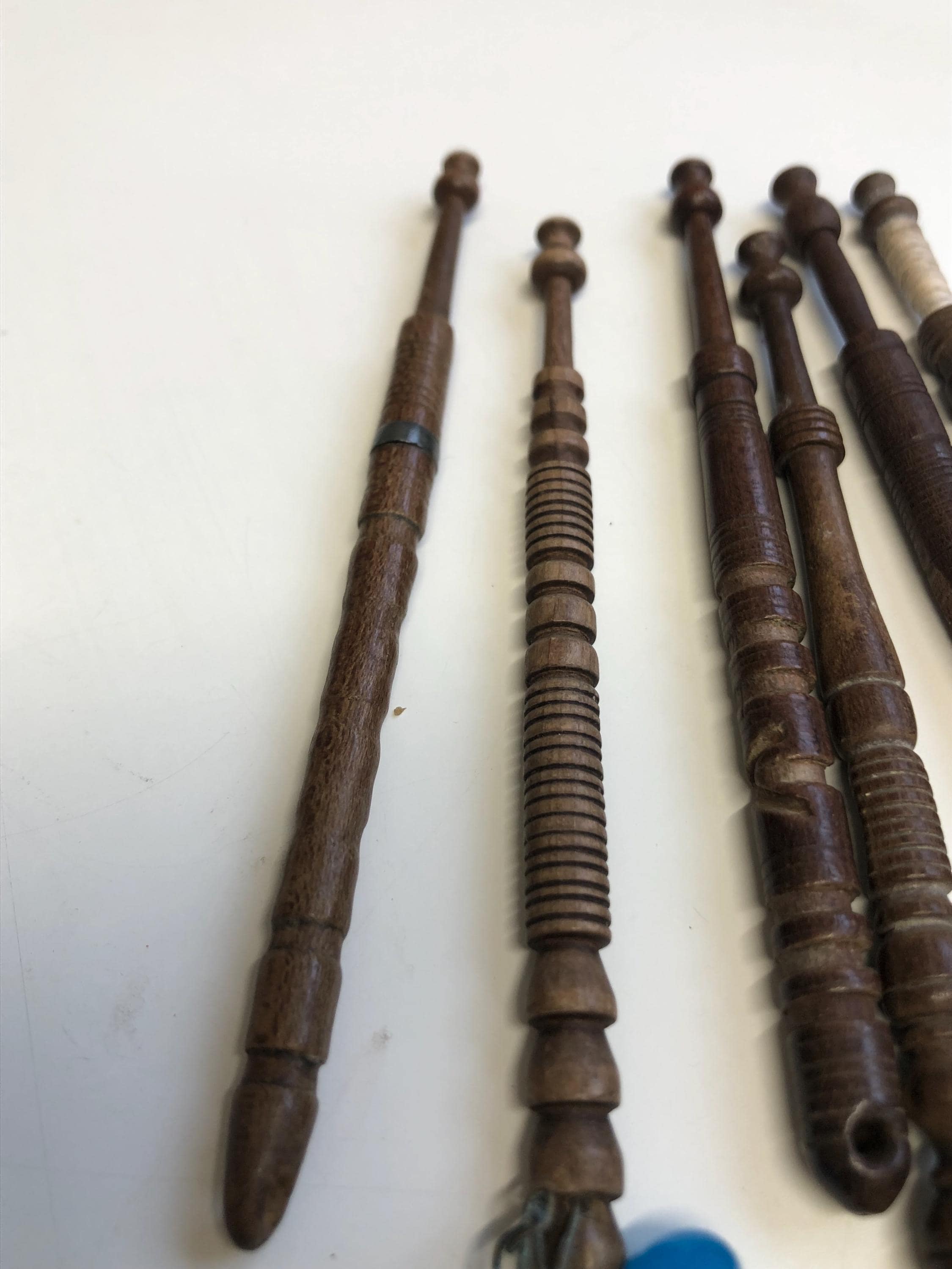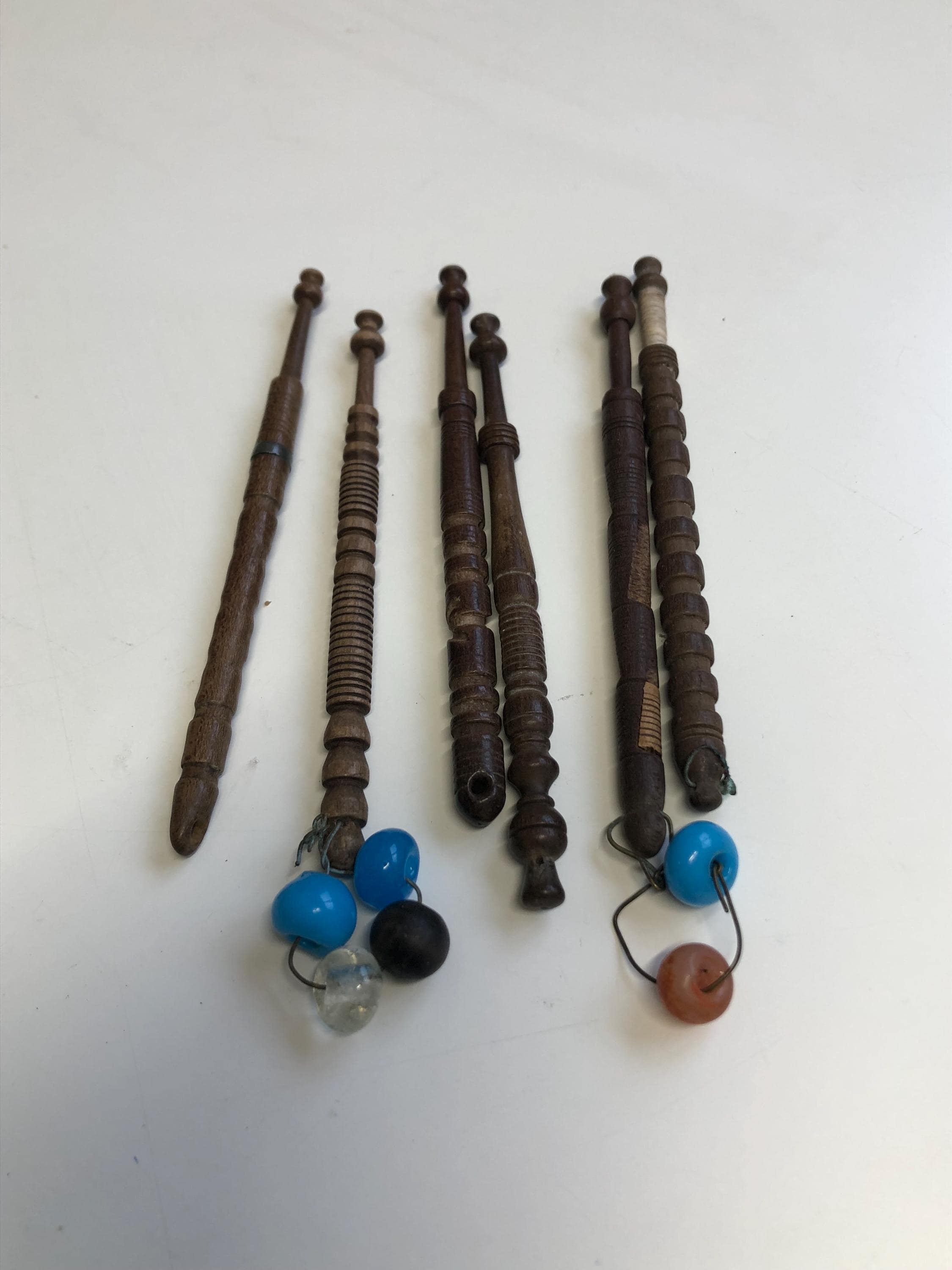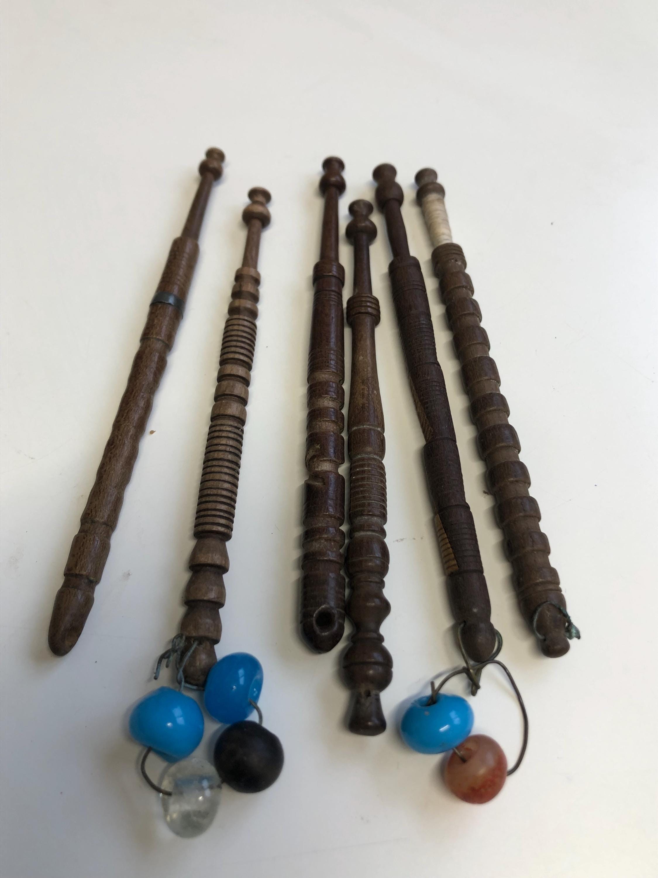 here we have 6 vintage bobbins of different designs
