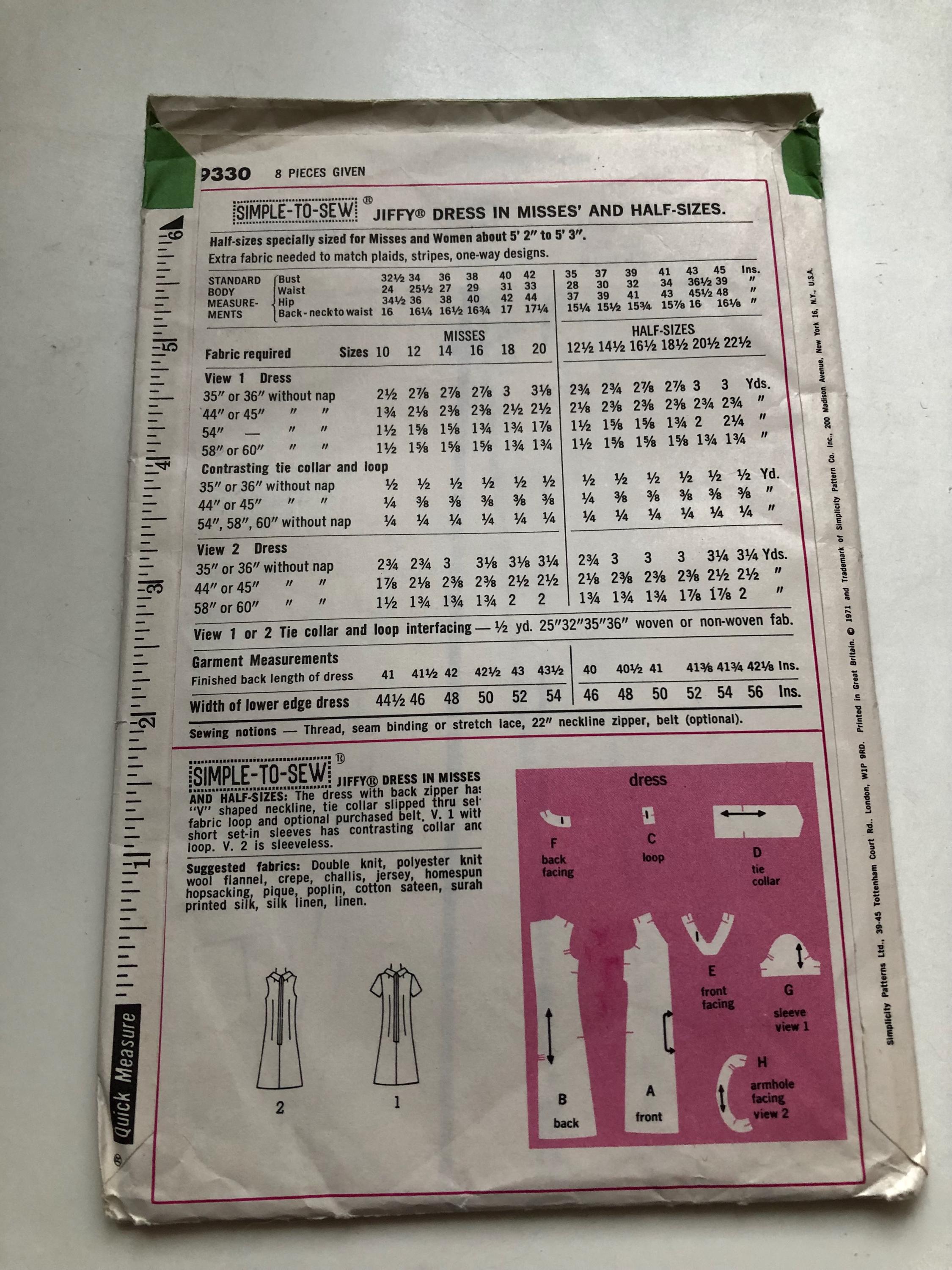 Simplicity Dress Pattern No. 9330 - Paper Pattern NOT a PDF download.