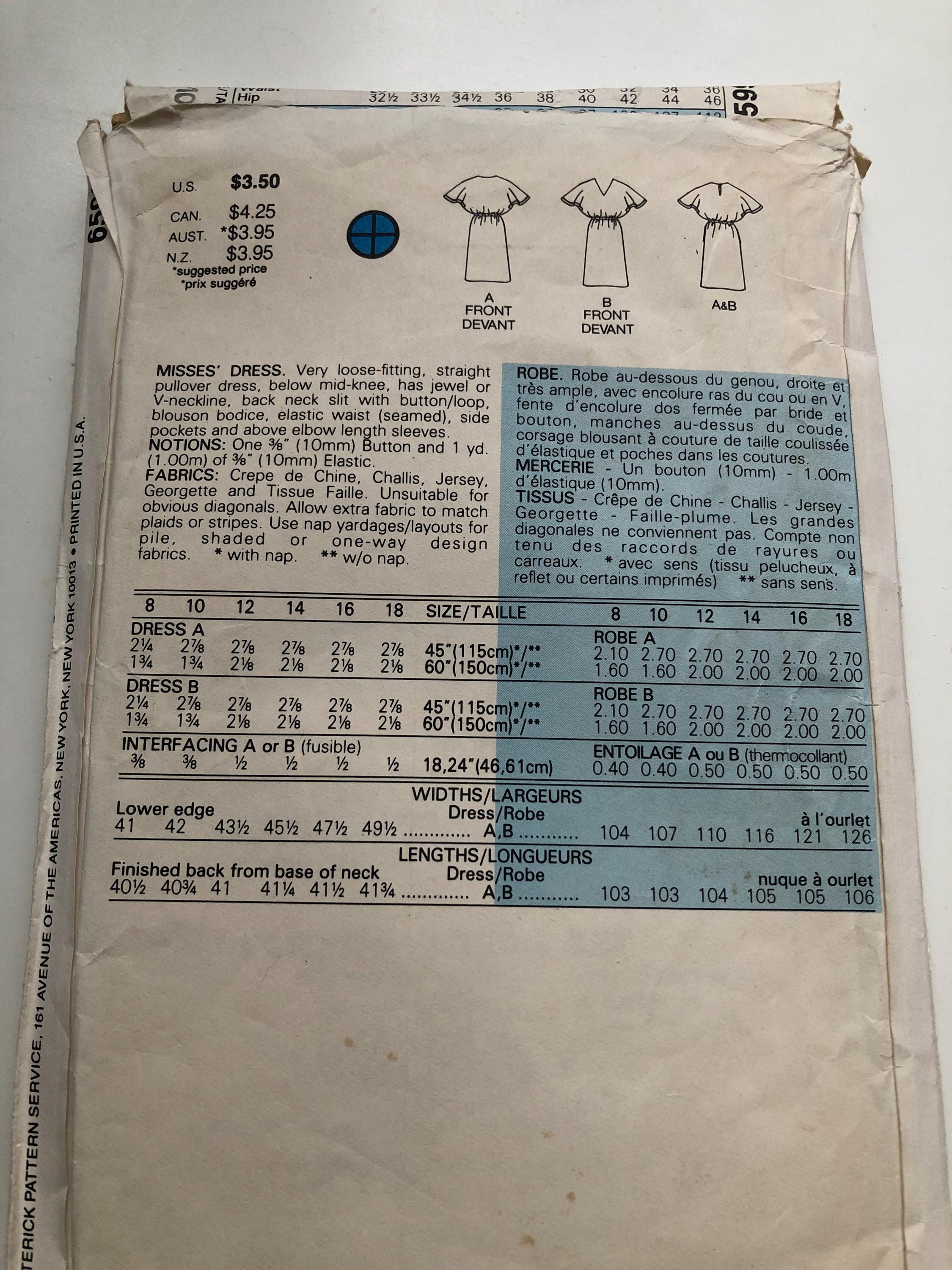Butterick pattern No. 6599 - Paper Pattern NOT a PDF download.