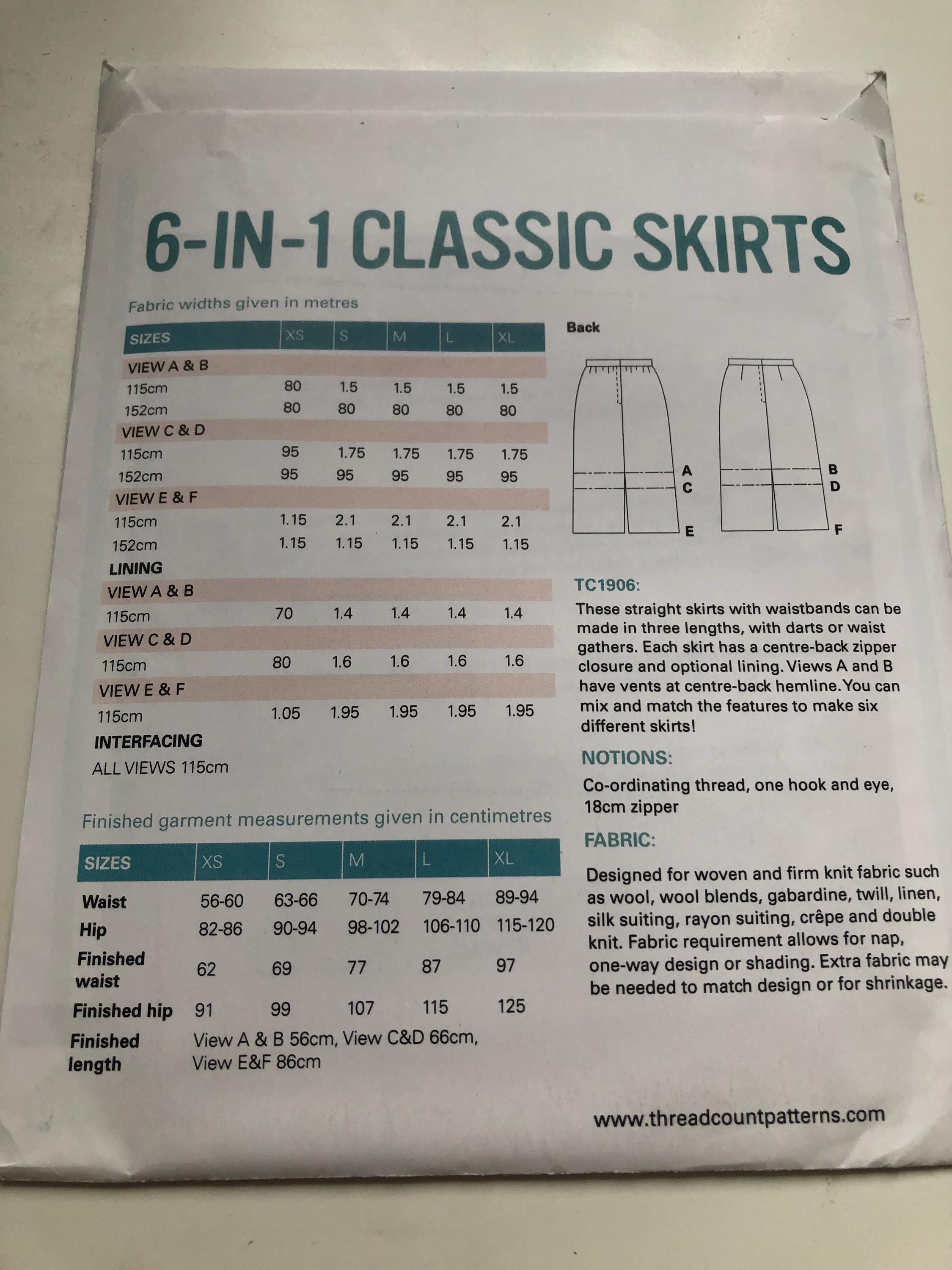 Ladies 6 in 1 classic skirt pattern