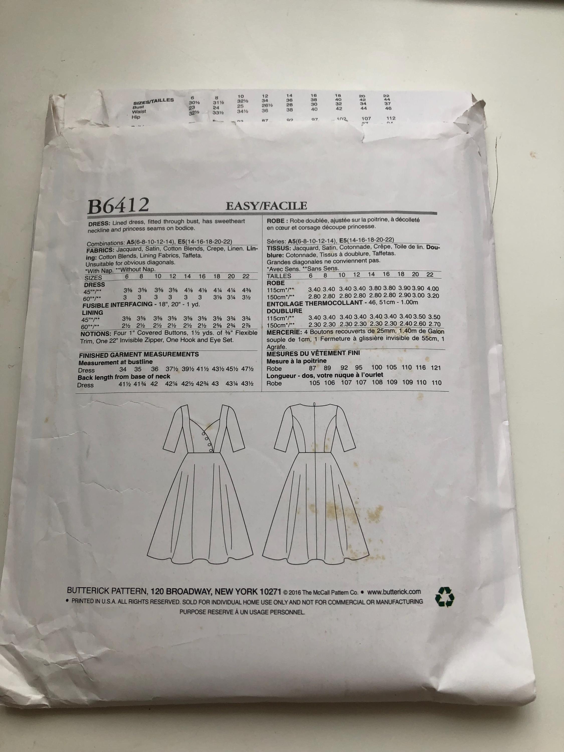 Butterick pattern No. B6412 - Paper Pattern NOT a PDF download.