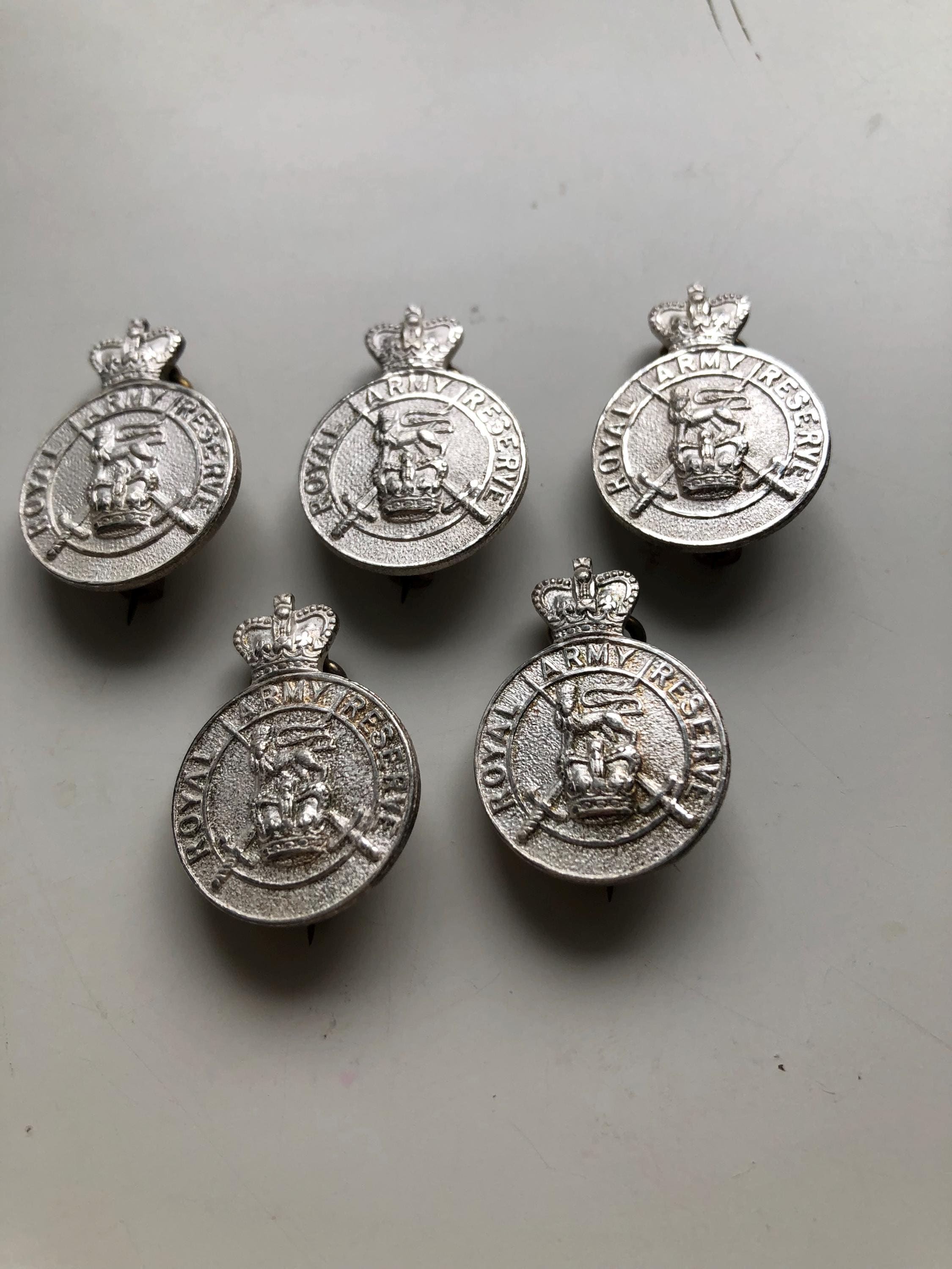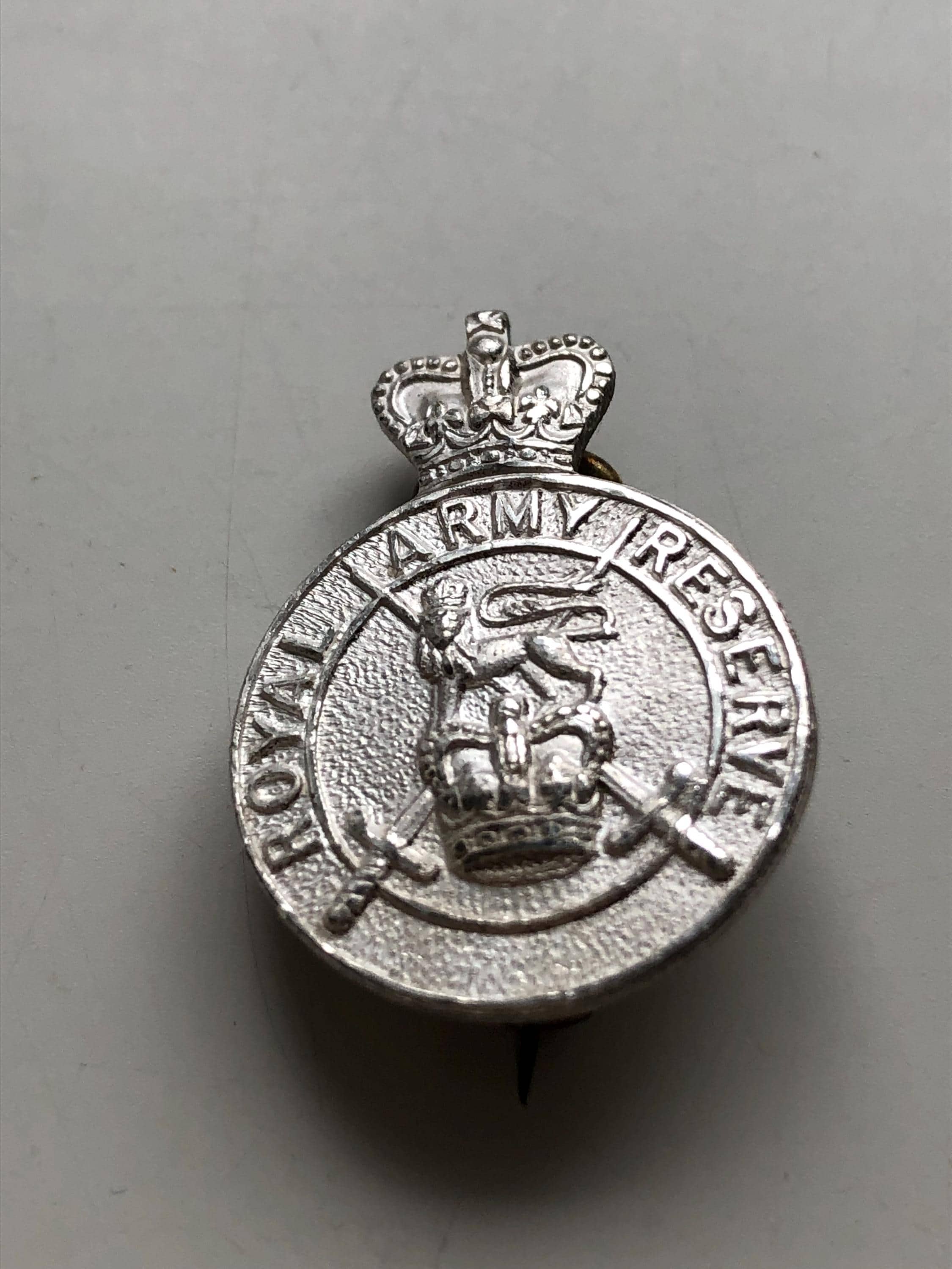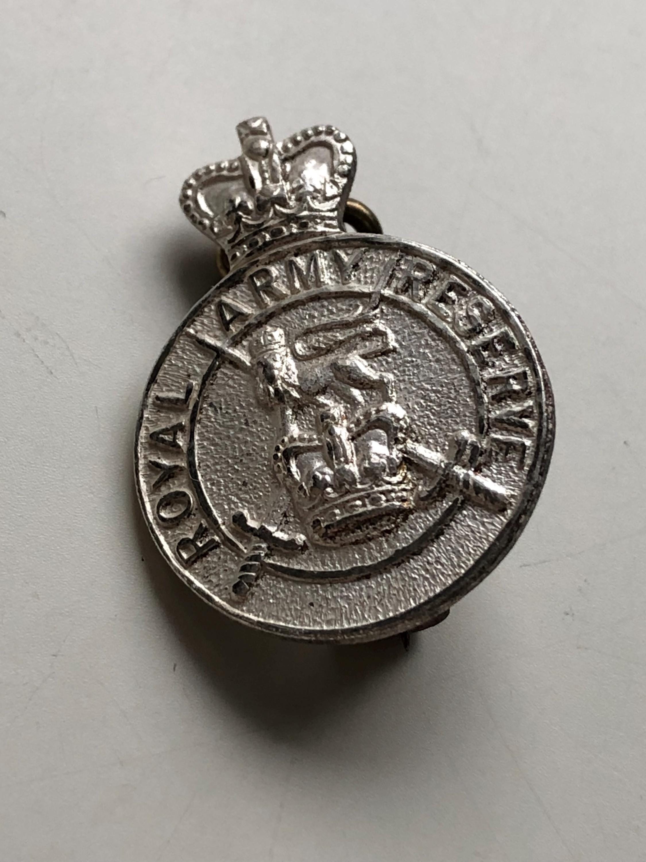 - Authentic vintage Silver Royal Army Reserve lapel badge