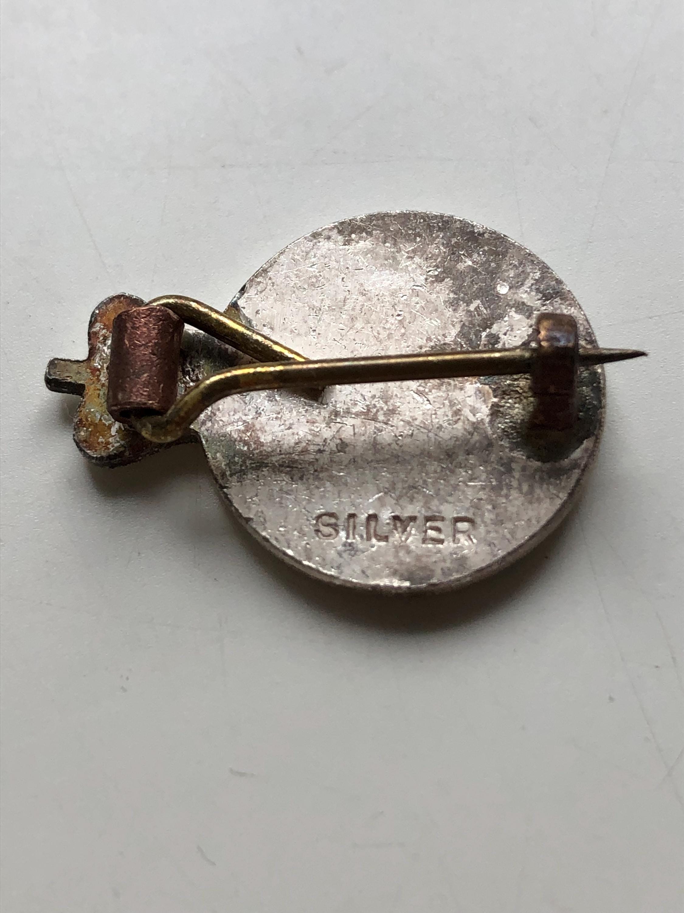 This badge has not been cleaned, allowing you to appreciate its authentic patina and character, or choose to restore it according to your preference. Its compact size makes it an ideal vintage lapel pin or collectible buttonhole badge.