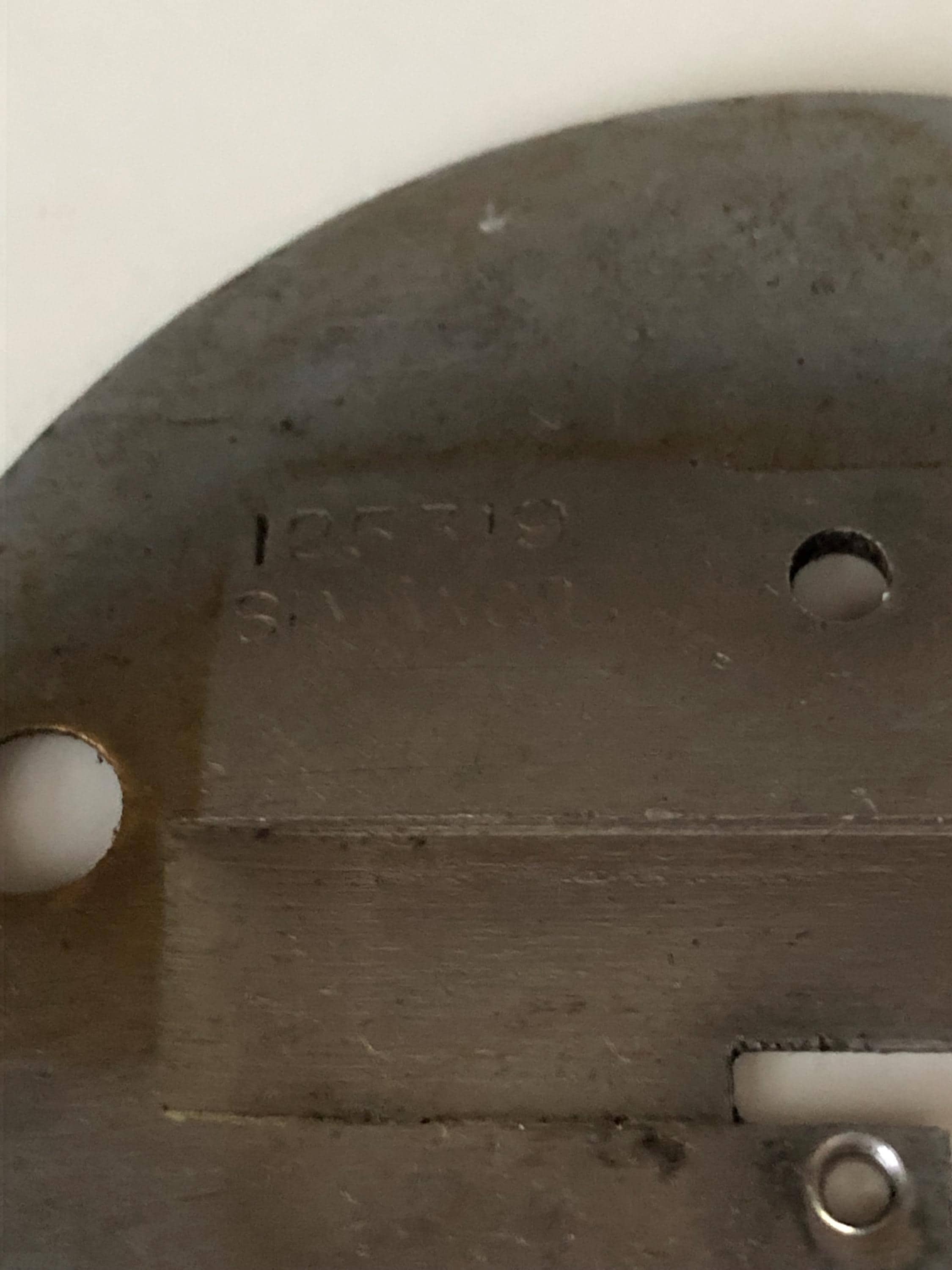 1937's Singer sewing machine dog feed cover cover plate for 201, plus two original screws.