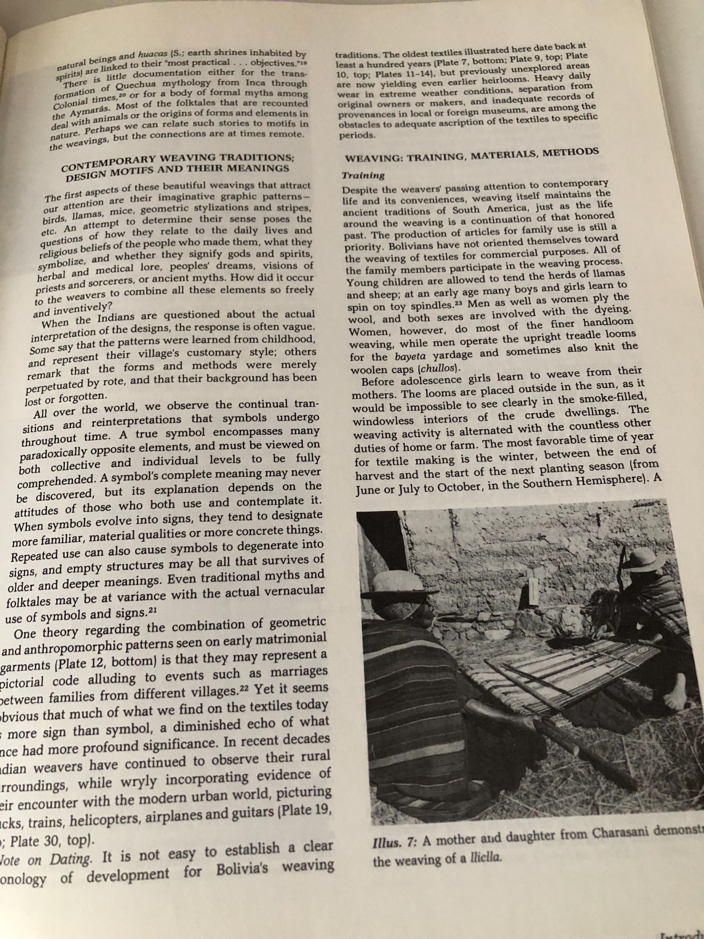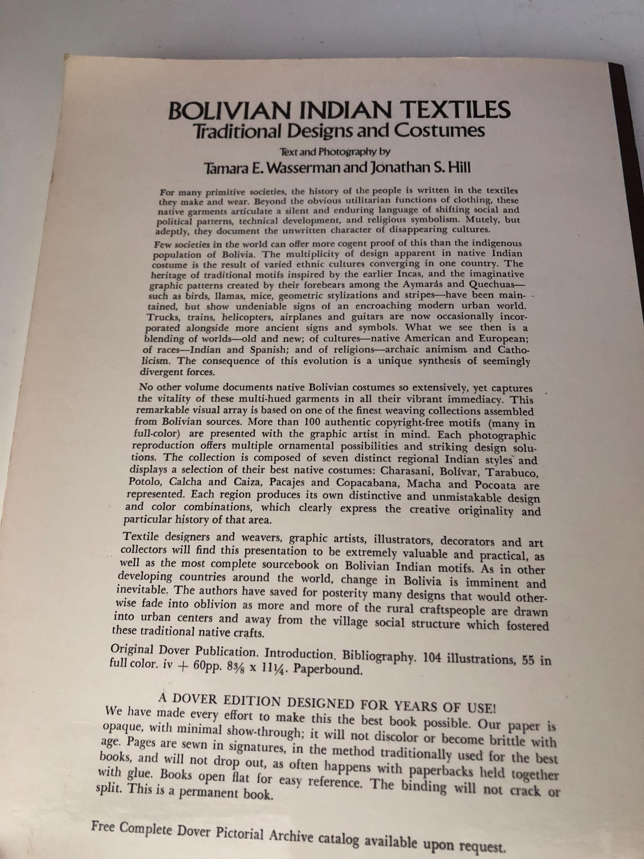 Bolivian Indian Textiles Traditional Designs and Costumes by Tamara E. Wasserman and Jonathan S. Hill.