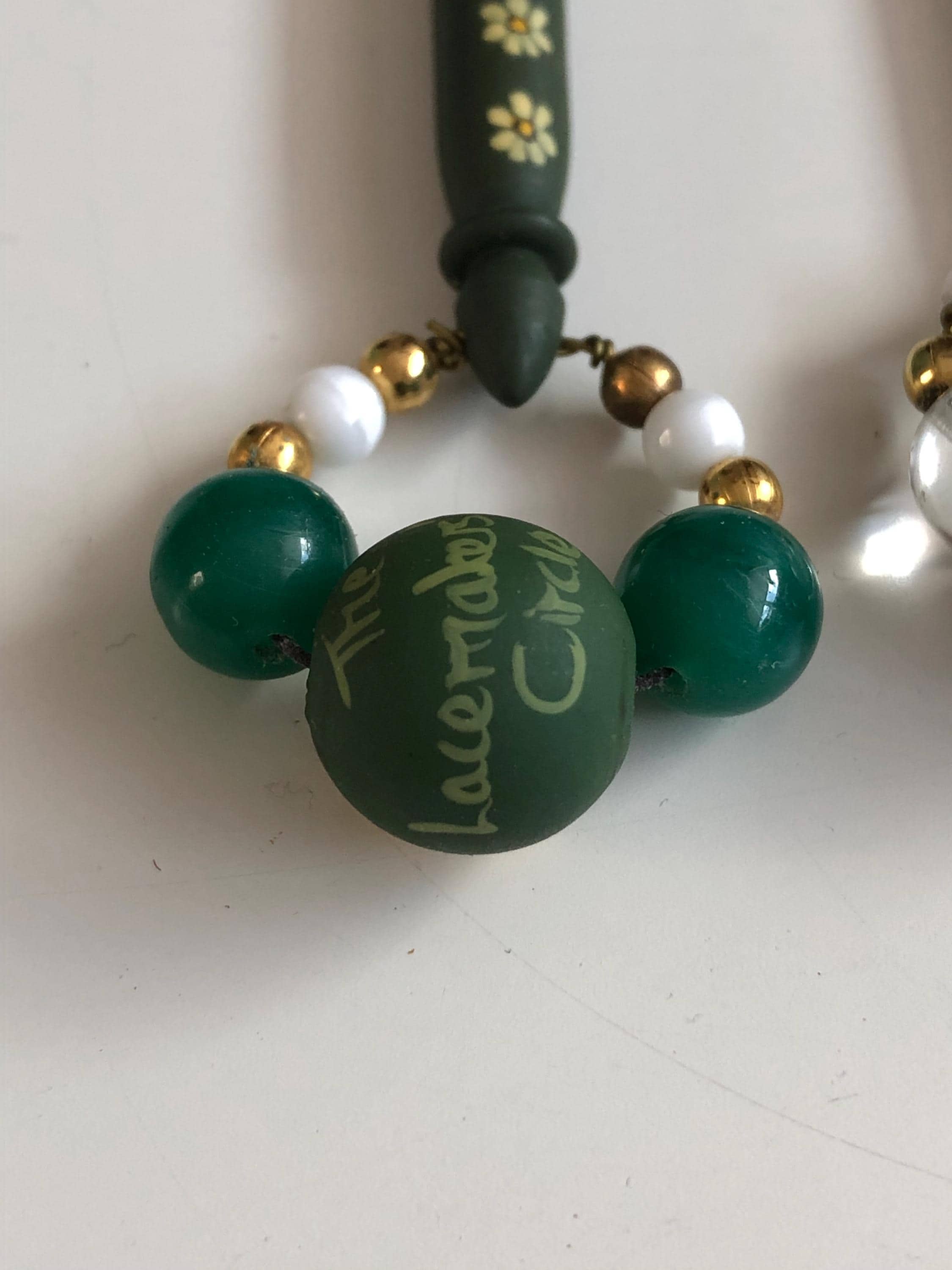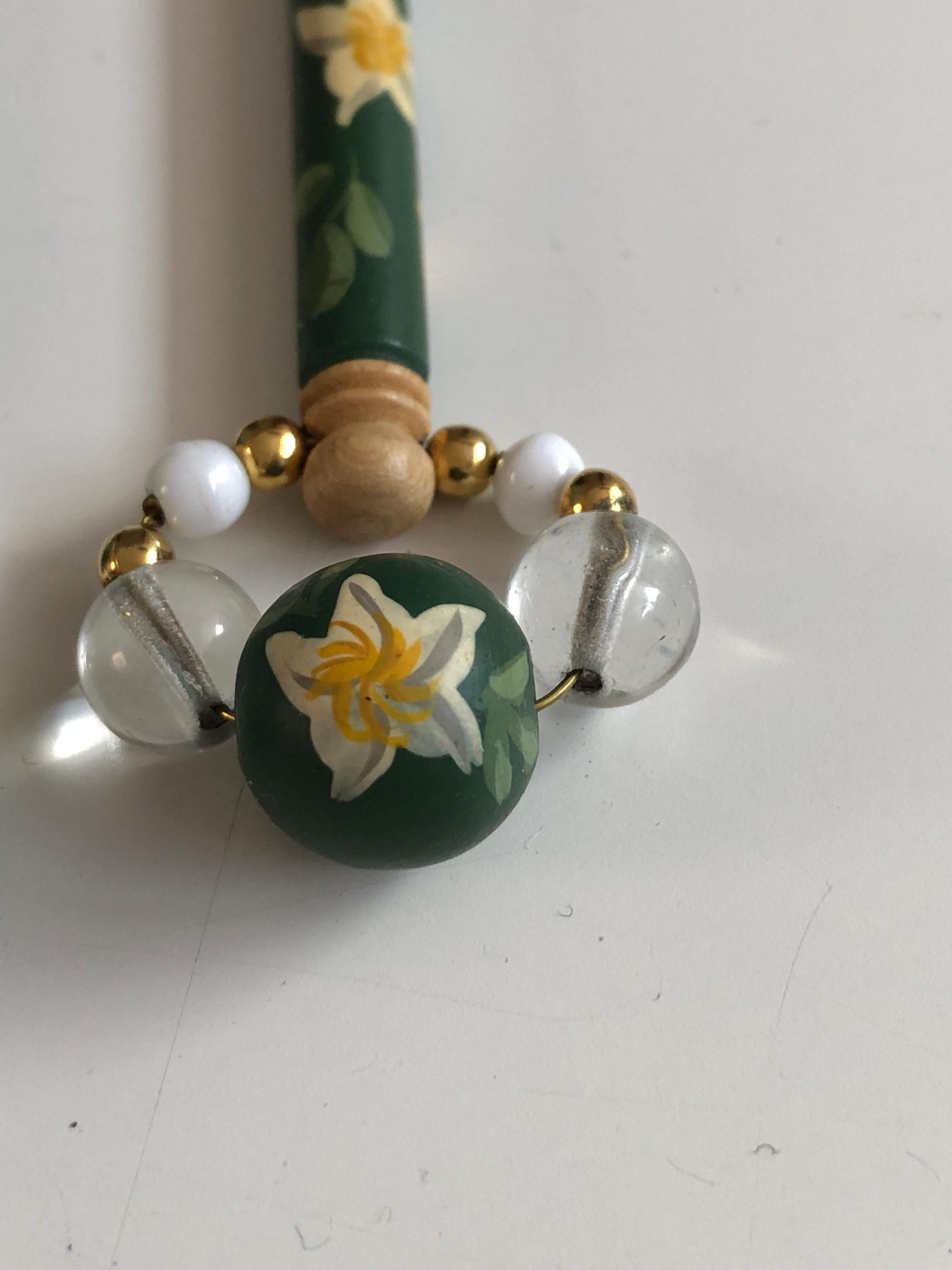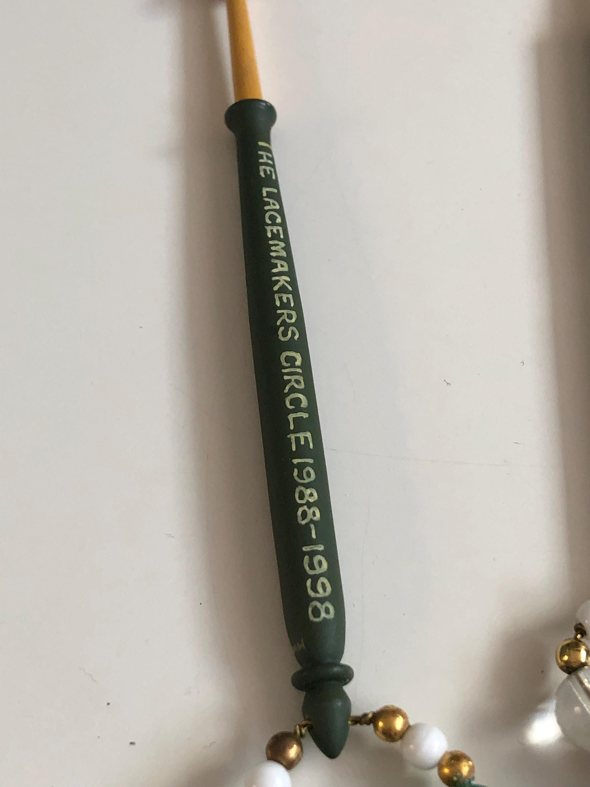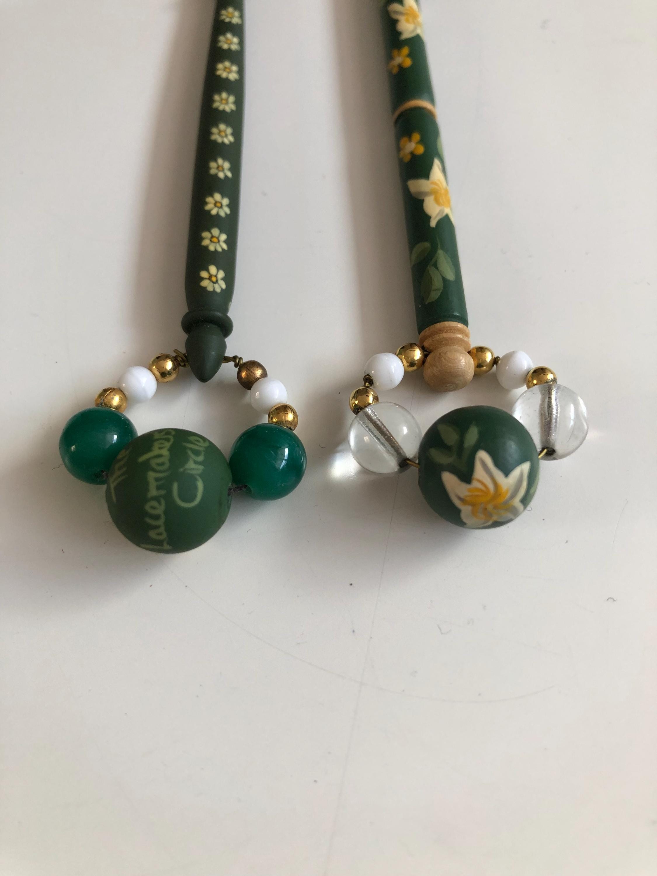 Pair of wooden lacemaking bobbins - hand painted.